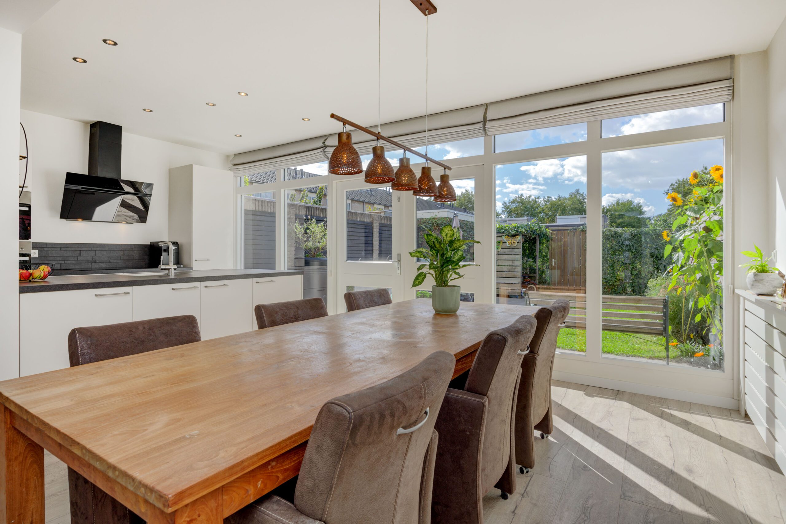 Een ruime tussenwoning aan de Bachlaan die meteen goed aanvoelt: licht, comfortabel en keurig onderhouden, van binnen én van buiten. Dankzij energielabel A+, 16 zonnepanelen en goede isolatie woon je hier niet alleen prettig, maar ook voordelig. De begane grond is uitgebouwd, waardoor je een royale living hebt met volop plek voor een grote eettafel. Achterin bevindt zich de nette keuken met schiereiland en inbouwapparatuur; via de tuindeuren loop je zo het terras op.