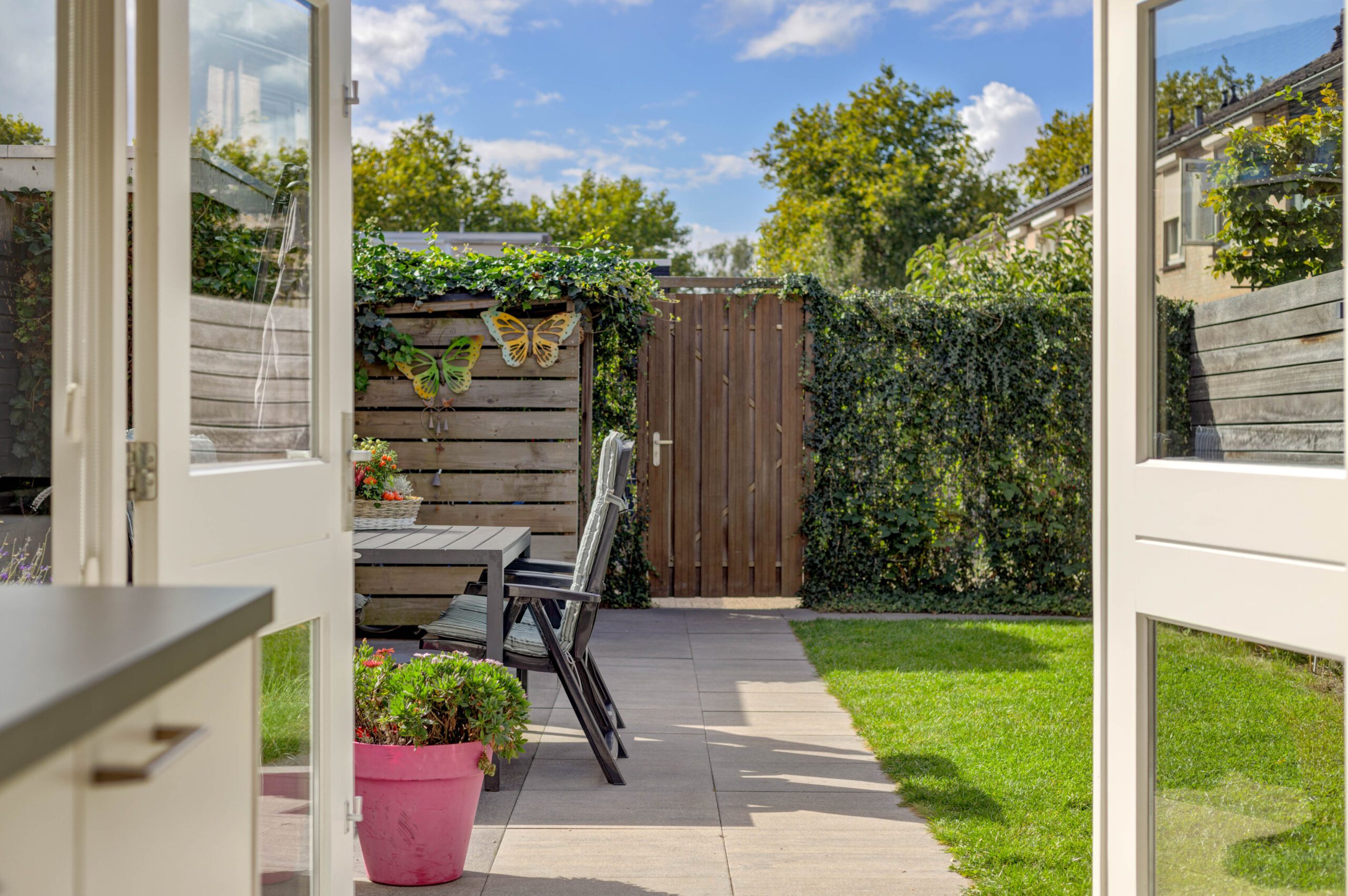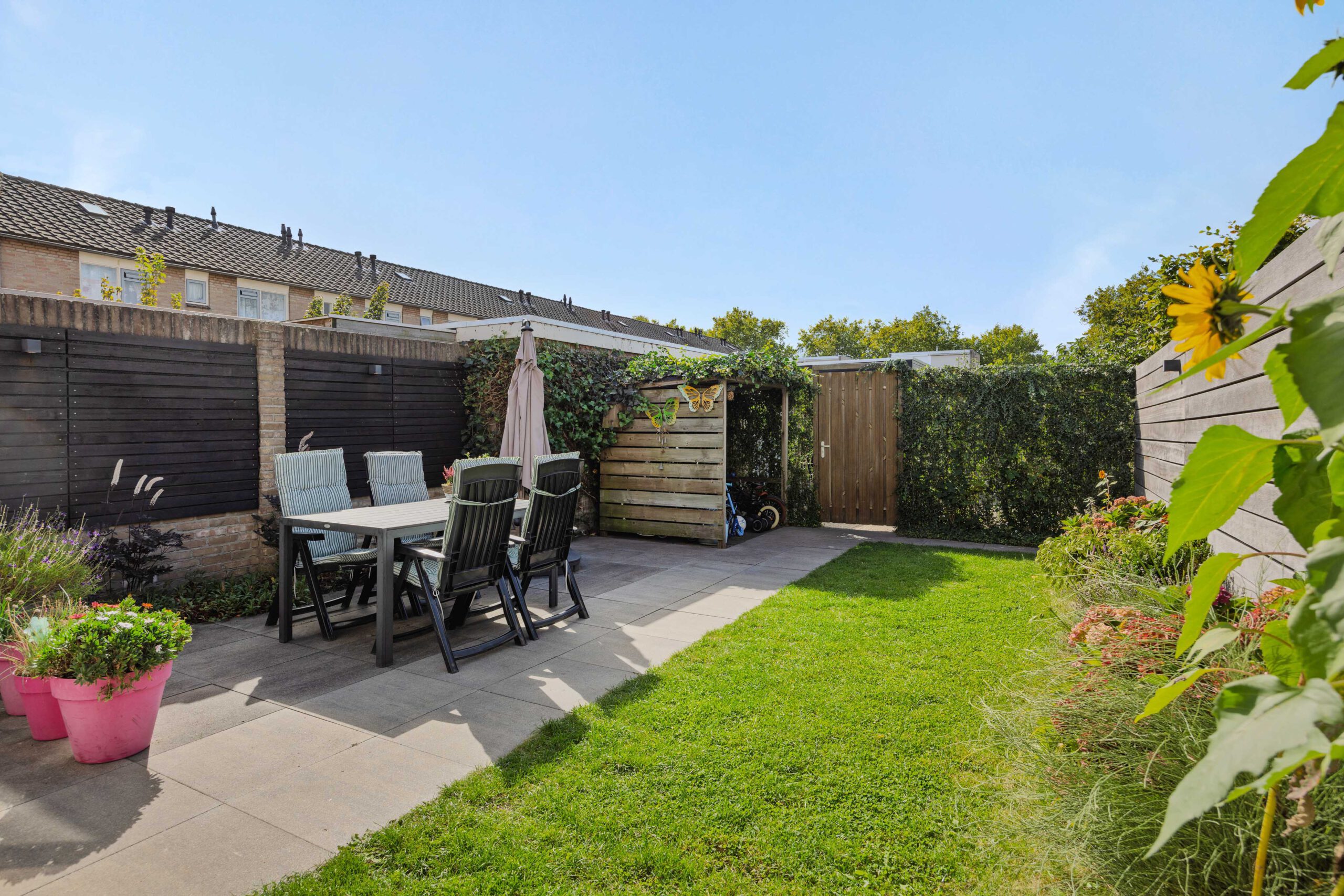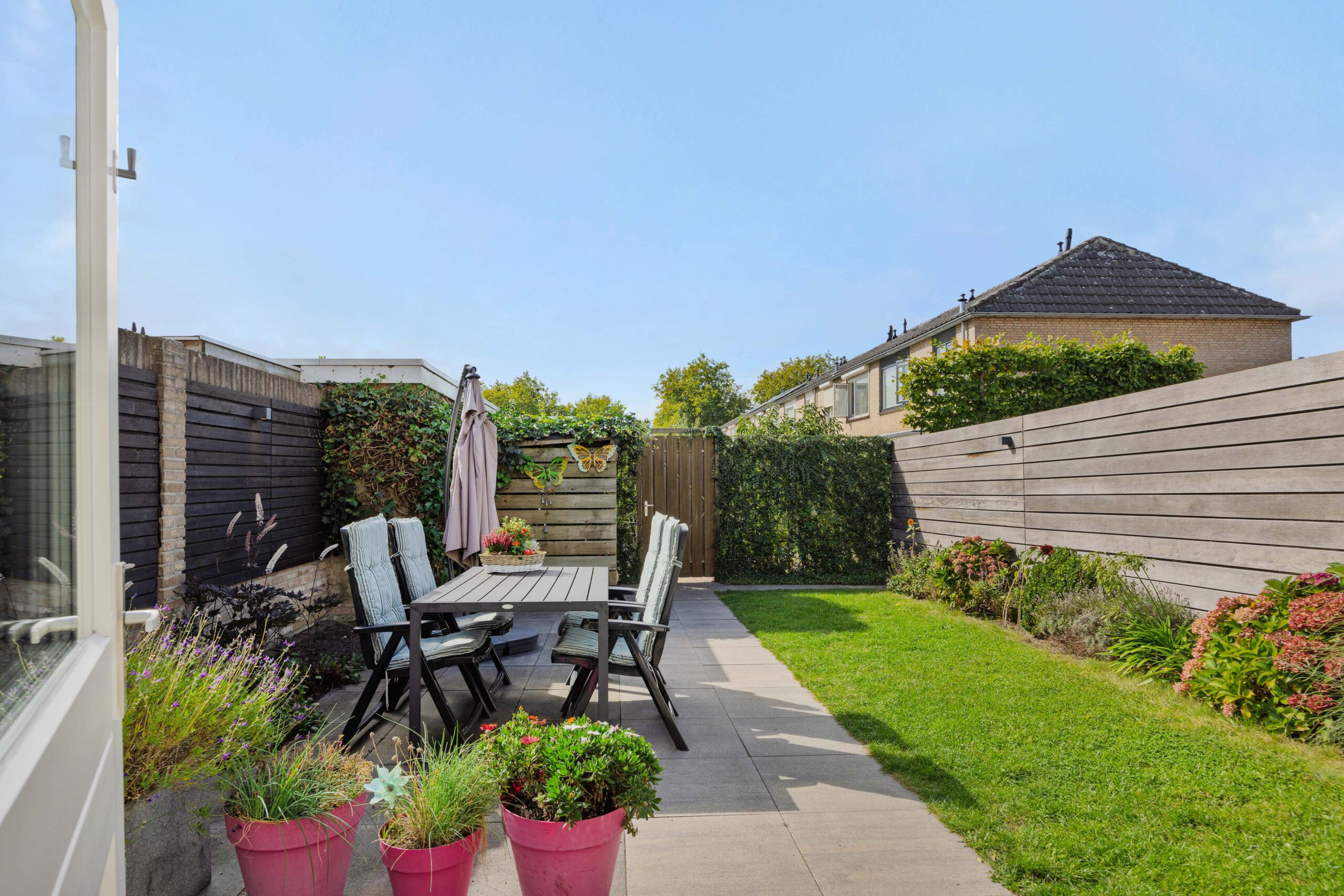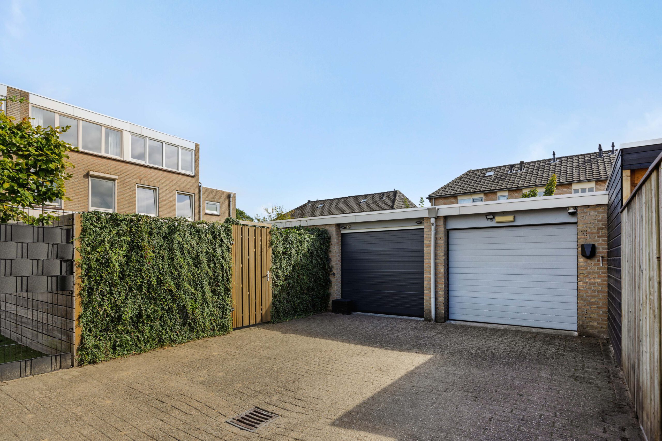 De achtertuin ligt op het zuidwesten: lekker zonnig, strak aangelegd en voorzien van een achterom en zonneluifel. Achter de woning is de garage te vinden, handig voor de auto, opslag of je hobby.