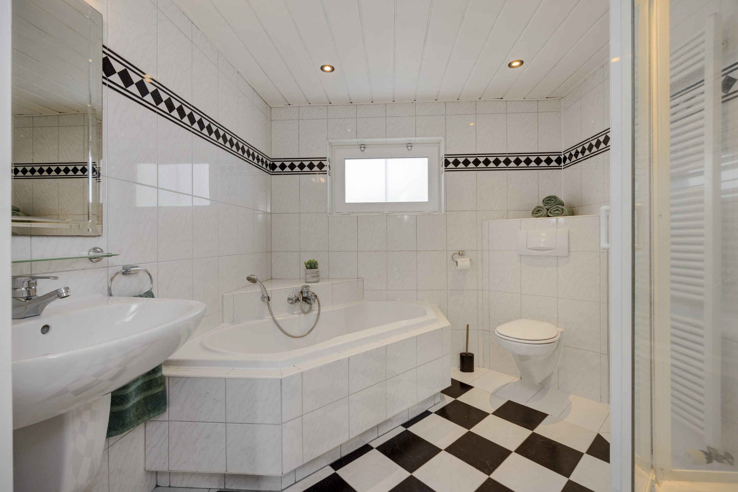 – Nette badkamer met bad, douche, wastafel en toilet.