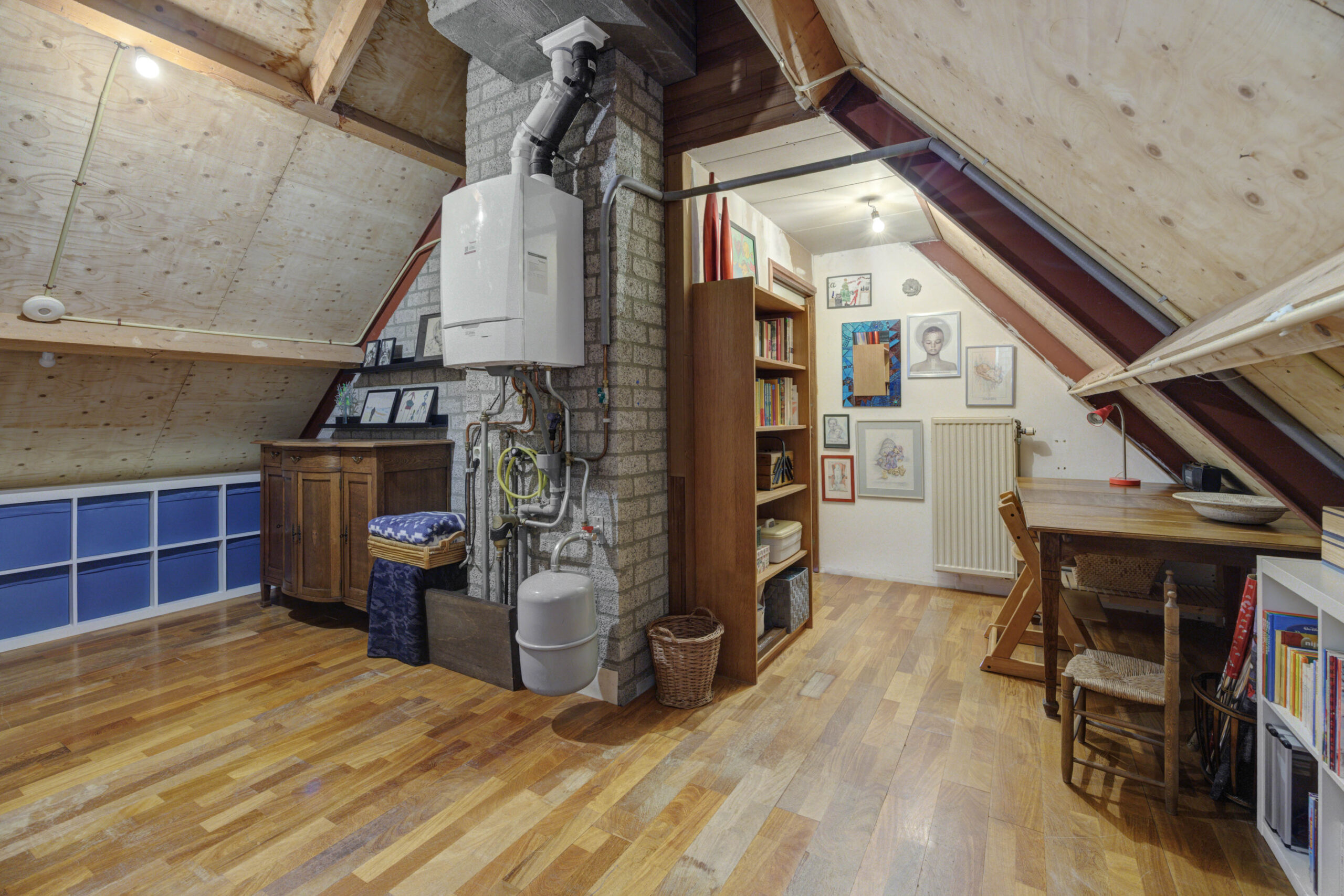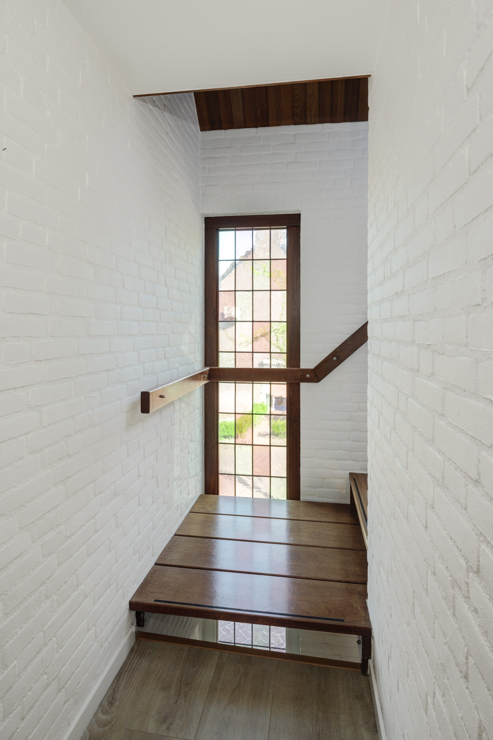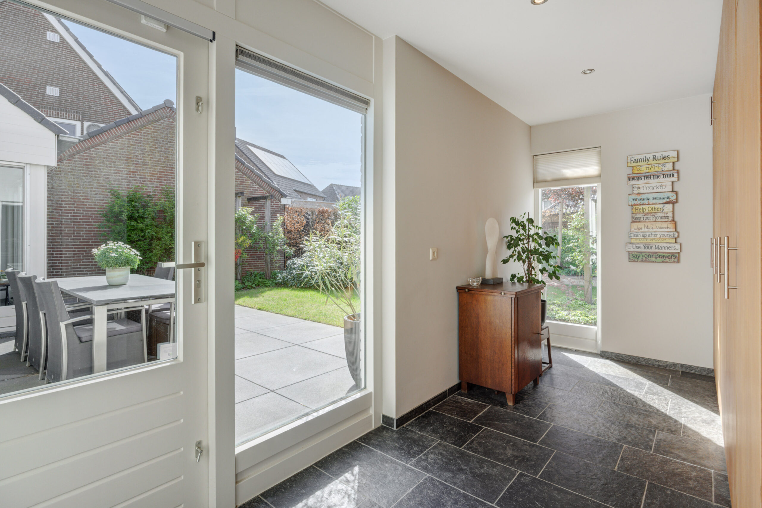De begane grond is afgewerkt met een Noorse leisteenvloer met vloerverwarming (m.u.v. de bijkeuken en garage), wat zorgt voor comfort en een rustige, luxe uitstraling. Verder vind je hier een bijkeuken met toegang tot de inpandige garage en een extra kamer die perfect te gebruiken is als kantoor of speelruimte. Ook de hal verdient een vermelding, met het fraaie glas-in-lood dat direct bij binnenkomst voor een karaktervolle uitstraling zorgt. De woning is bovendien goed onderhouden en netjes afgewerkt, waardoor je hier zo in kunt.