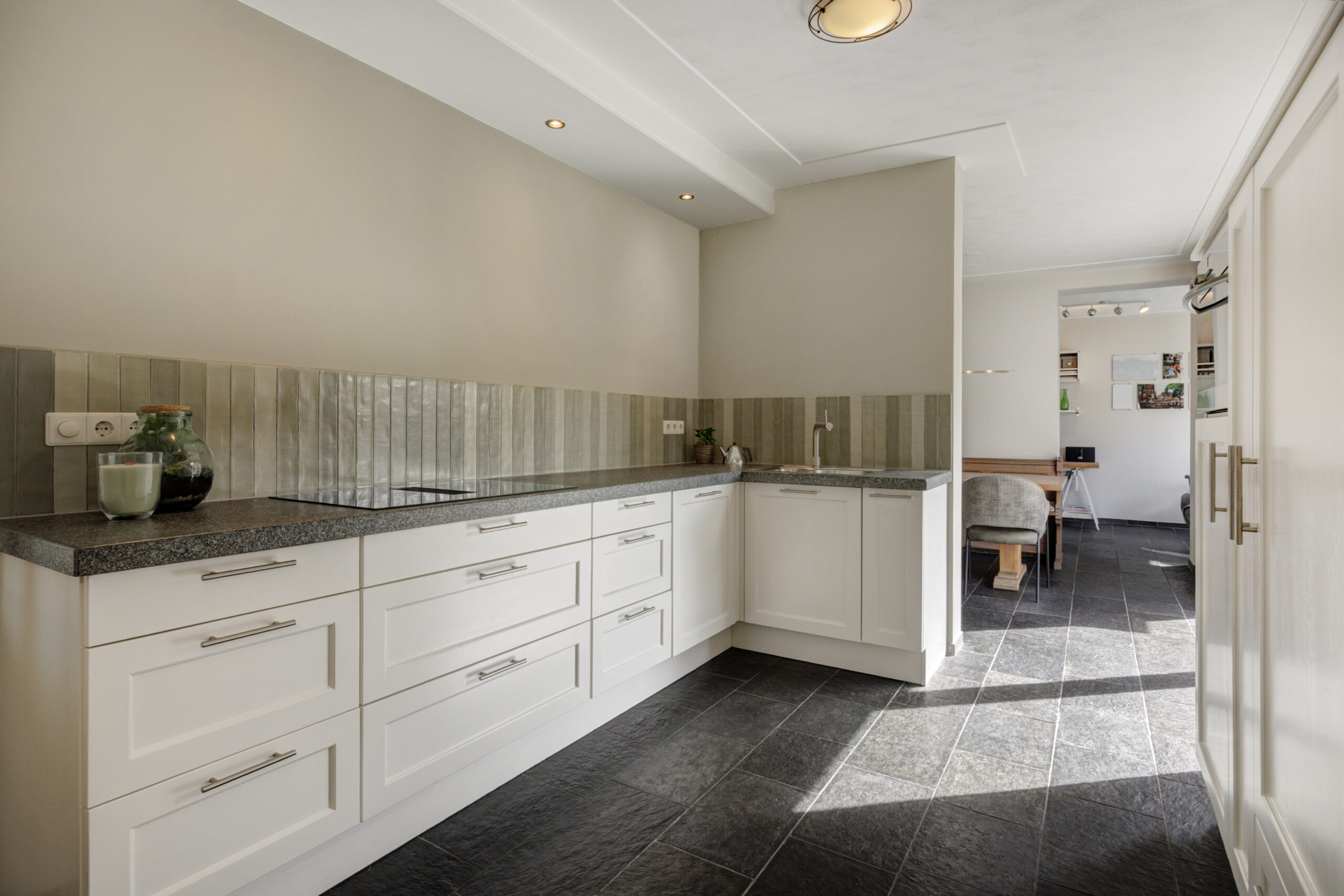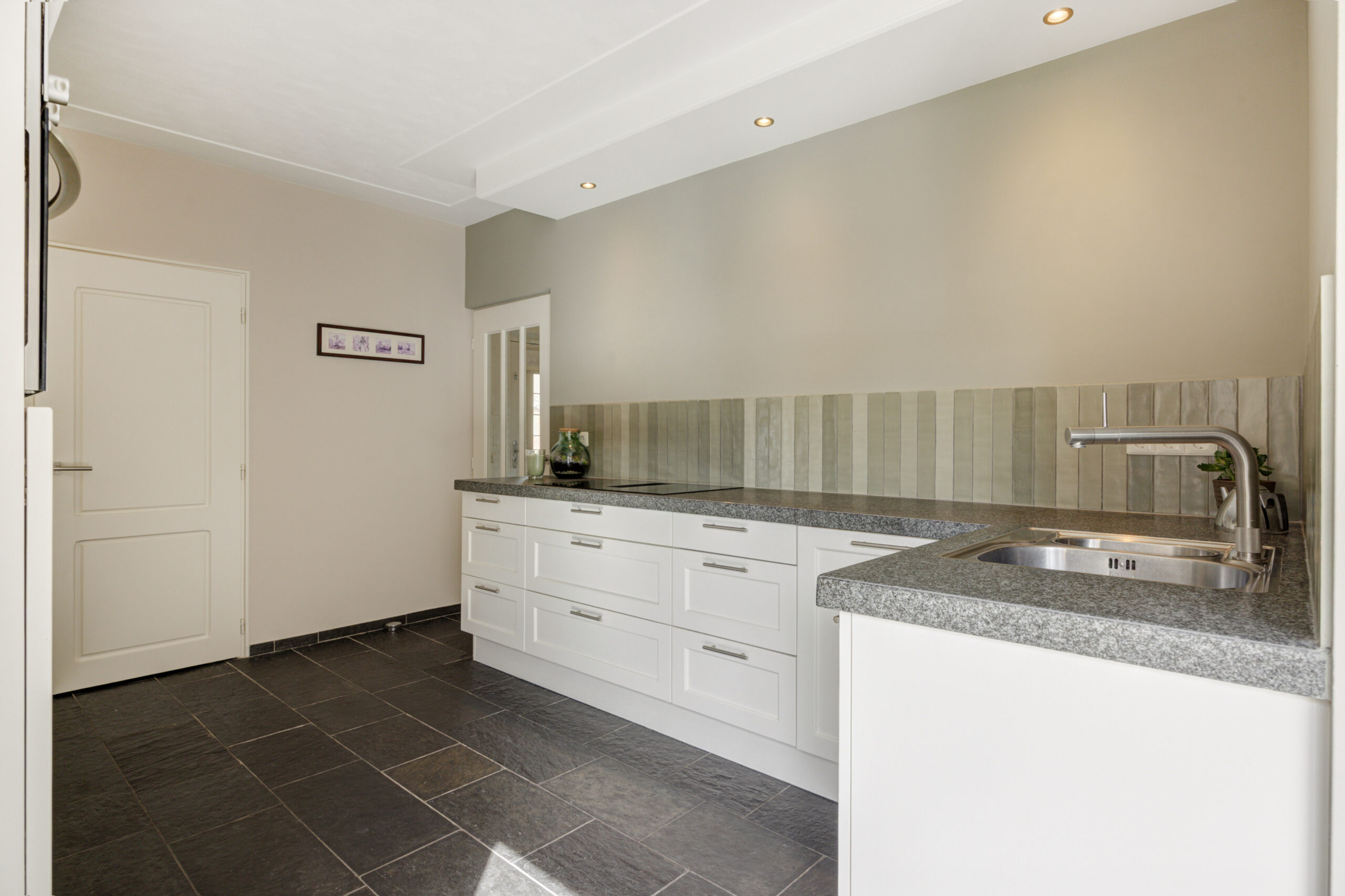 De woning is royaal opgezet en voelt bij binnenkomst direct uitnodigend aan. De woonkamer is licht, sfeervol en kijkt vrij uit over de groene omgeving. De gashaard zorgt voor extra gezelligheid en maakt dit een plek waar je graag samenkomt met familie en vrienden. De open keuken sluit mooi aan op de woonkamer, waardoor er één geheel ontstaat dat zowel praktisch als stijlvol is. Via twee schuifpuien loop je zo de tuin in, die op hun beurt weer zorgen voor een prettige verbinding tussen binnen en buiten.