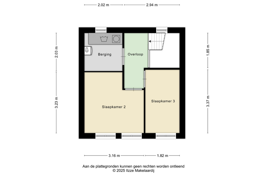 – Twee slaapkamers waarvan één met vliering voor extra bergruimte.