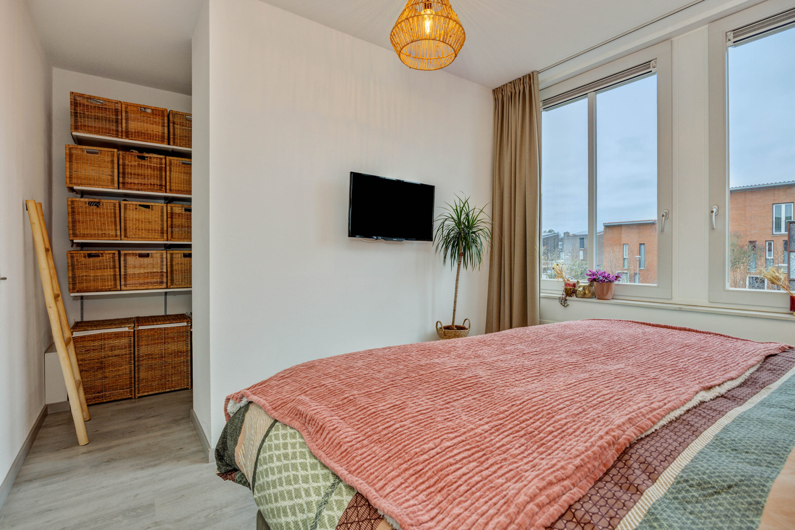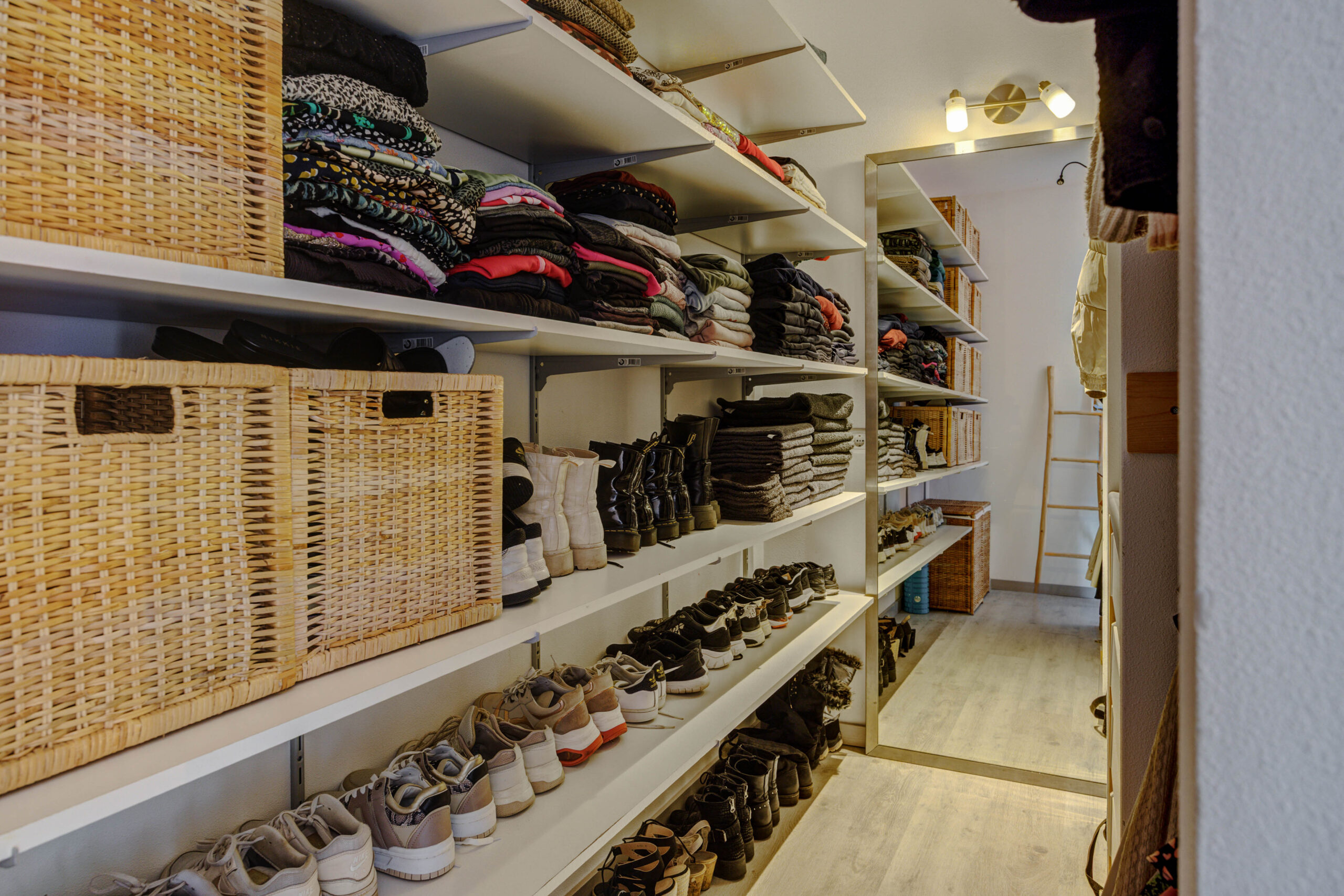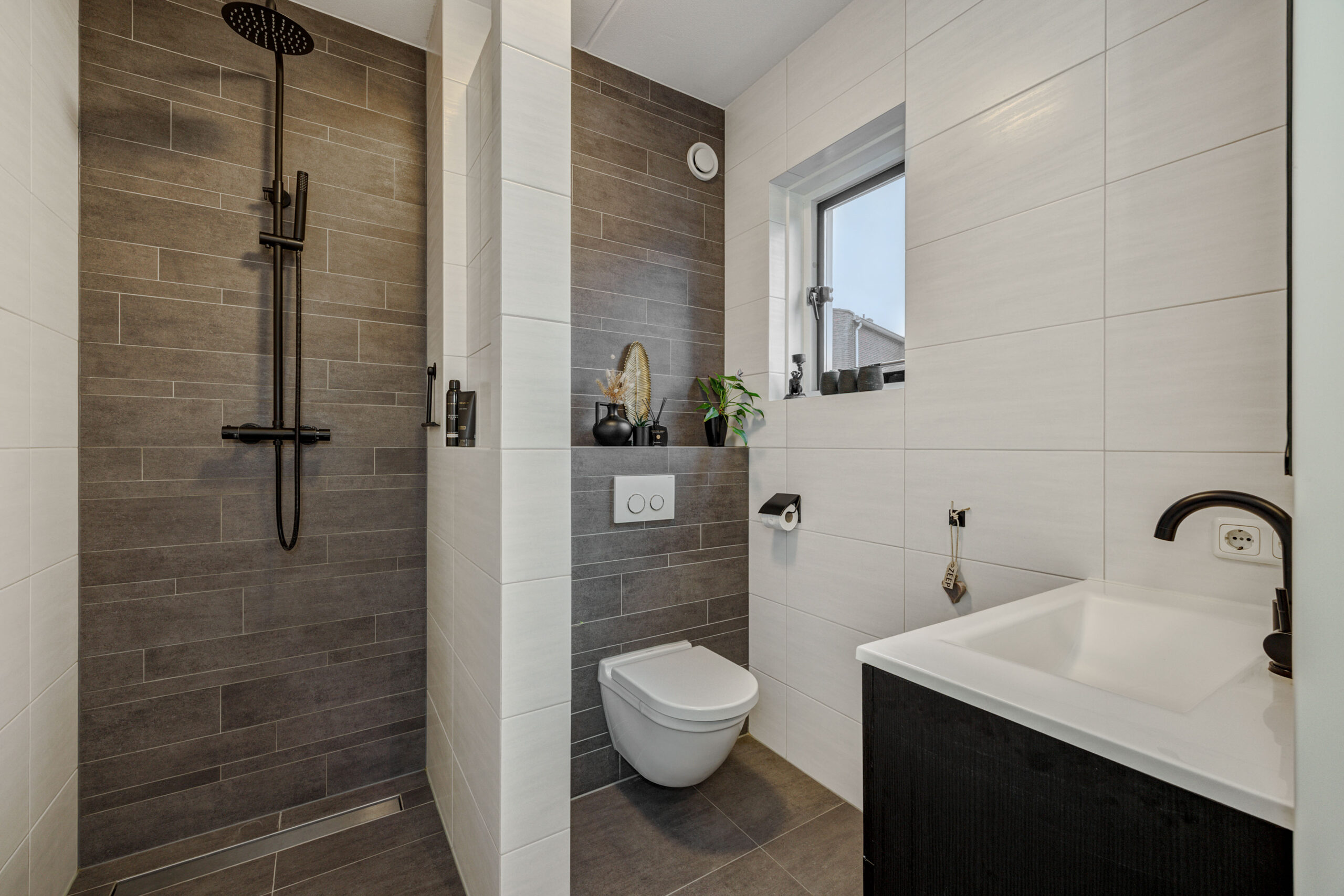 Op de eerste verdieping vind je een grote slaapkamer met inloopkast en een luxe badkamer. De badkamer is modern en stijlvol uitgevoerd in wit- en antraciettinten en beschikt over een tweede toilet, een wastafelmeubel en een ruime inloopdouche. Ook in de badkamer is vloerverwarming aanwezig en dankzij het raam en de mechanische ventilatie is er altijd van voldoende frisse lucht. De tweede verdieping bereik je via een vaste trap. Hier bevinden zich nog twee slaapkamers en een aparte wasruimte. In de wasruimte vind je de aansluitingen voor wasmachine en droger, de cv-ketel en extra bergruimte.