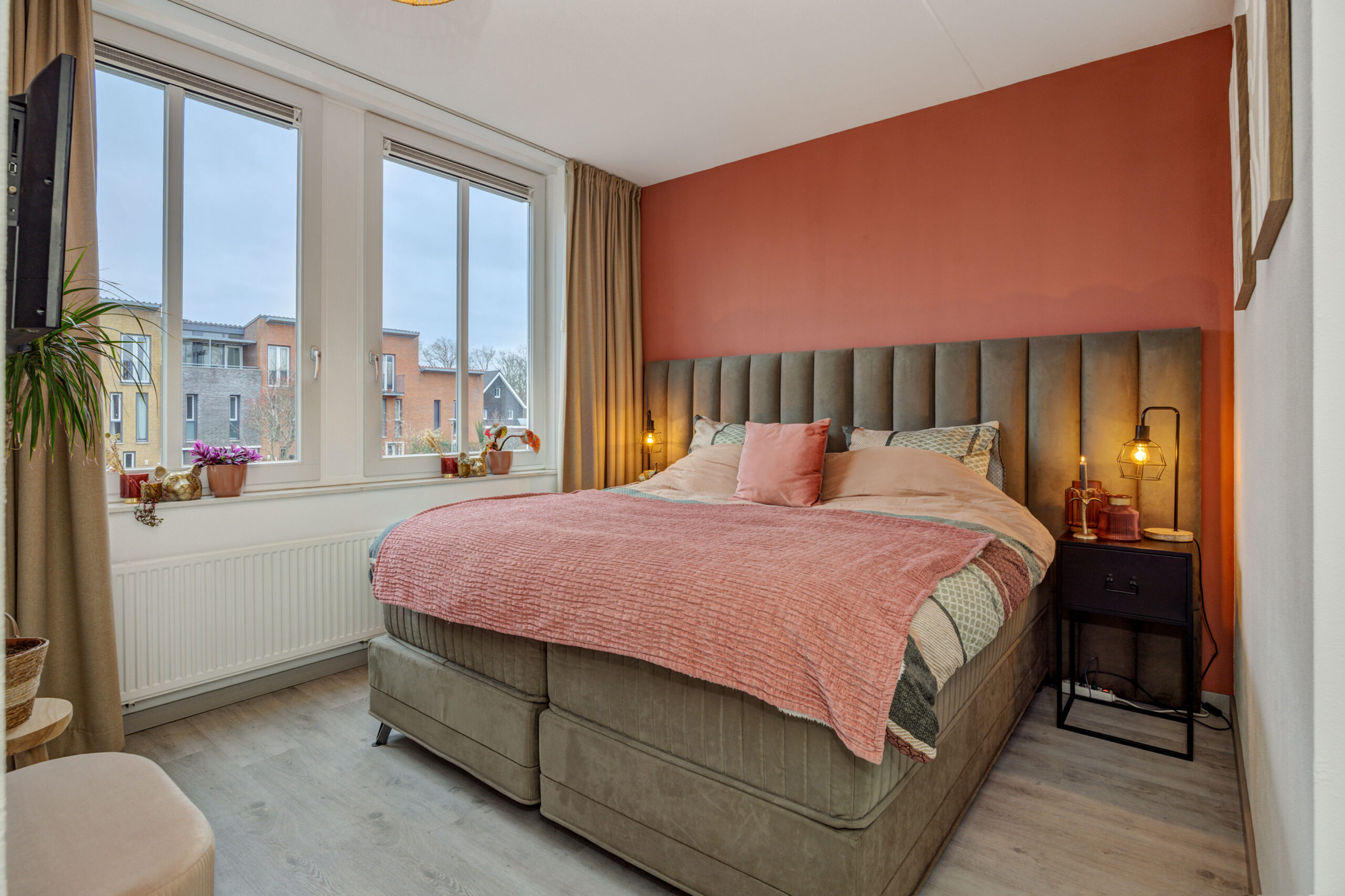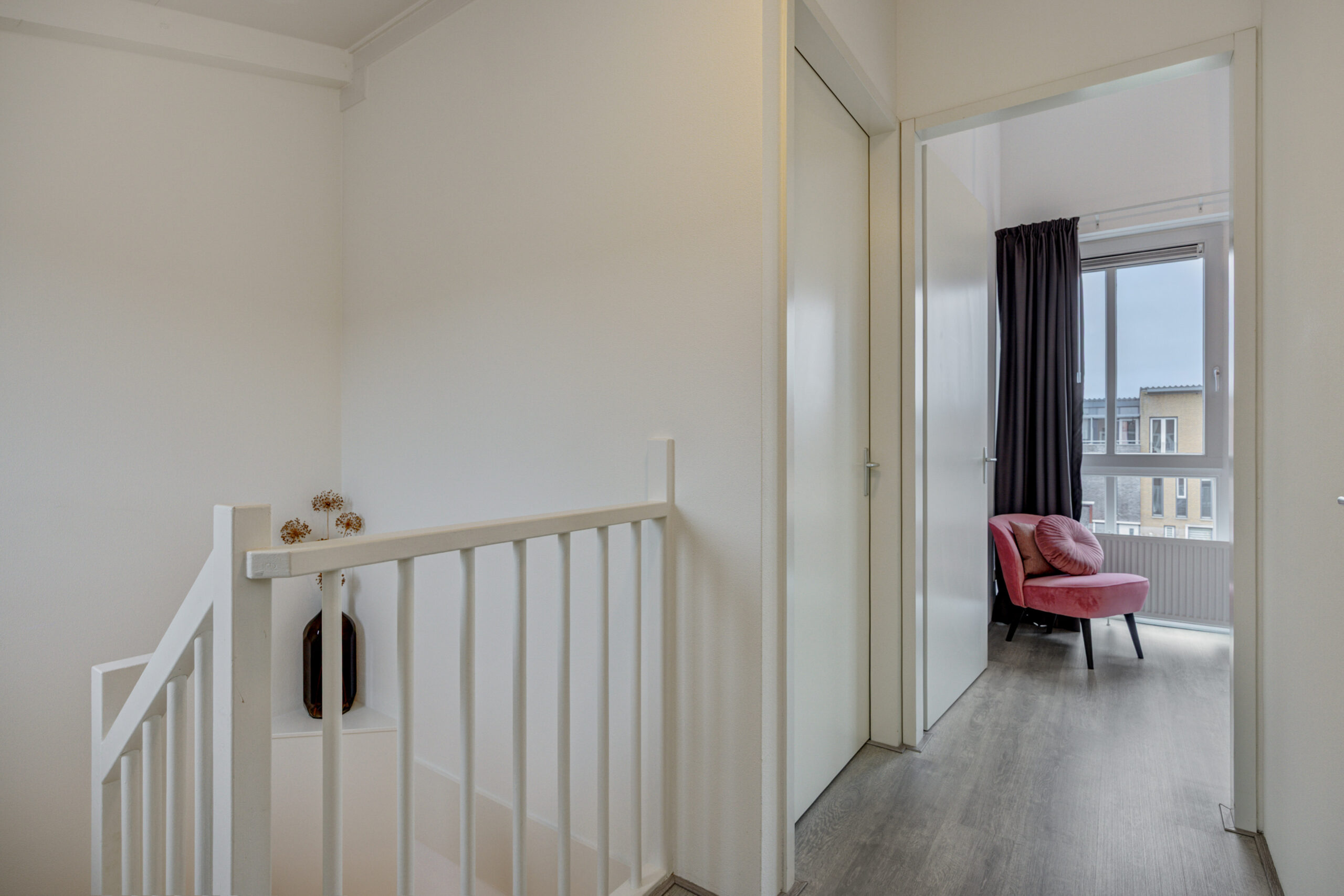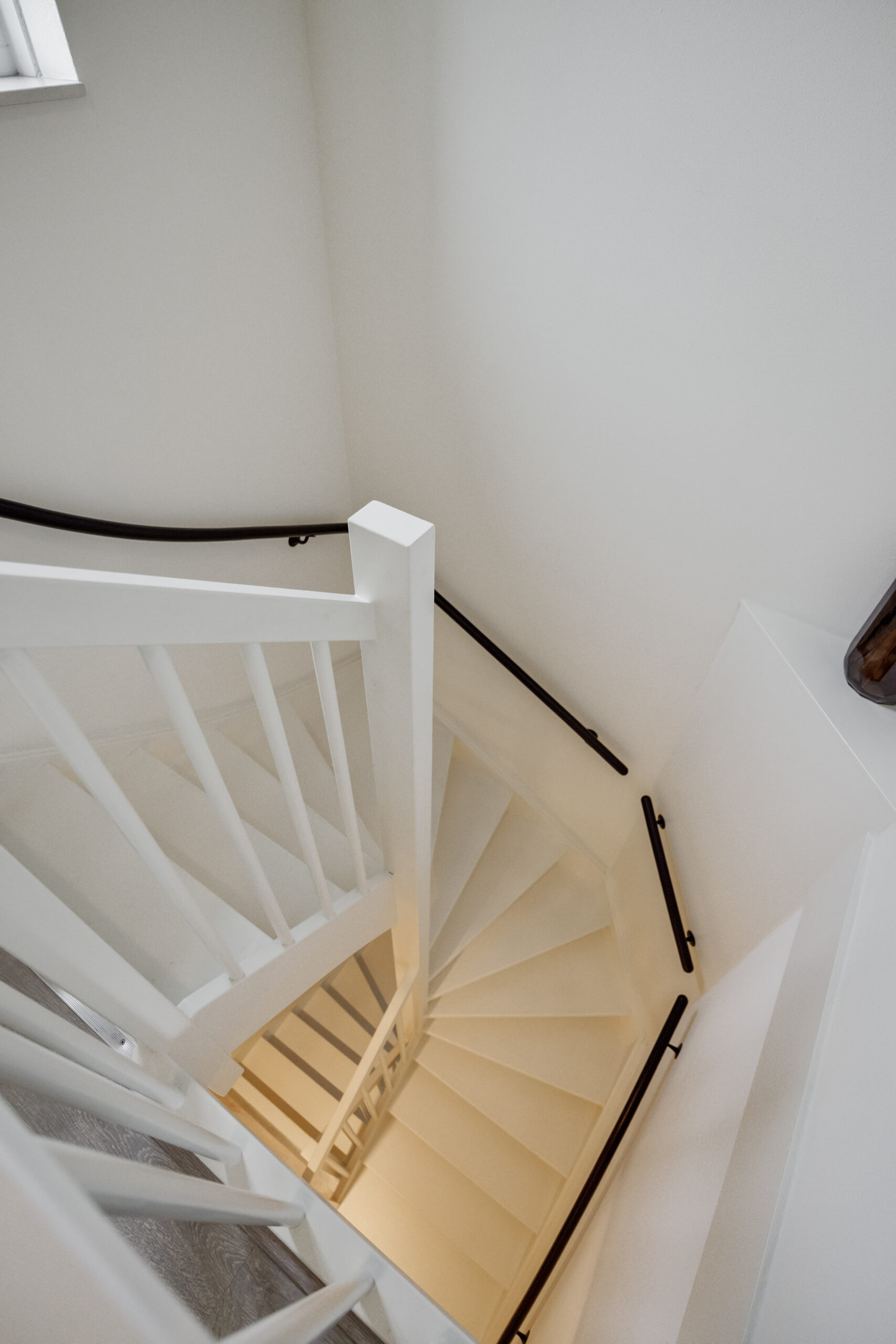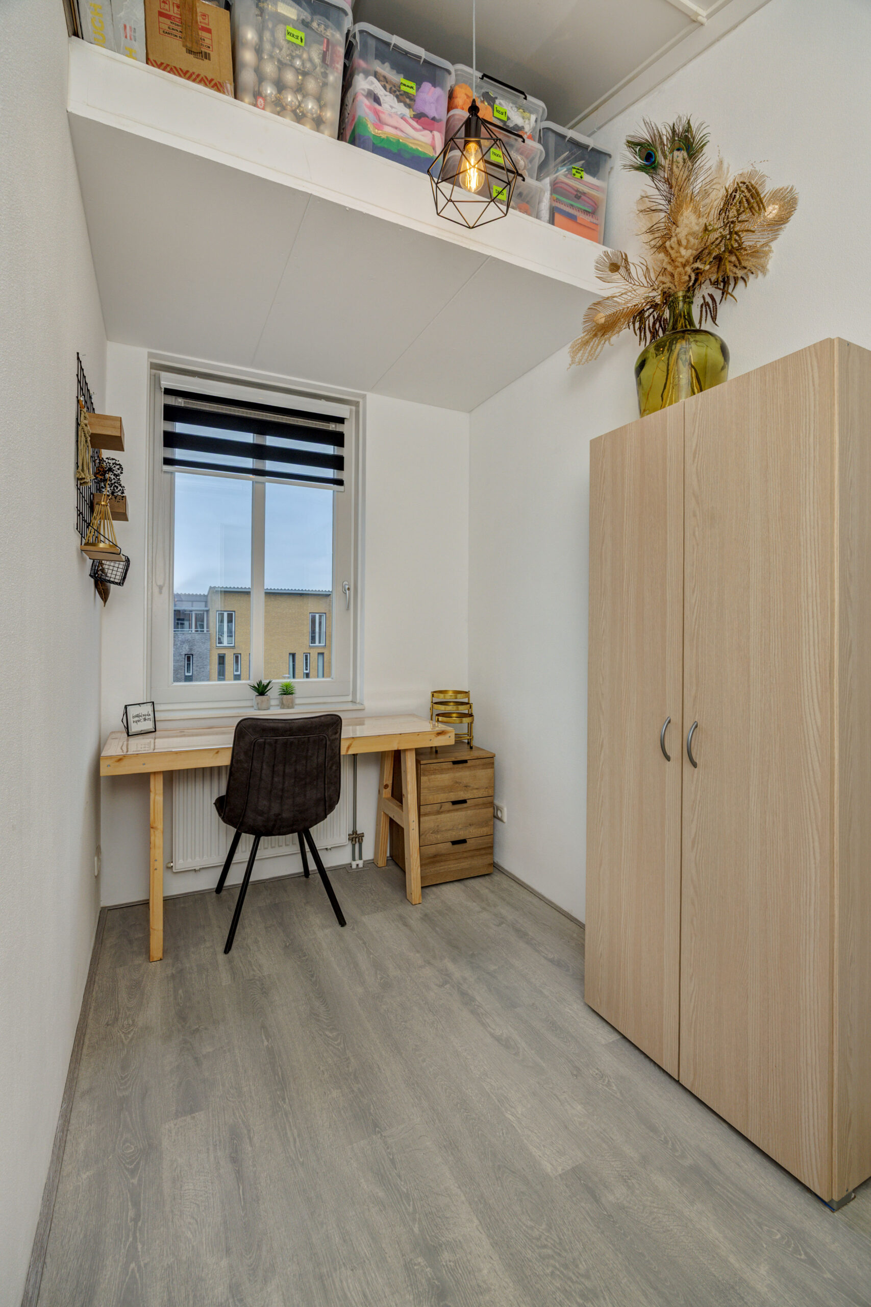 Op de eerste verdieping vind je een grote slaapkamer met inloopkast en een luxe badkamer. De badkamer is modern en stijlvol uitgevoerd in wit- en antraciettinten en beschikt over een tweede toilet, een wastafelmeubel en een ruime inloopdouche. Ook in de badkamer is vloerverwarming aanwezig en dankzij het raam en de mechanische ventilatie is er altijd van voldoende frisse lucht. De tweede verdieping bereik je via een vaste trap. Hier bevinden zich nog twee slaapkamers en een aparte wasruimte. In de wasruimte vind je de aansluitingen voor wasmachine en droger, de cv-ketel en extra bergruimte.