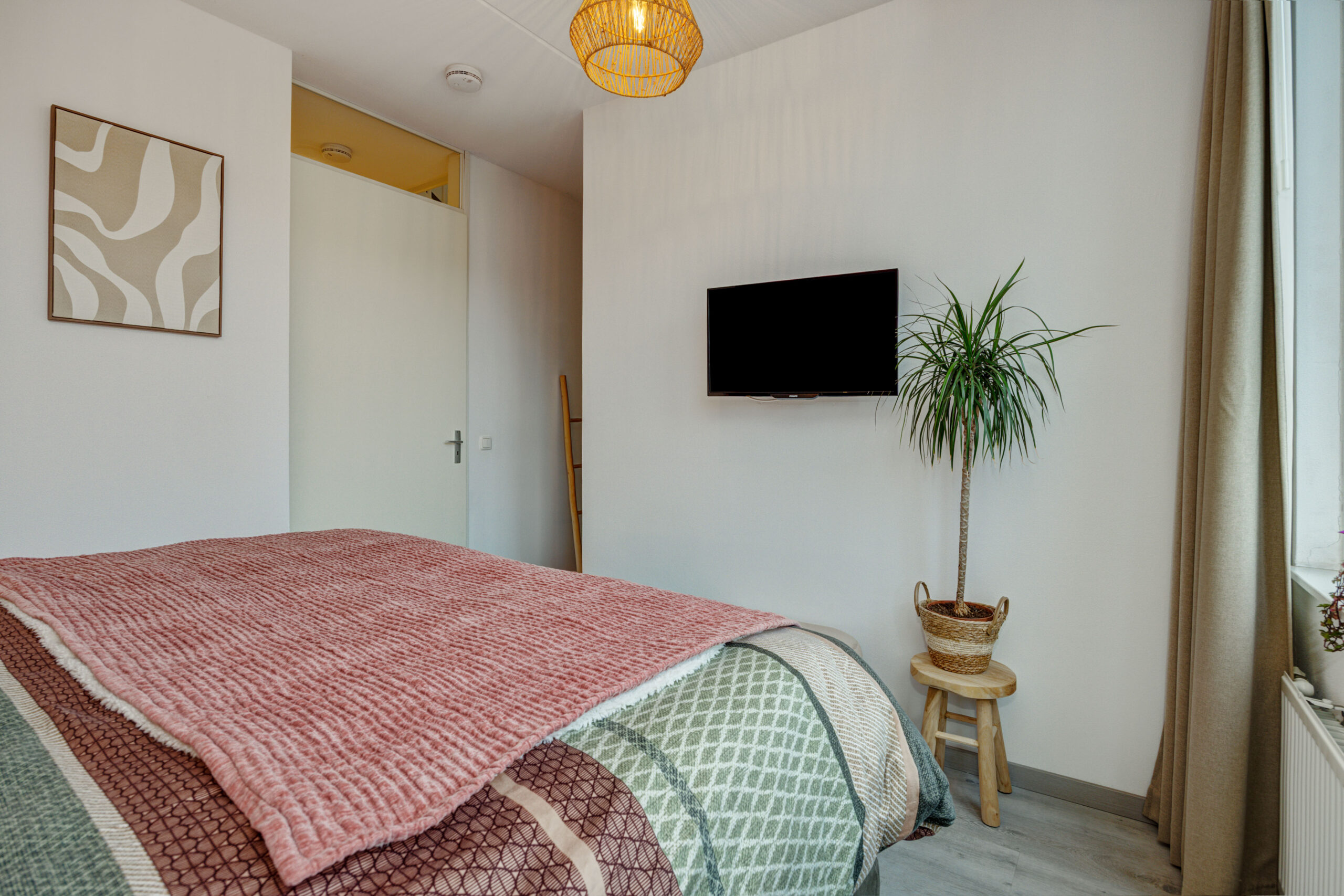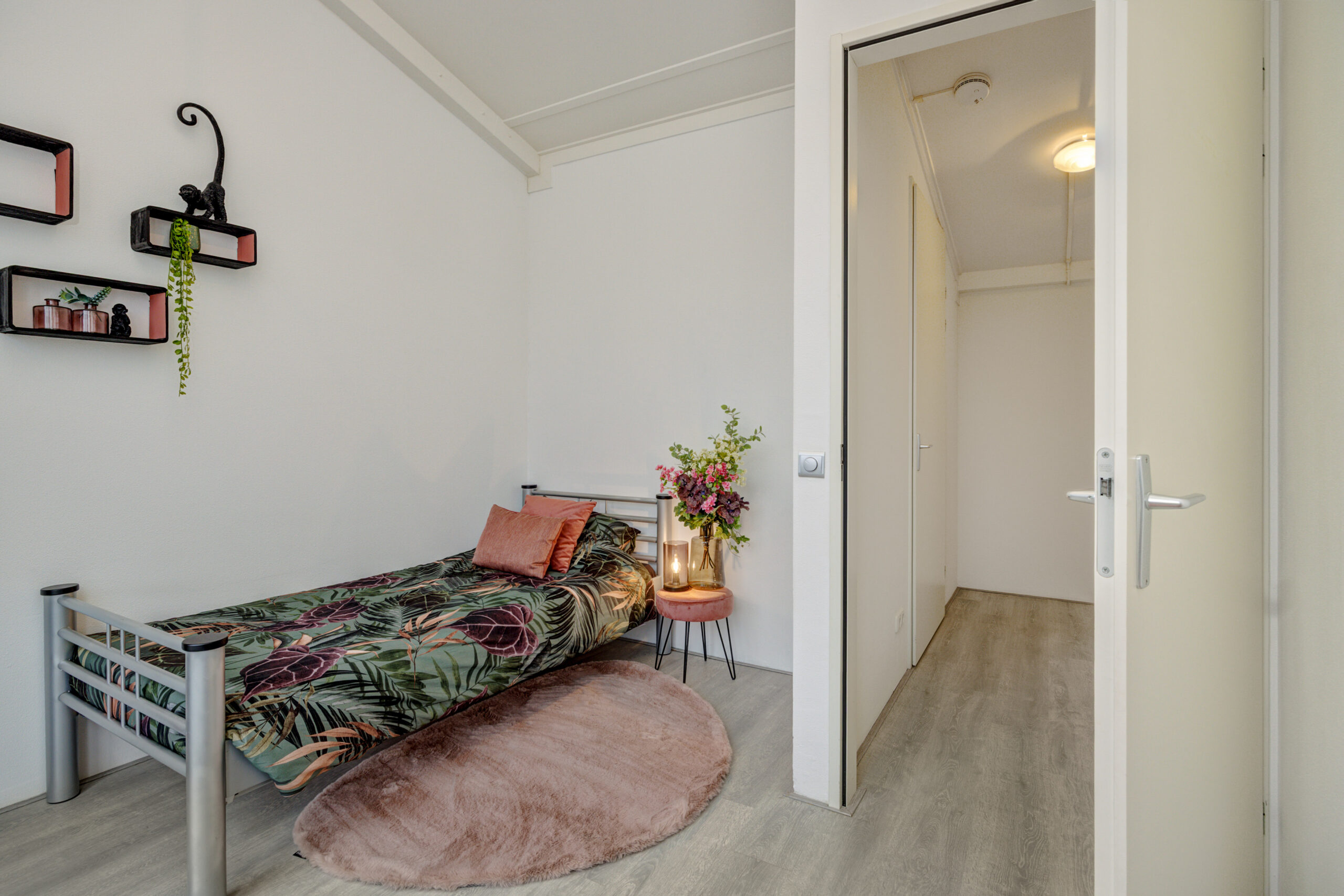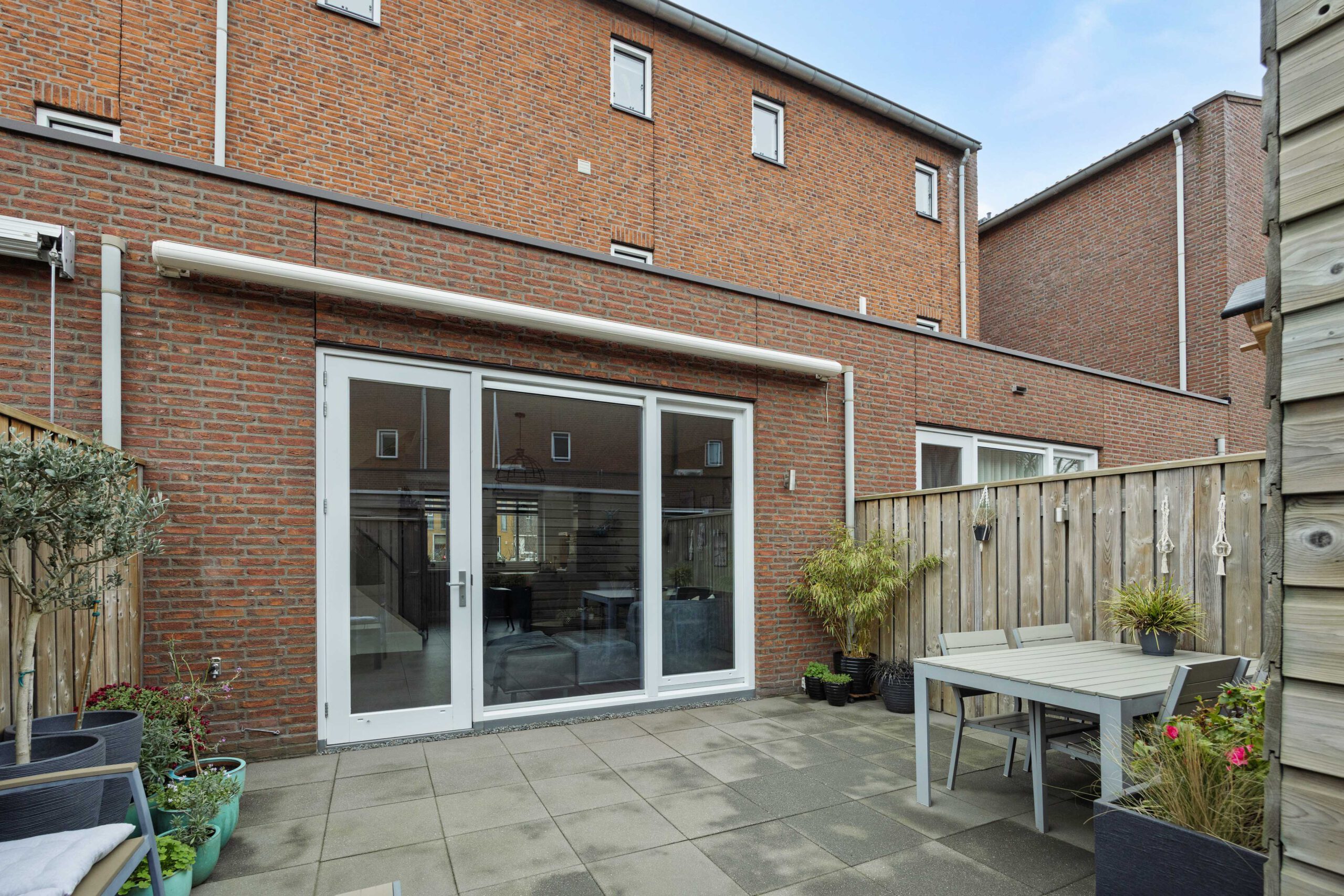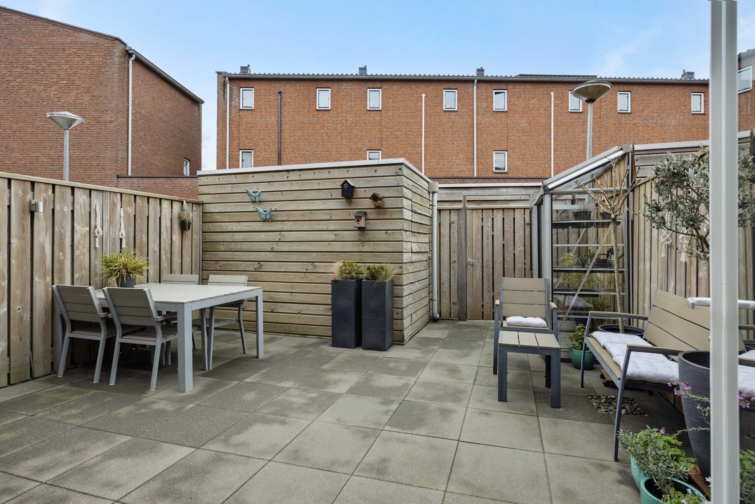 Buiten geniet je van een zonnige tuin op het zuiden. De tuin is compact maar slim ingedeeld, waardoor je hier heerlijk kunt ontspannen. Wordt het te warm, dan biedt het elektrische zonnescherm uitkomst. Achterin de tuin staat een handige berging voor de fietsen en via de achterom is de tuin goed bereikbaar.