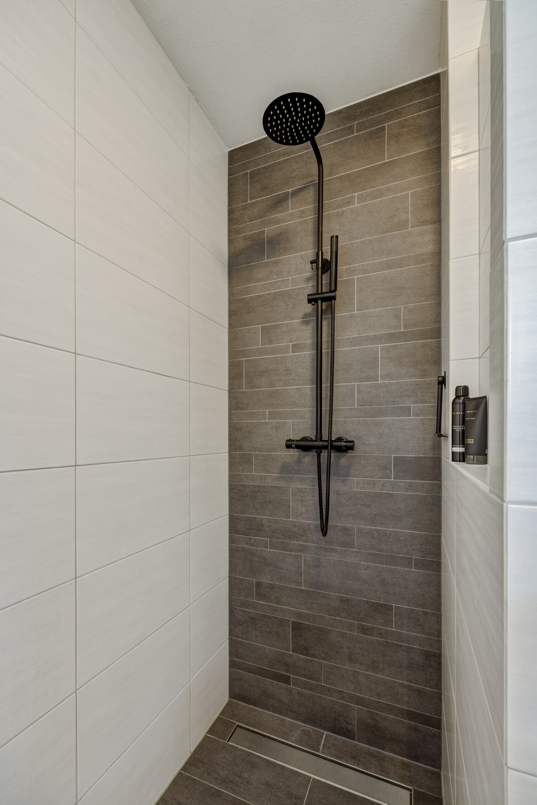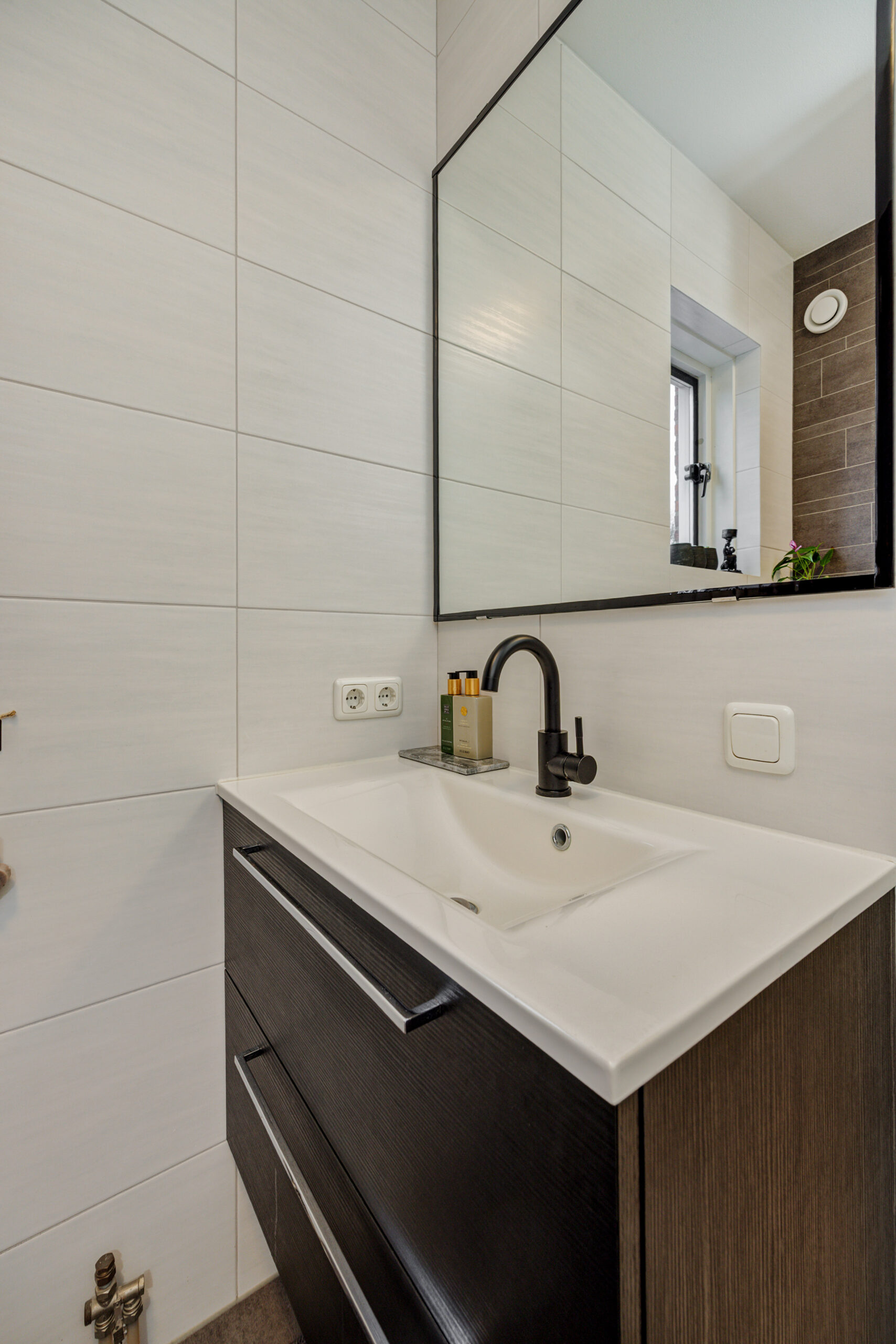 – Luxe badkamer met inloopdouche, wastafelmeubel, toilet en vloerverwarming.