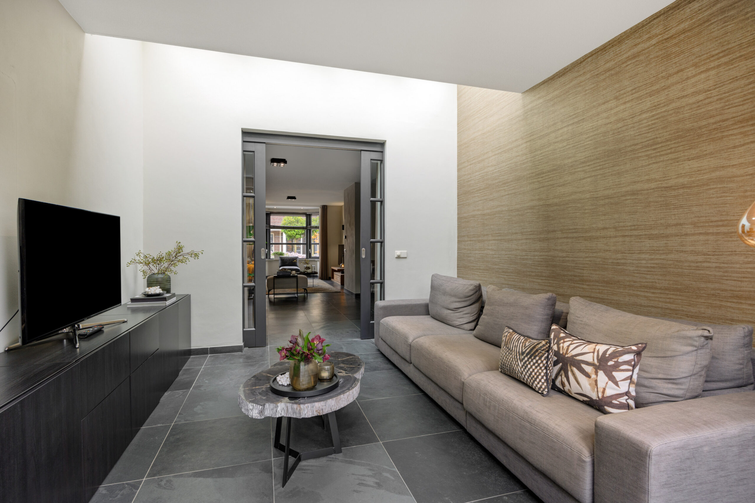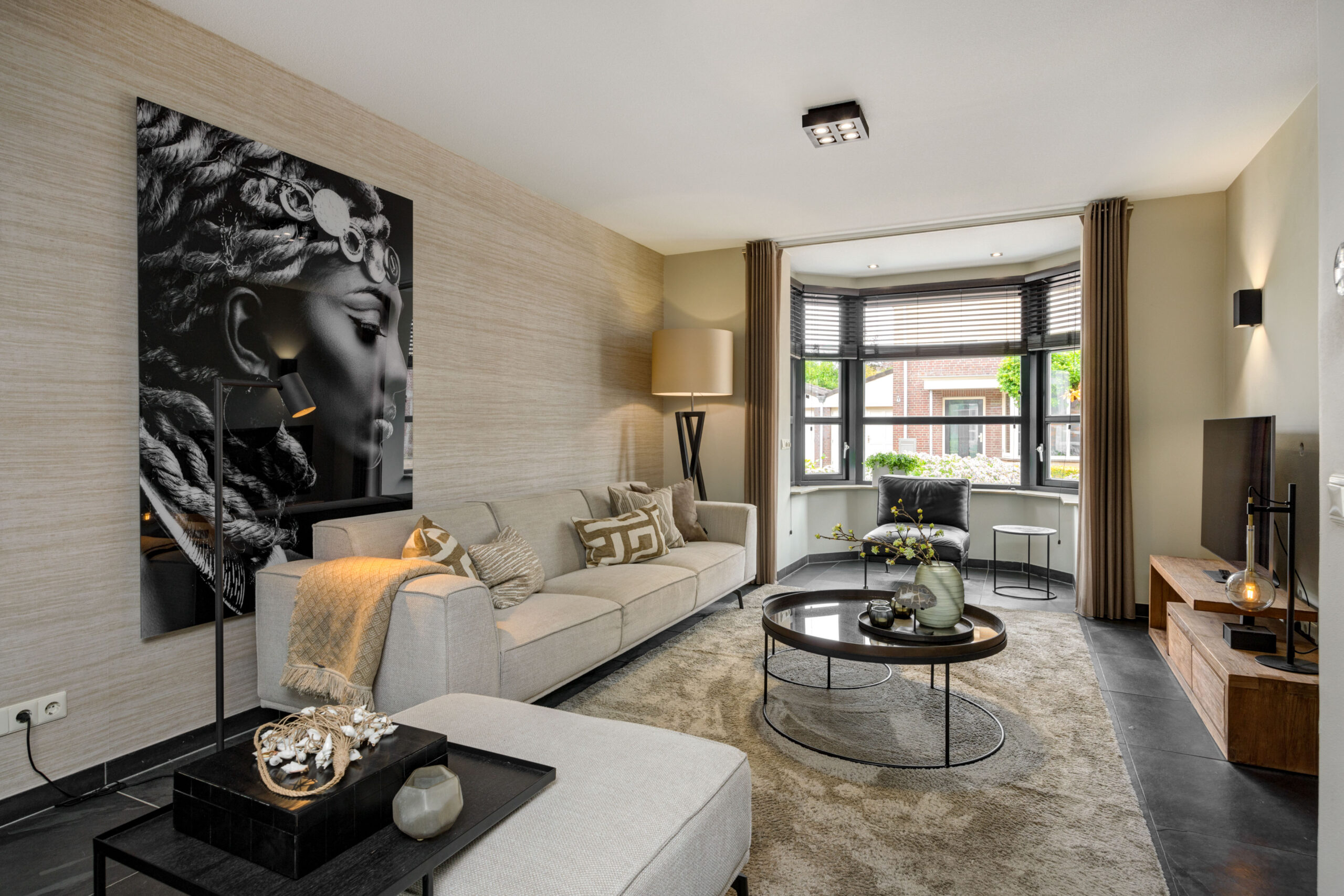 – Lichte woonkamer met sfeervolle erker en ensuite deuren.