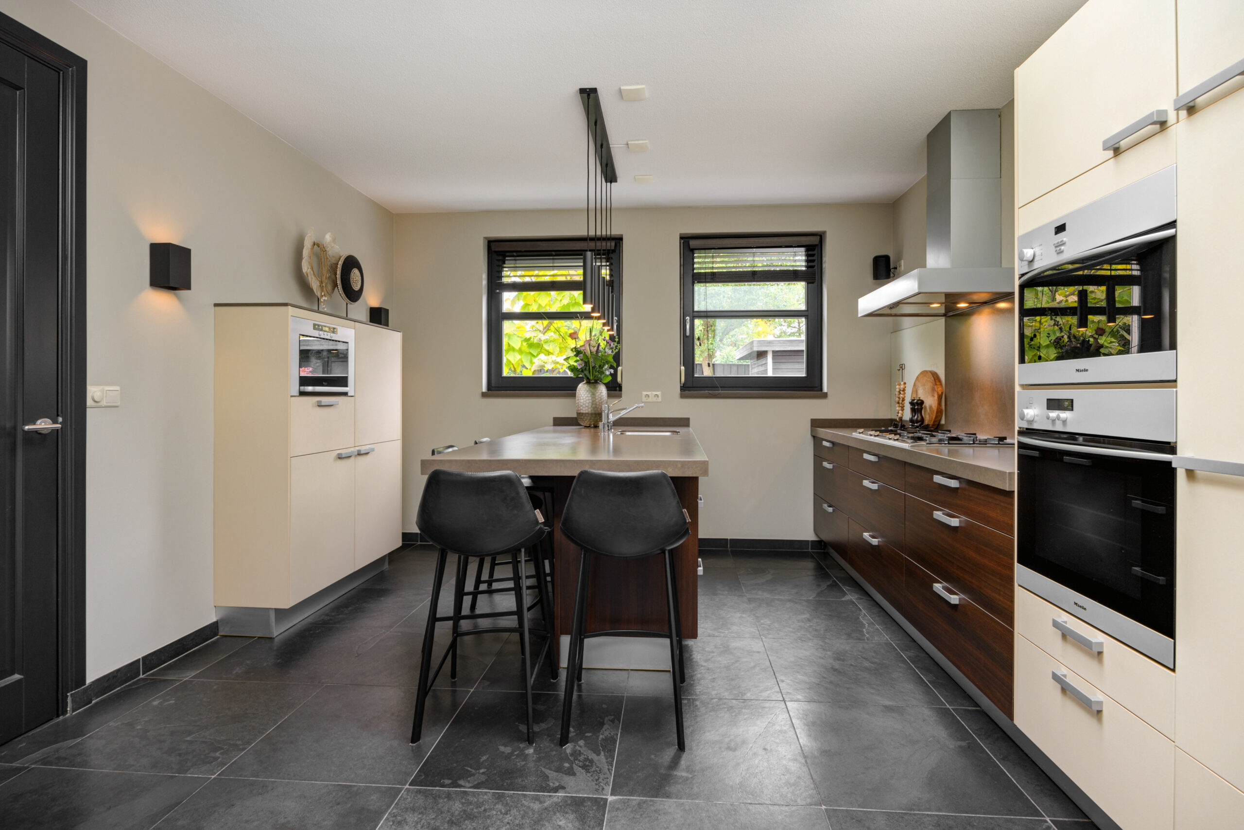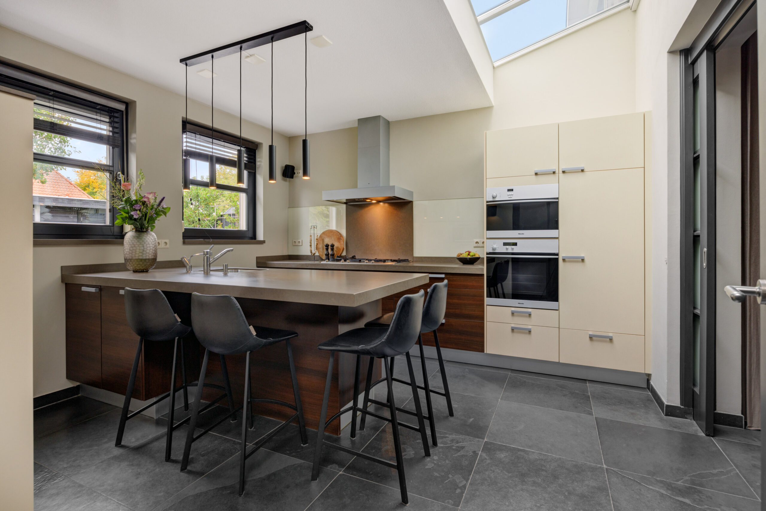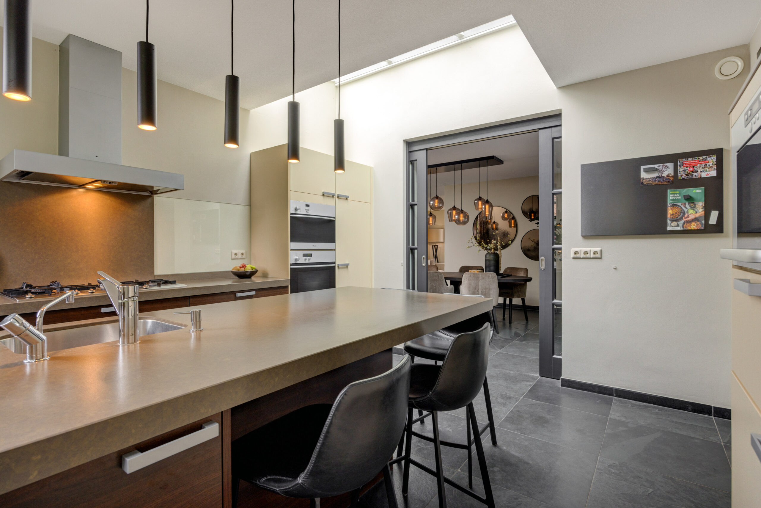 De woonkamer is heerlijk licht, met een sfeervolle erker en meer dan genoeg plek voor een flinke zithoek en een grote eettafel. Aan de achterzijde bevindt zich de luxe keuken, voorzien van alle benodigde inbouwapparatuur, een spoeleiland en veel werkruimte. De afsluitbare tuinkamer kan worden gebruikt als hobbyruimte of speelkamer voor de kinderen. Verder vind je op de begane grond een praktische bijkeuken, een kantoor en een inpandige berging met openslaande deuren naar de oprit. Naast een hoogwaardige afwerking, zijn de ruimtes ook nog eens heel logisch ingedeeld, waardoor deze woning erg gebruiksvriendelijk is.