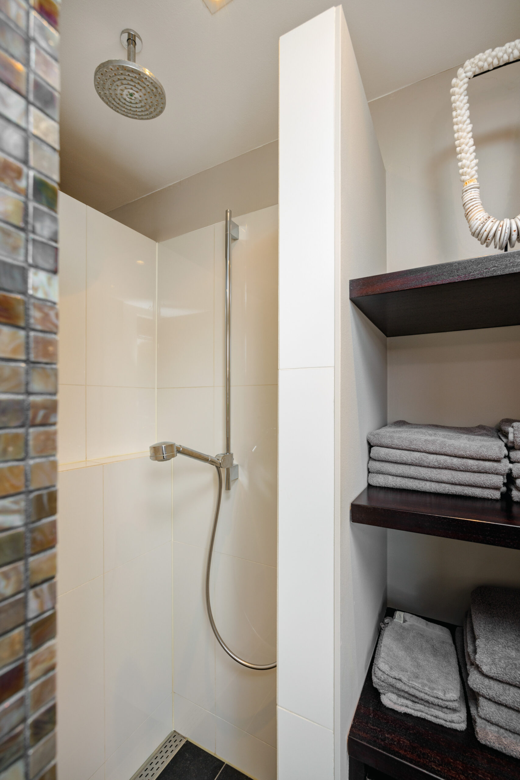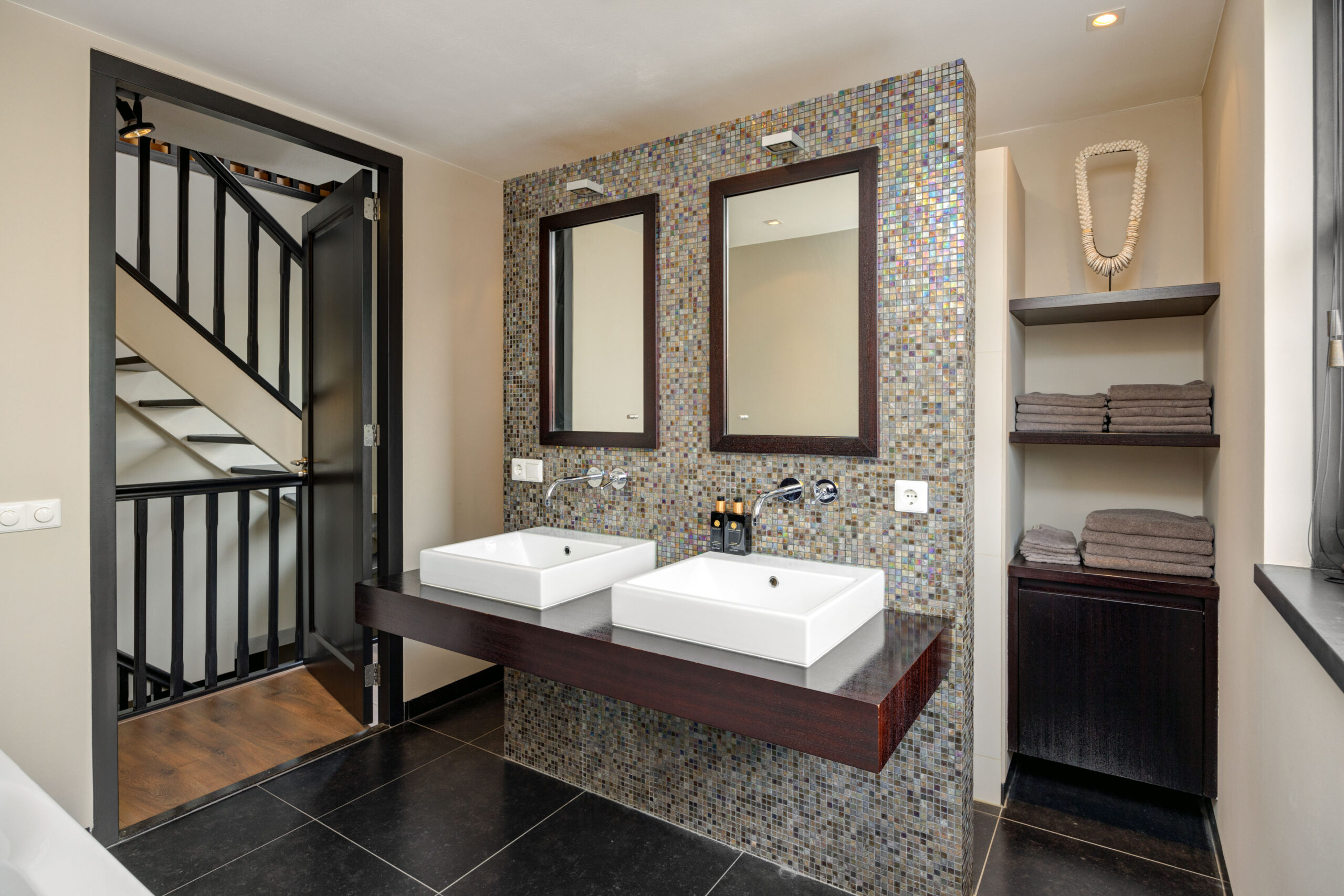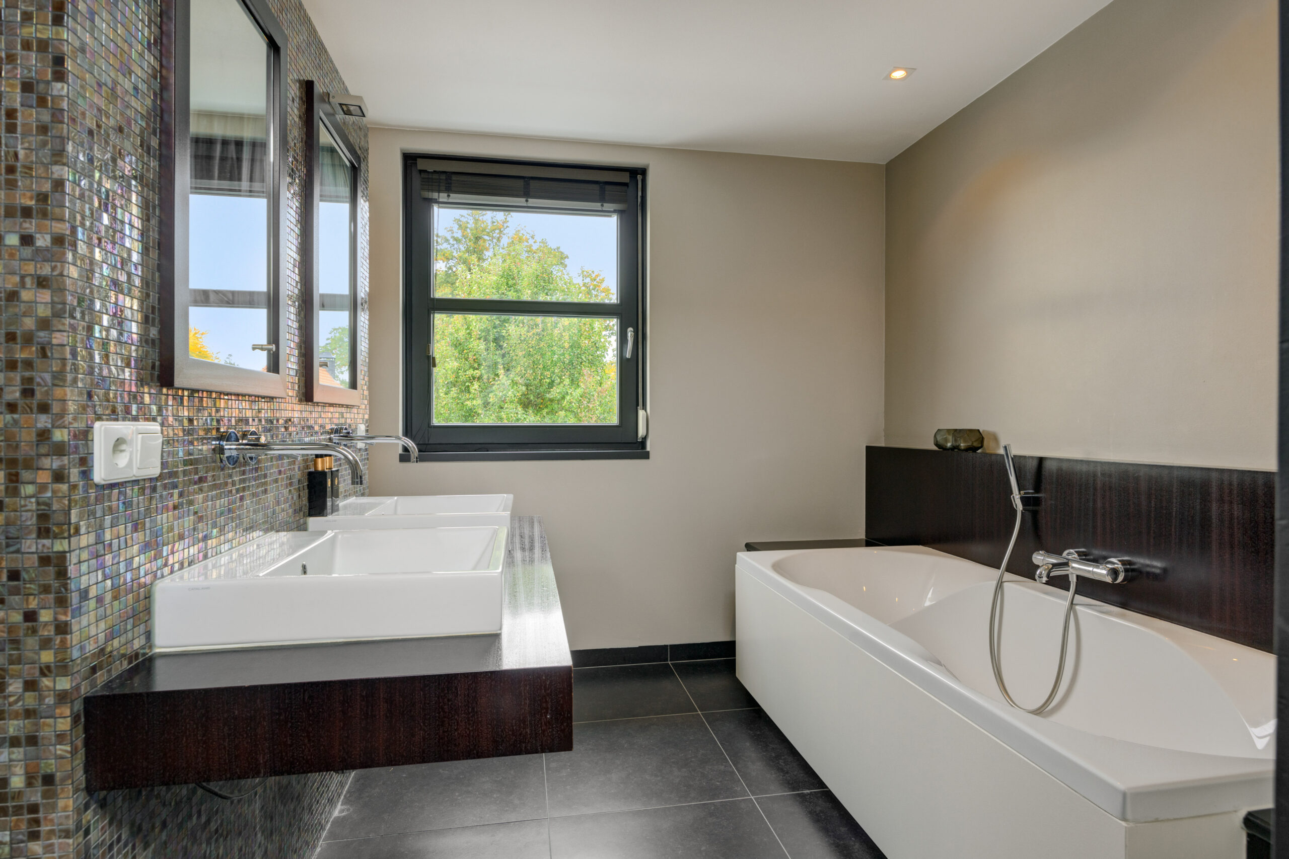 – Luxe badkamer met ligbad, inloopdouche, dubbele wastafel met meubel, toilet en vloerverwarming.