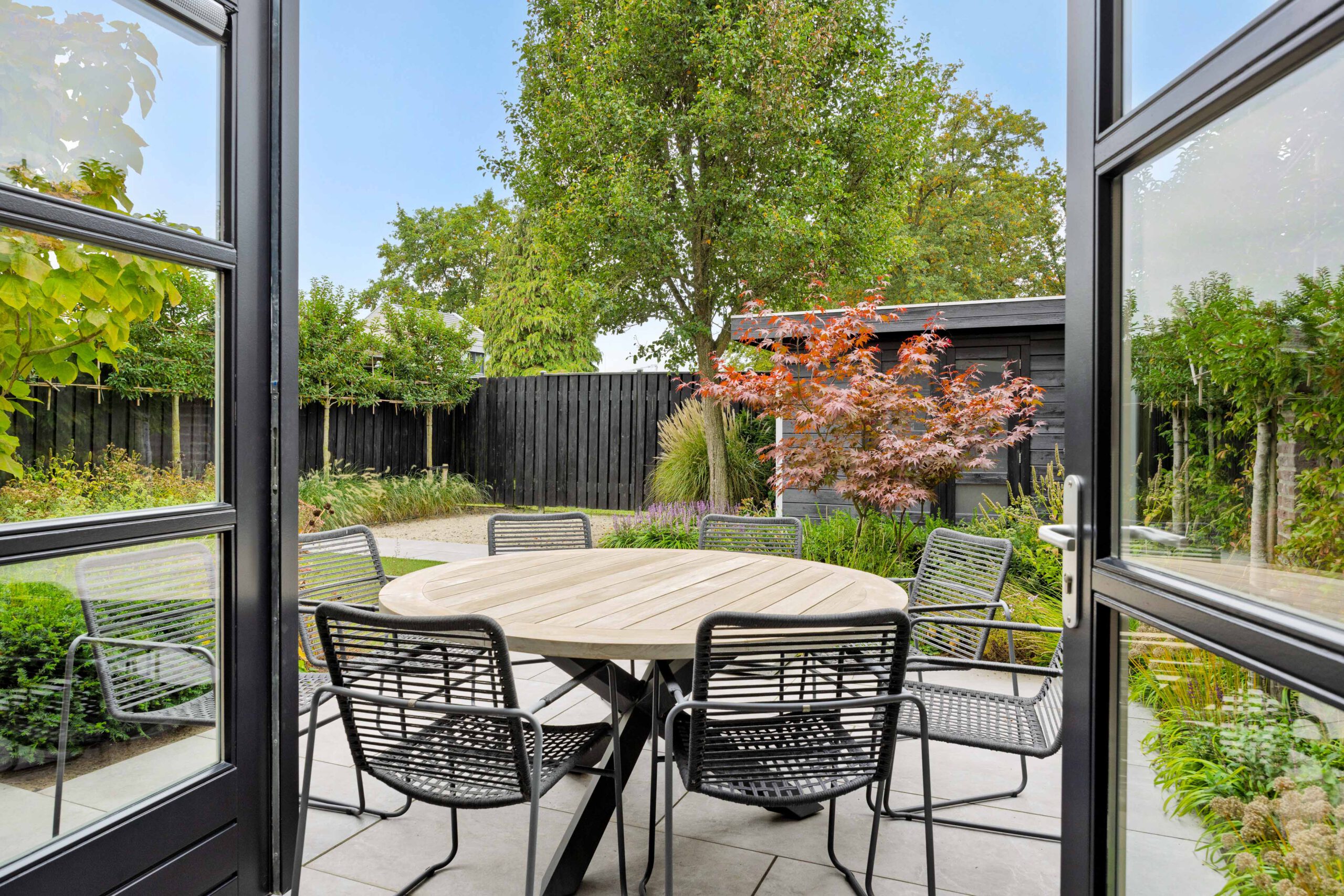 De zonnige tuin is prachtig aangelegd (2023) en heeft een gunstige vrije ligging op het zuidwesten. Hier kun je het hele jaar door genieten van het rustige buitenleven. Er is voldoende ruimte voor een loungeset, een eettafel met stoelen en eventueel een leuk speeltoestel.