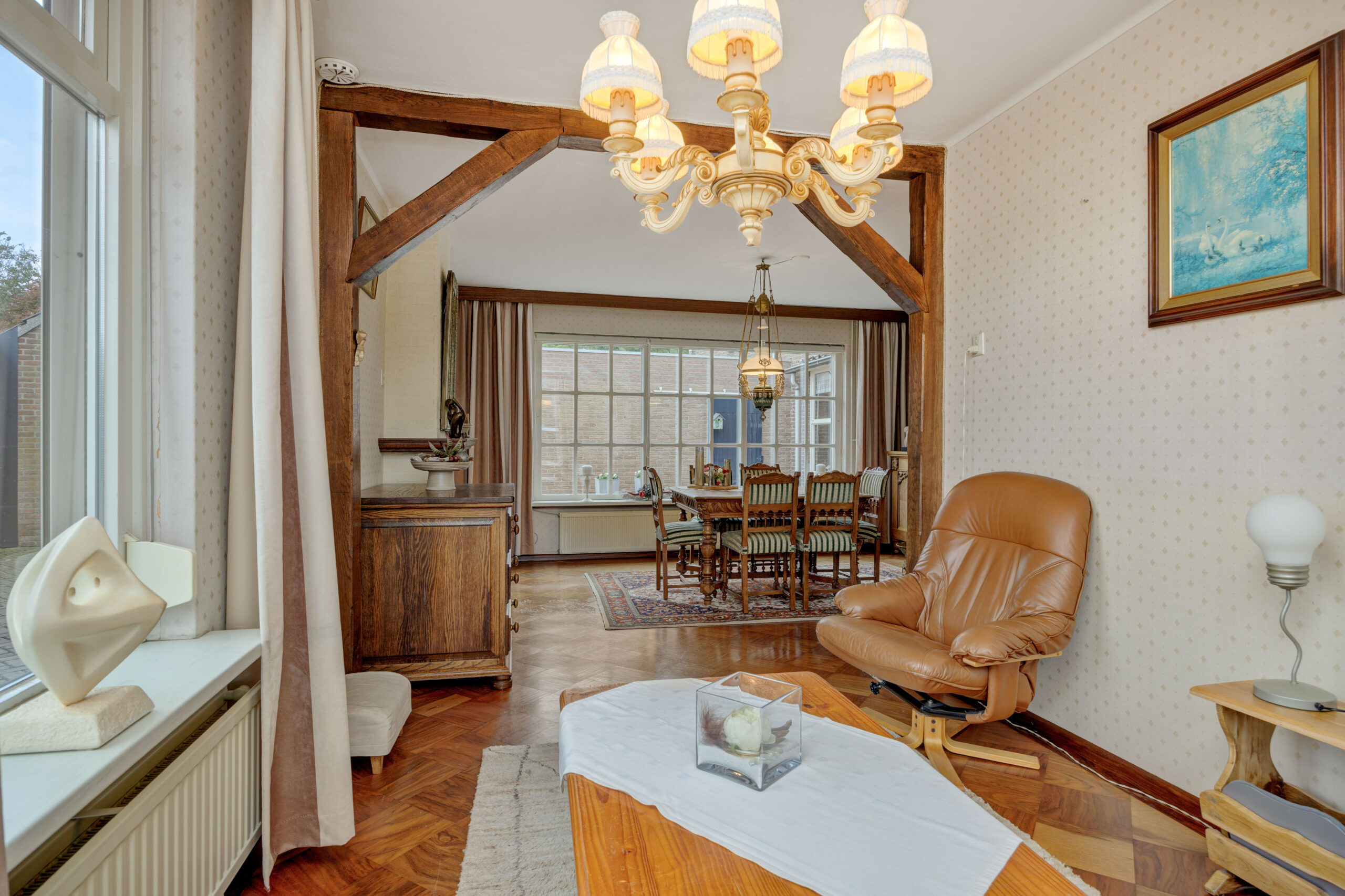 – Grote lichte woonkamer met fraai uitzicht op de tuin.