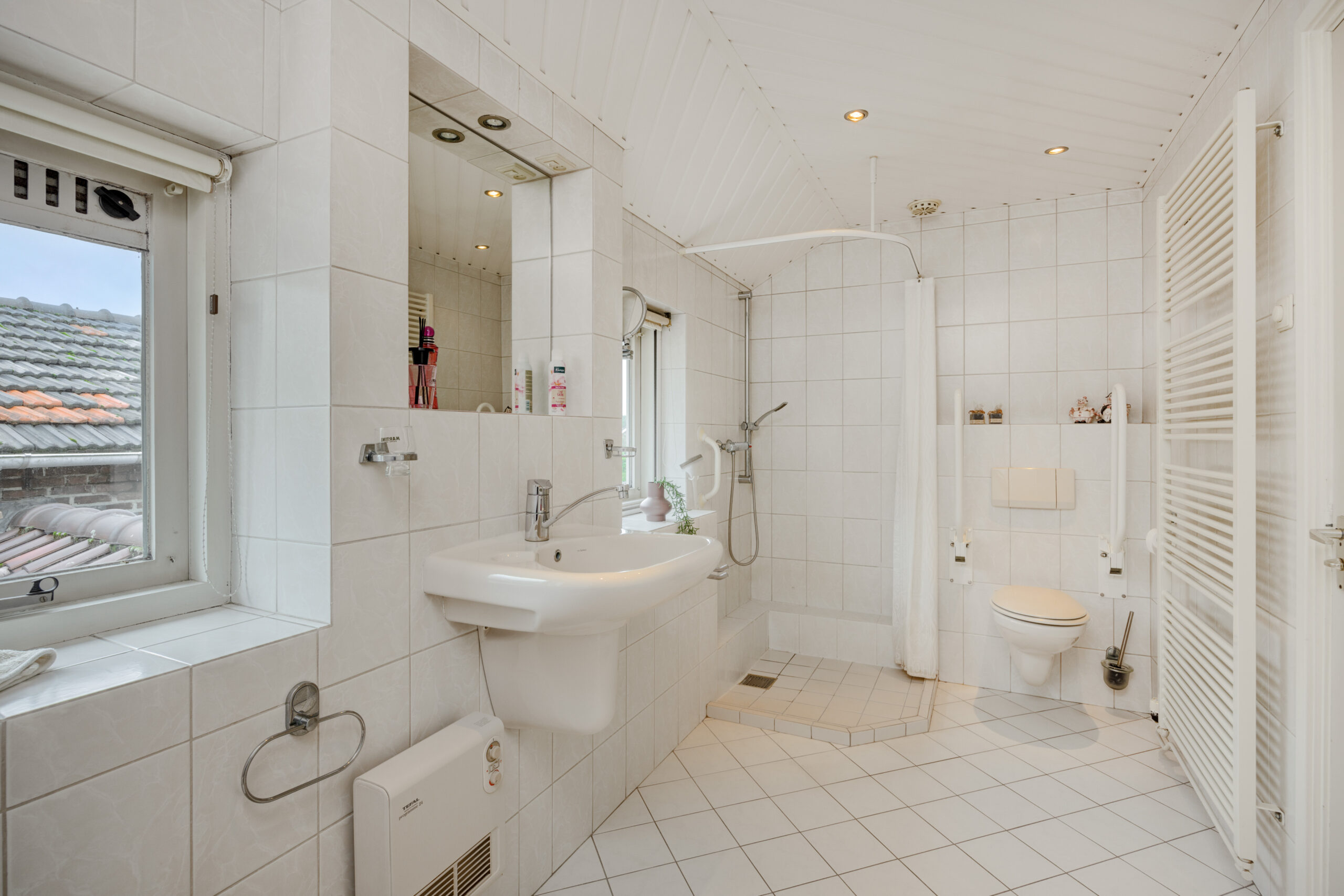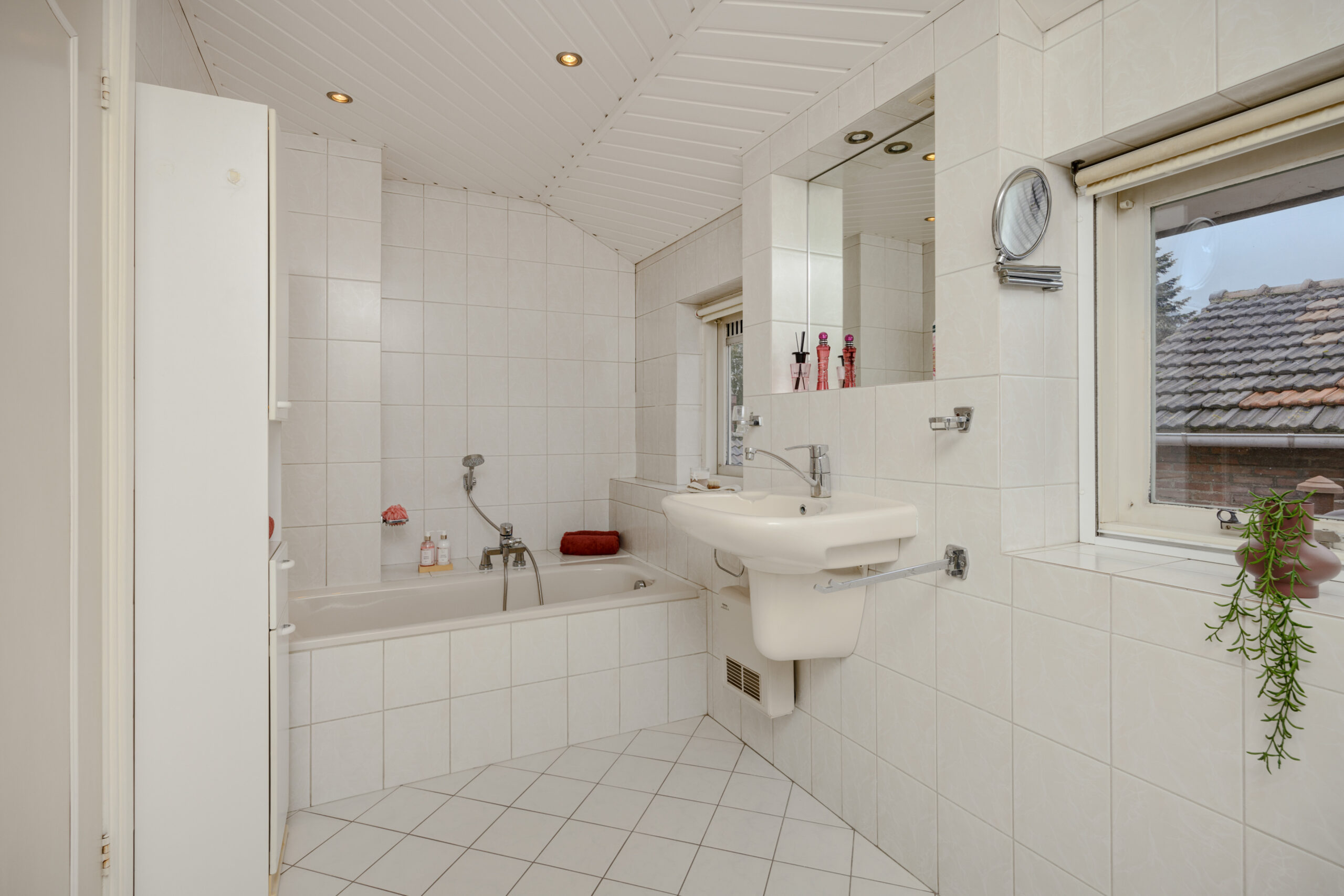 – Complete badkamer met ligbad, douche, wastafel en toilet.