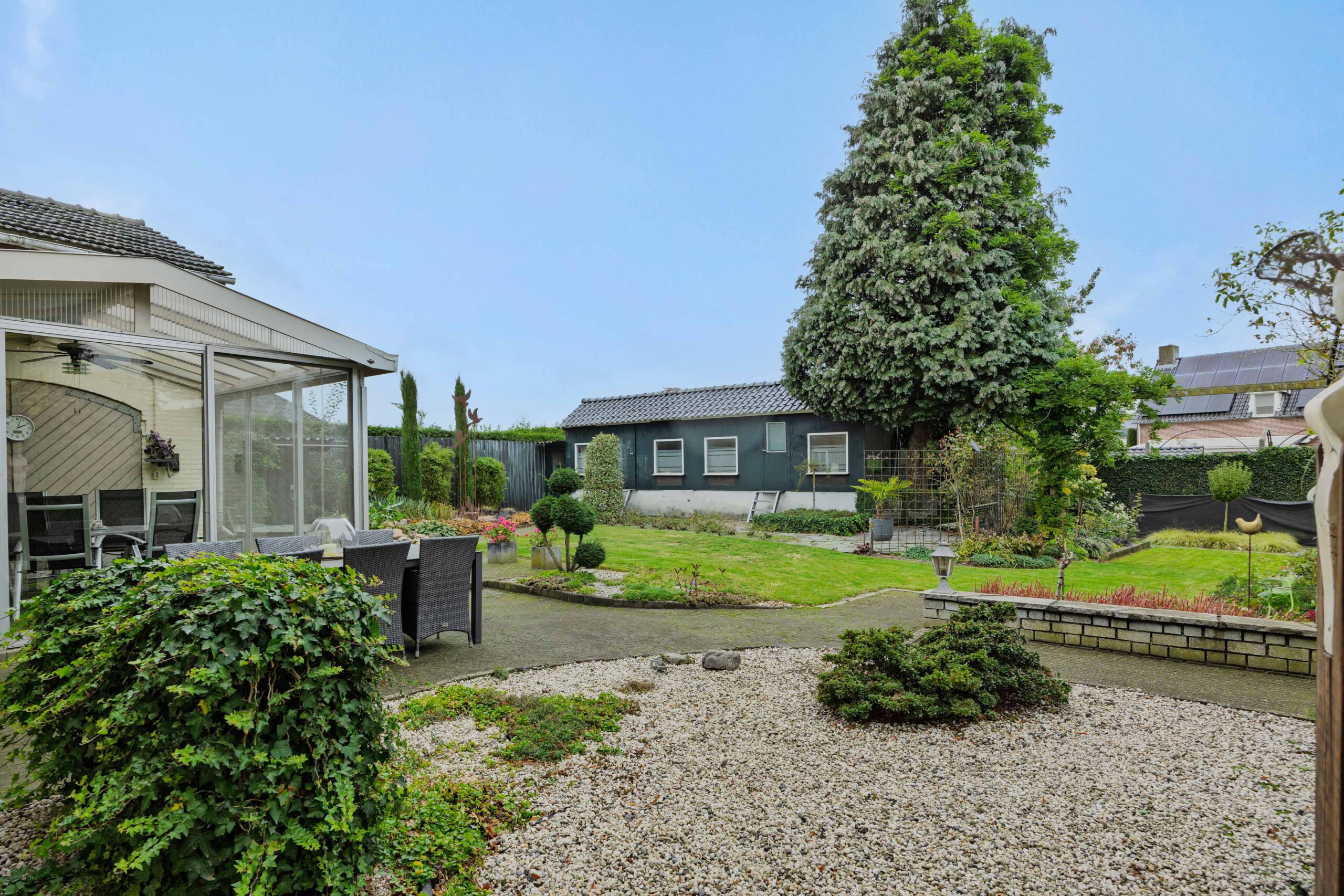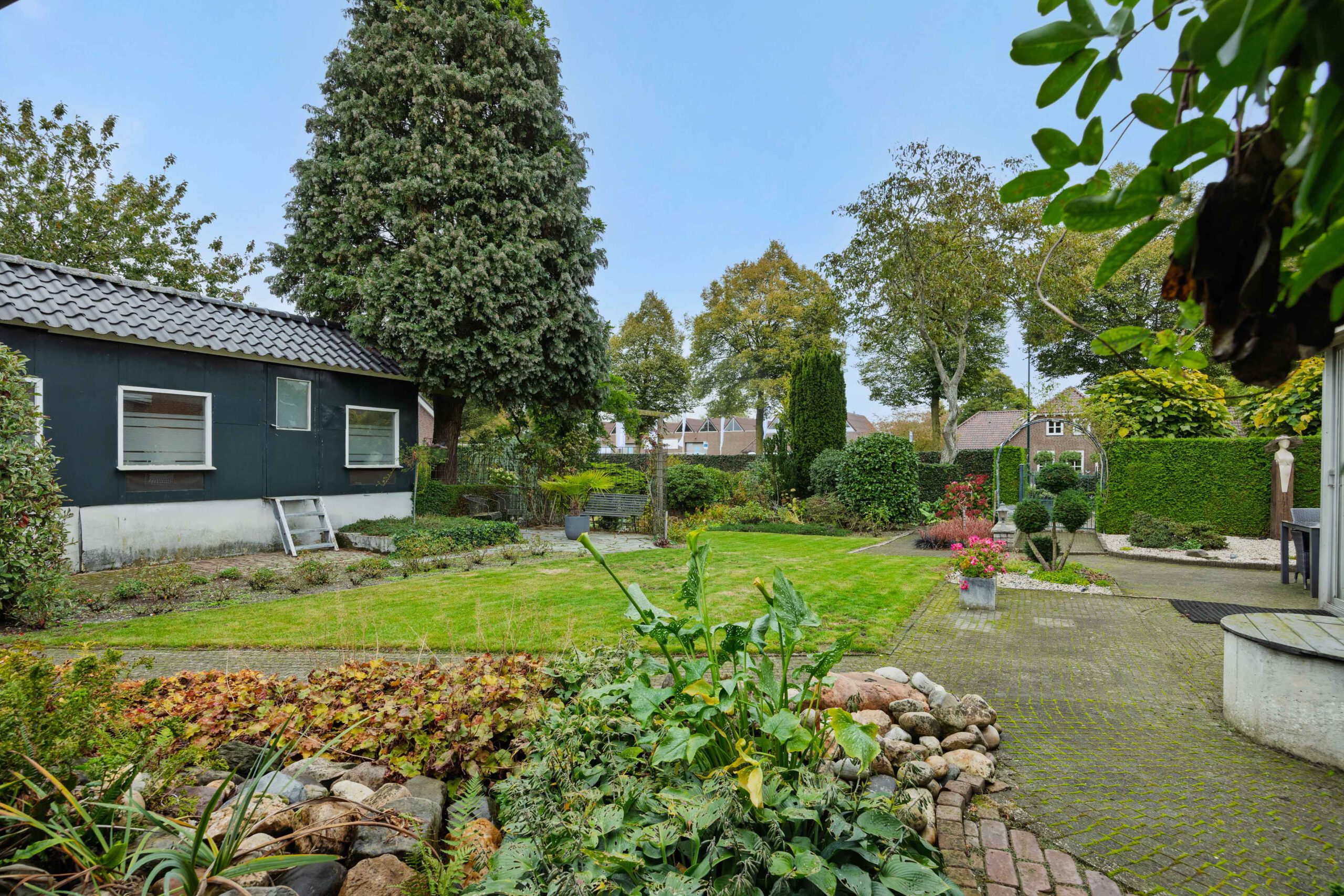Buiten gaat het gewoon verder, het perceel van ruim 1.000 m² biedt een heerlijke tuin rondom de woning, met volop plek om te genieten van zon, rust en privacy. Midden in het dorp, maar met alle vrijheid. Achter op het perceel vind je nog een extra berging.