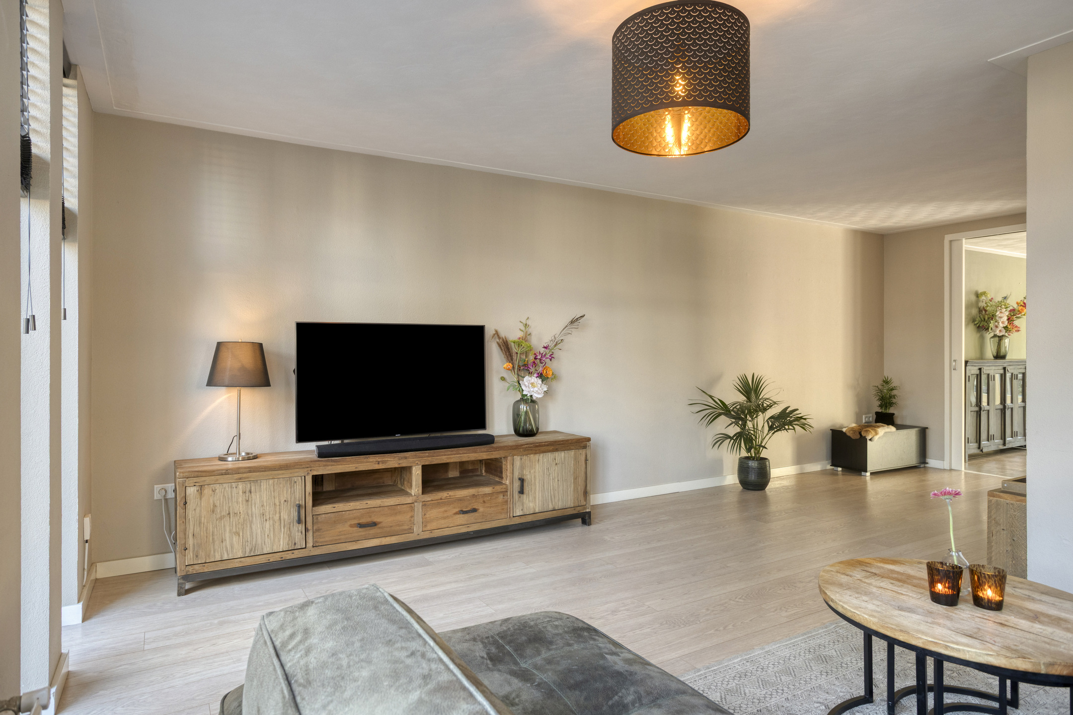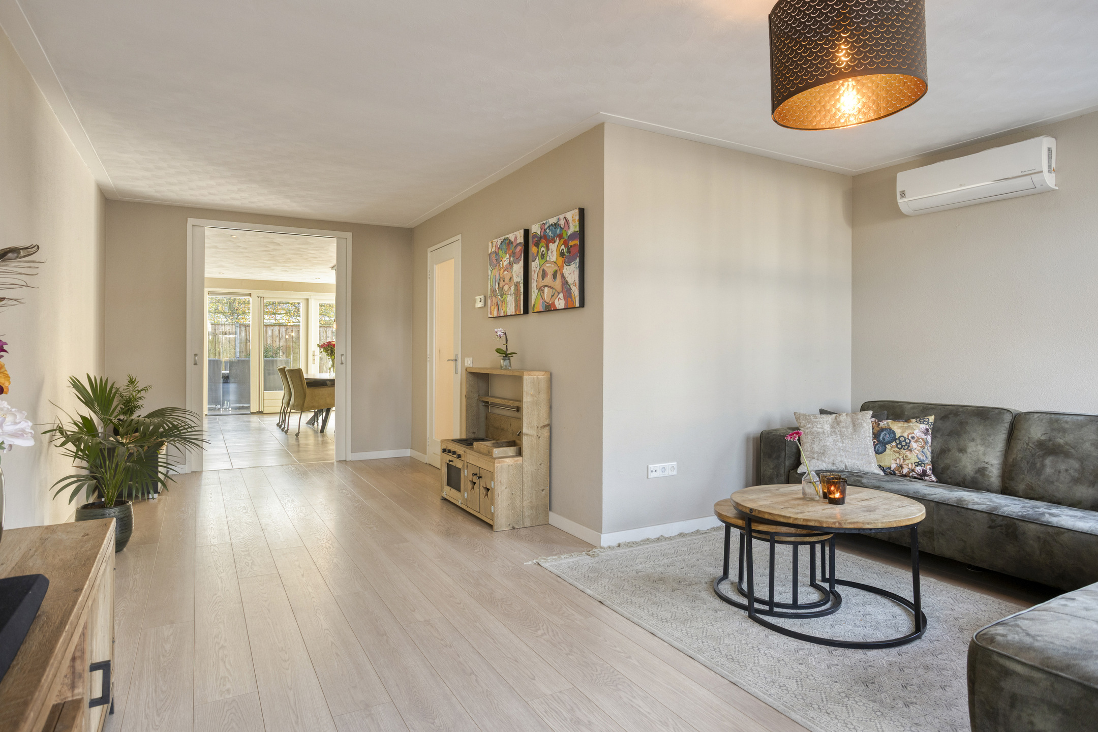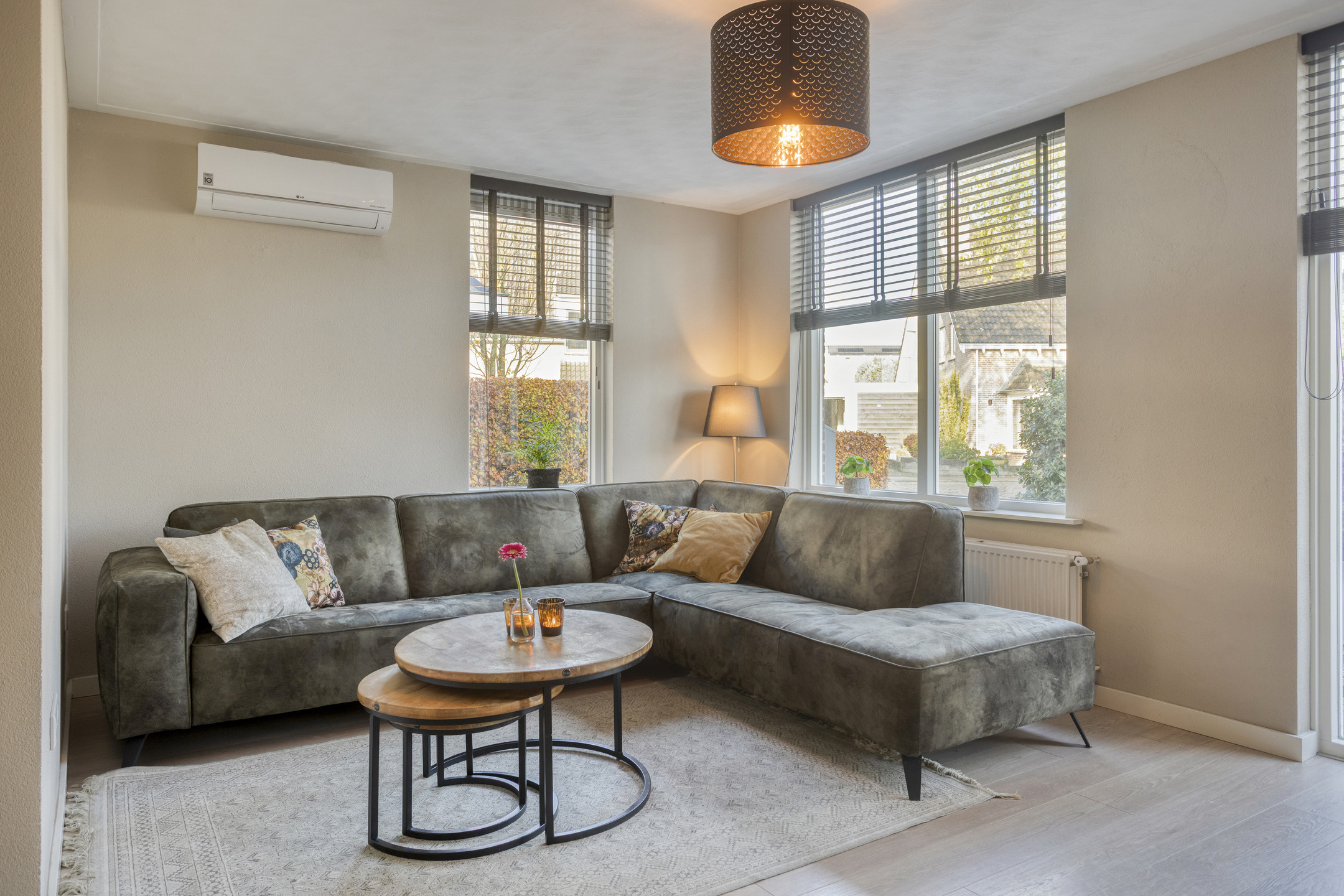 – Royale lichte woonkamer met flinke raampartijen en airconditioning.