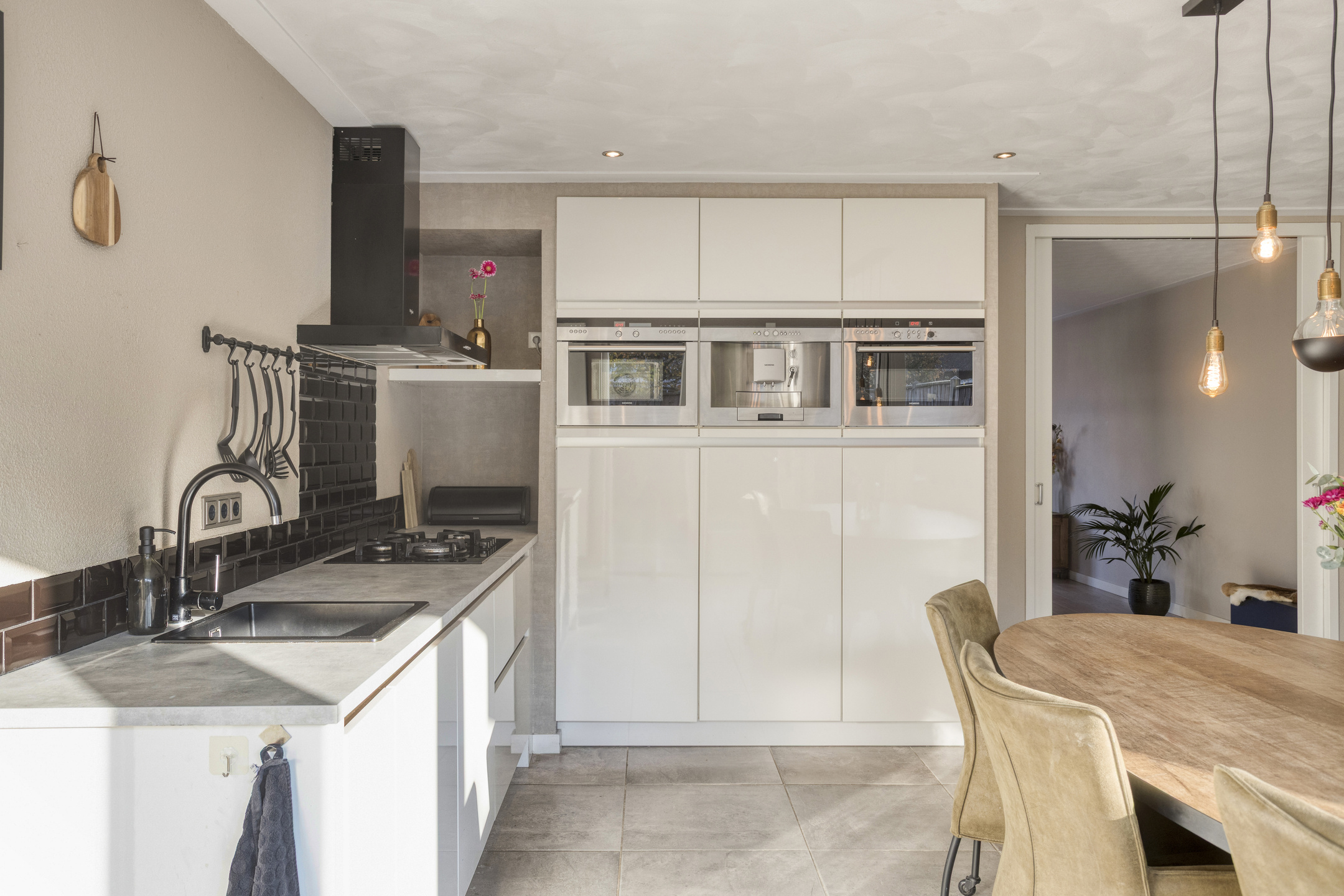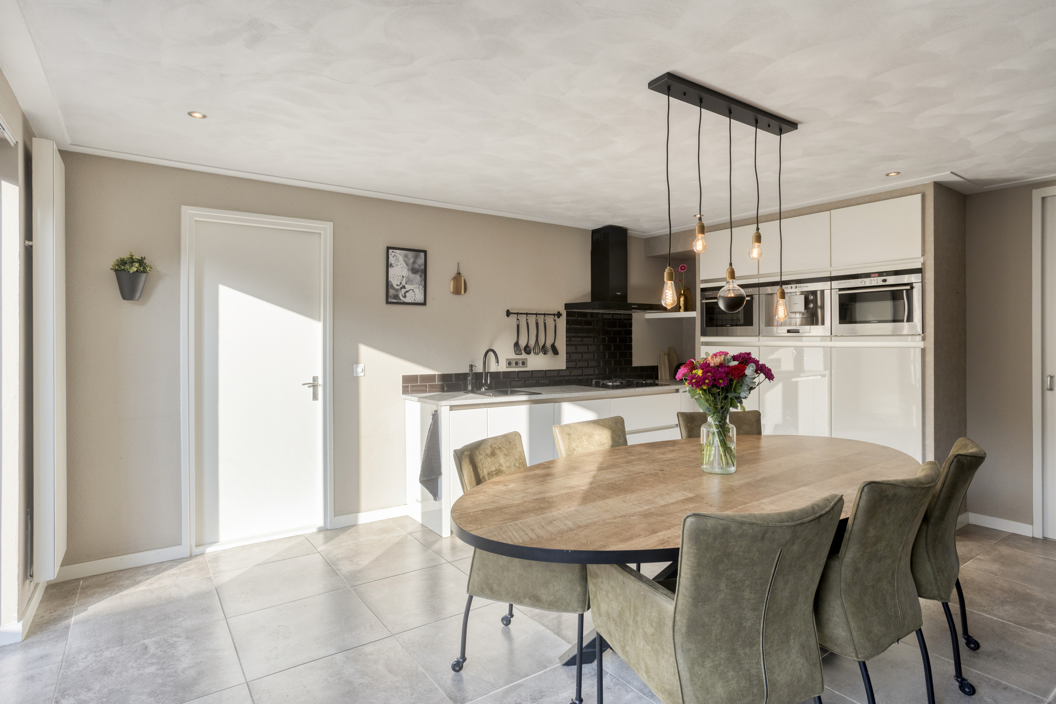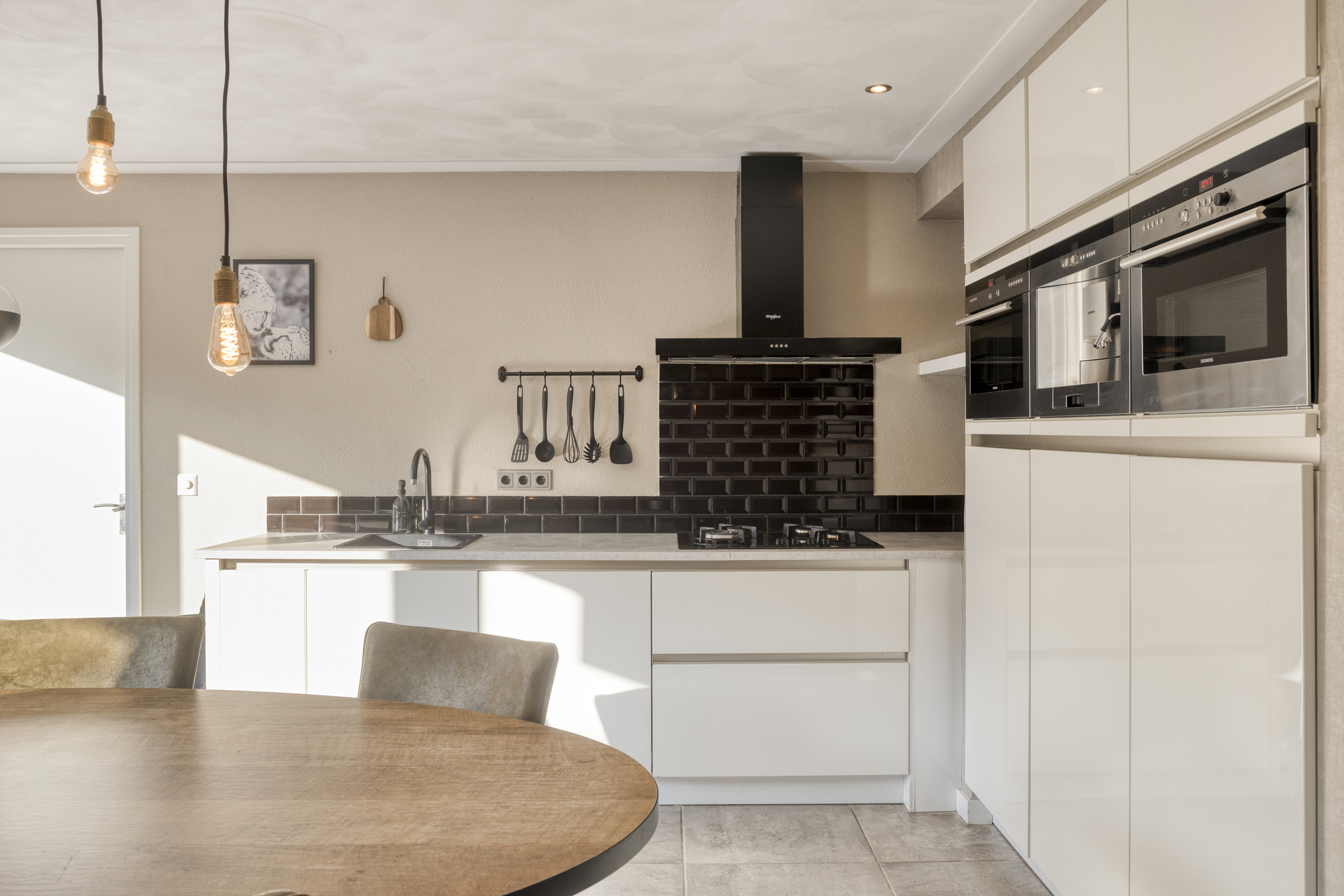 – Fraaie woonkeuken met diverse inbouwapparatuur en plek voor de eettafel.