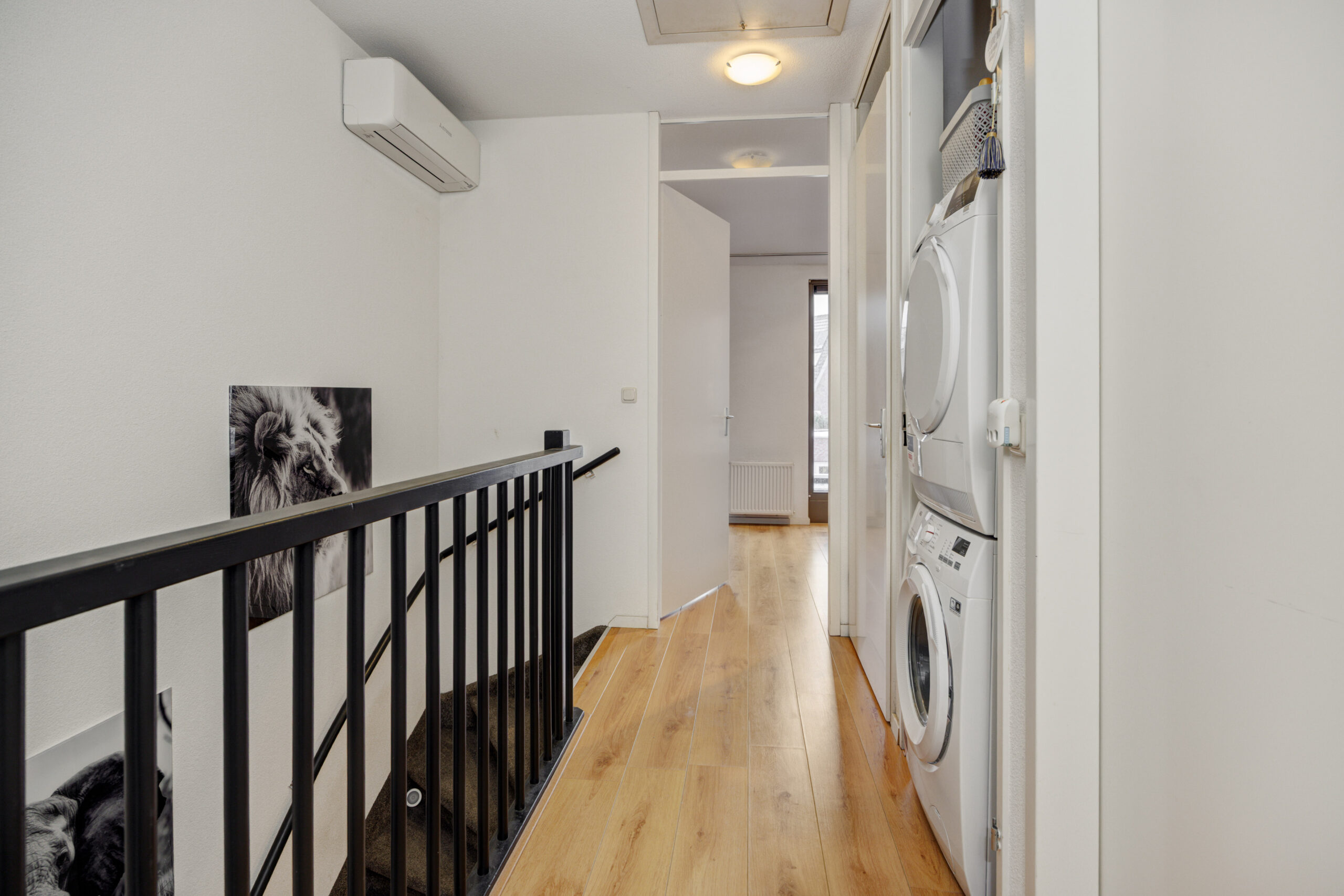 – Ruime overloop met opstelplaats voor de wasmachine en droger.