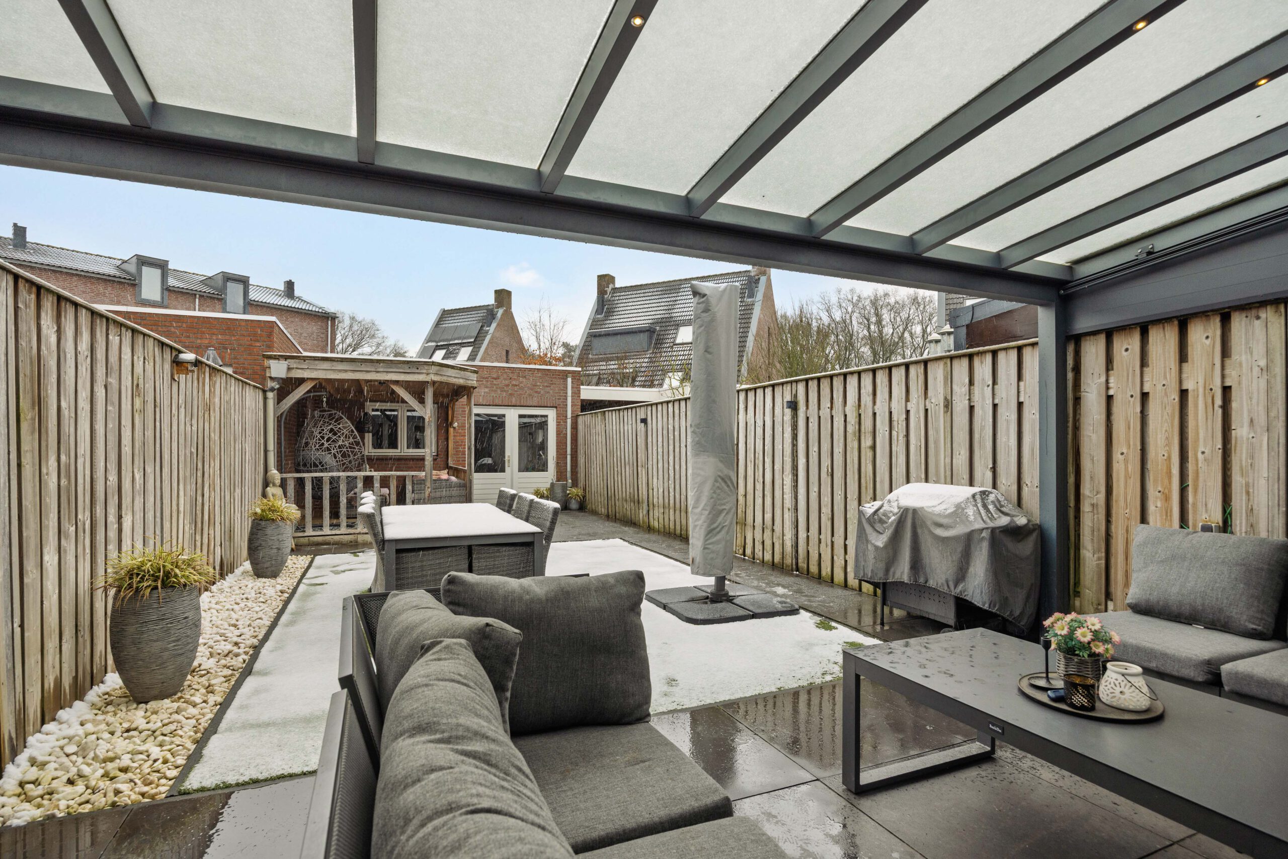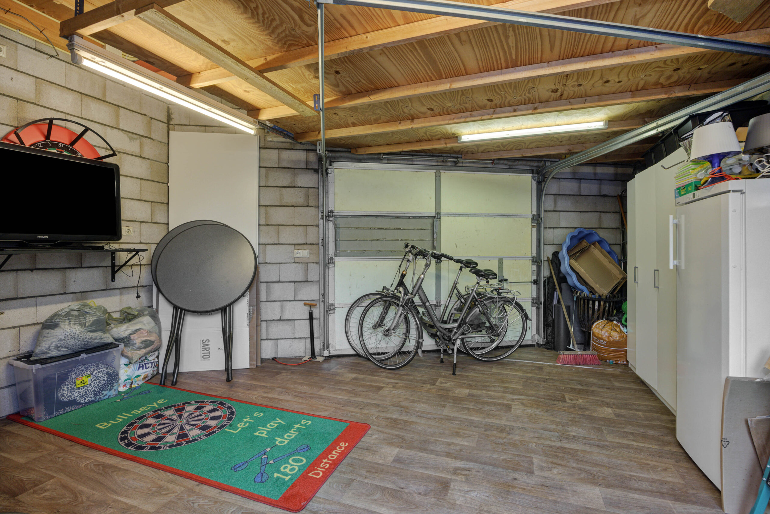 De tuin ligt op het noordoosten en is onderhoudsvriendelijk aangelegd. Achterin staat een grote, multifunctionele schuur met garagedeur: ideaal als mancave, motorstalling, klusruimte of gewoon een royale opslagplek. De houten overkapping maakt het buitenleven extra comfortabel; hier zit je heerlijk beschut, ook wanneer het zonnetje wat minder meewerkt.