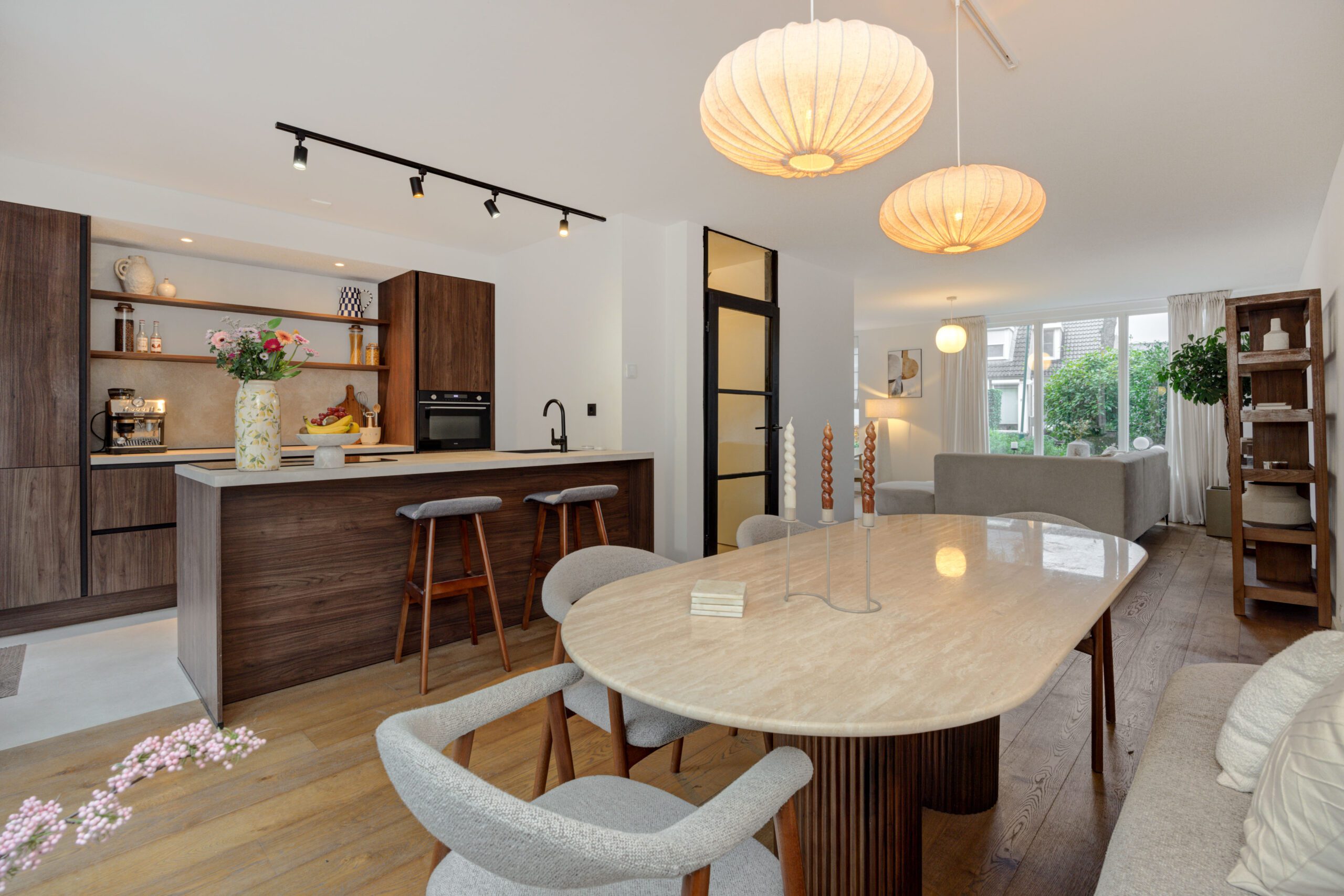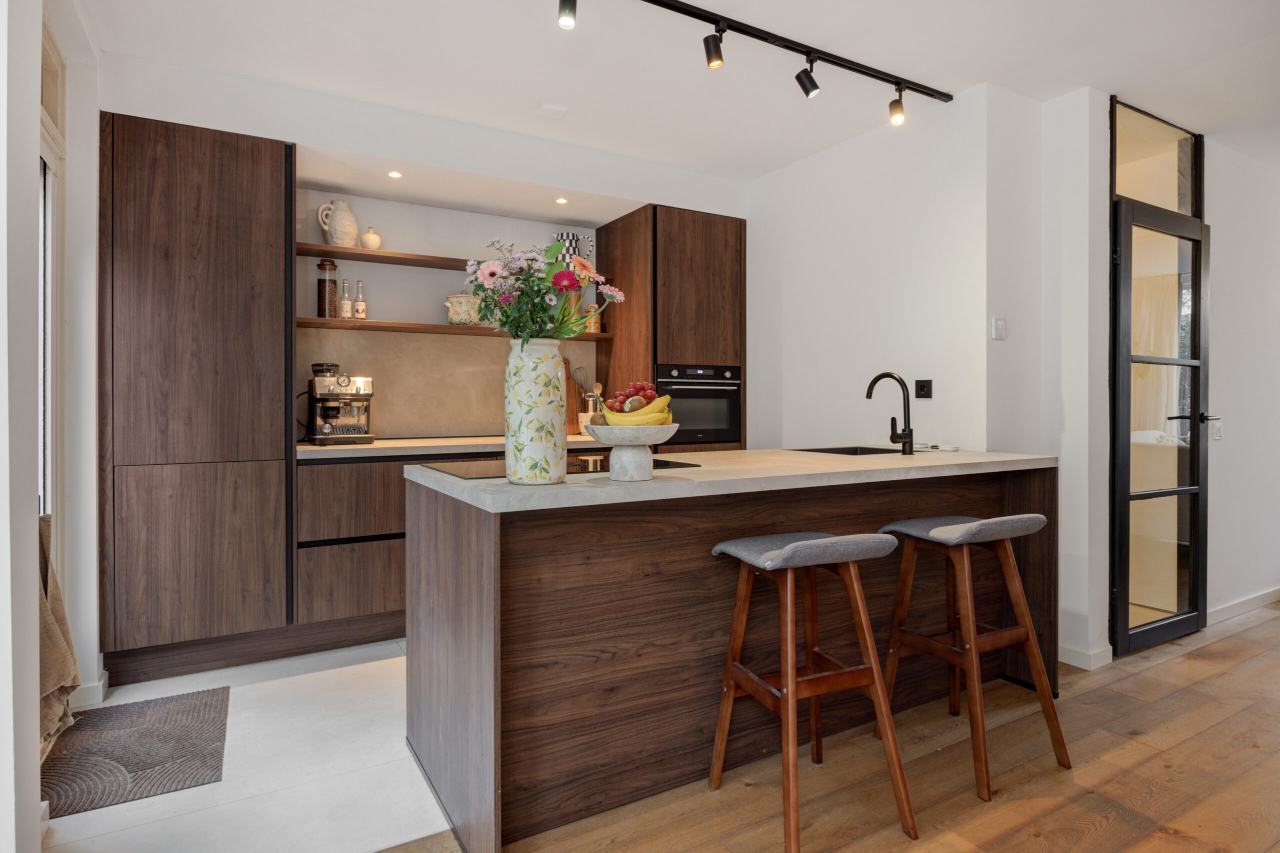 – Grote open keuken met schiereiland en diverse inbouwapparatuur (2025).