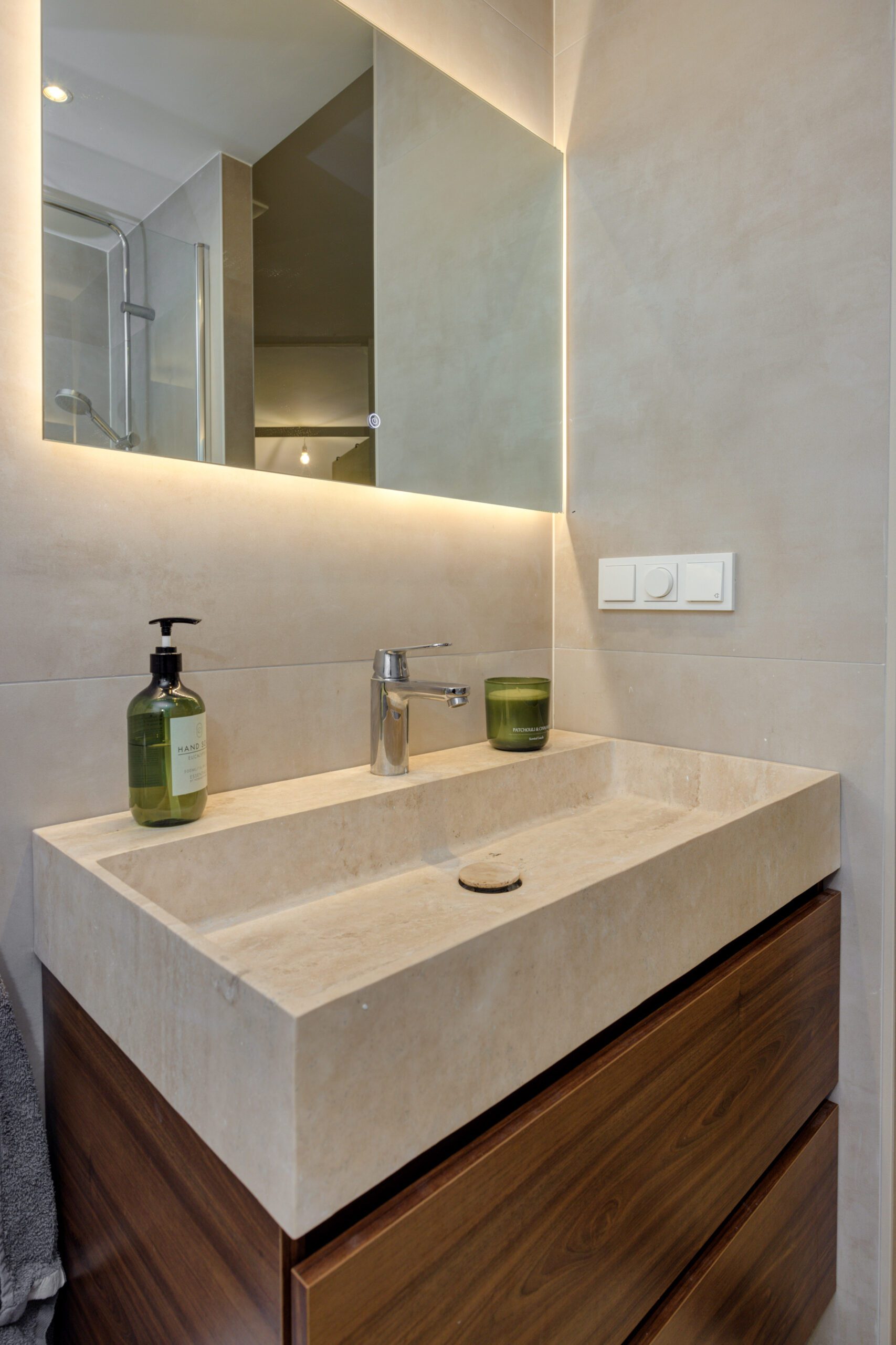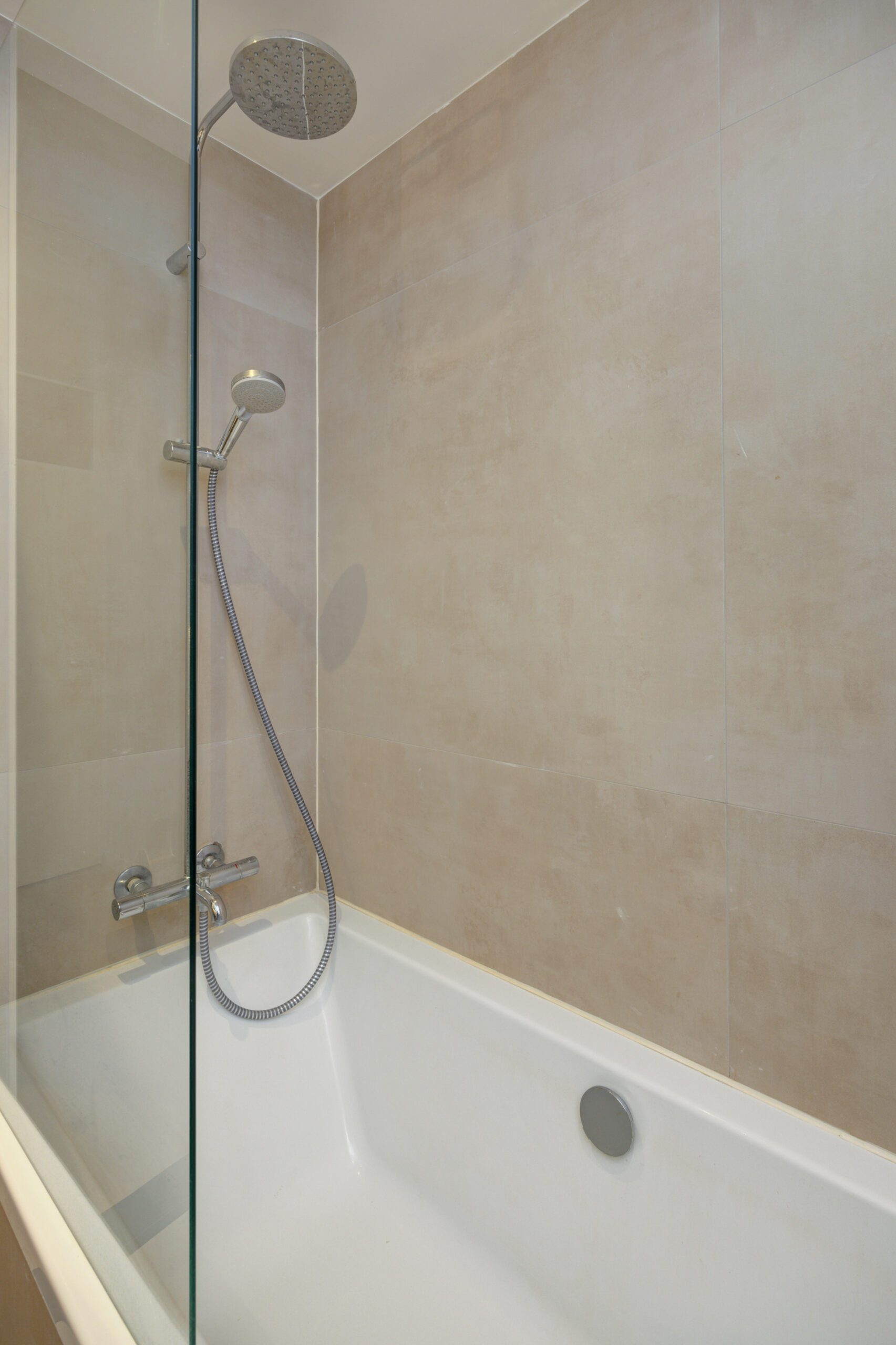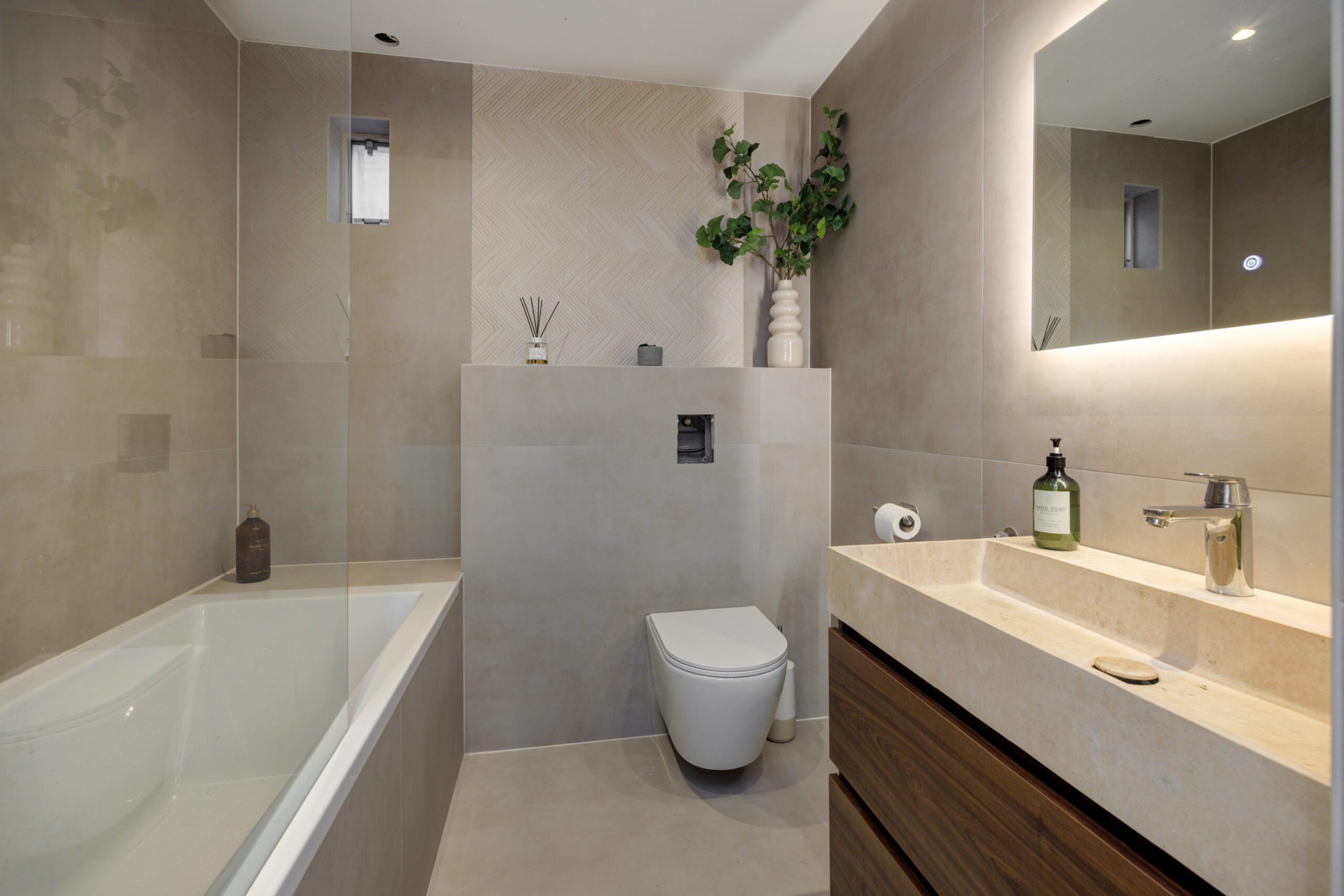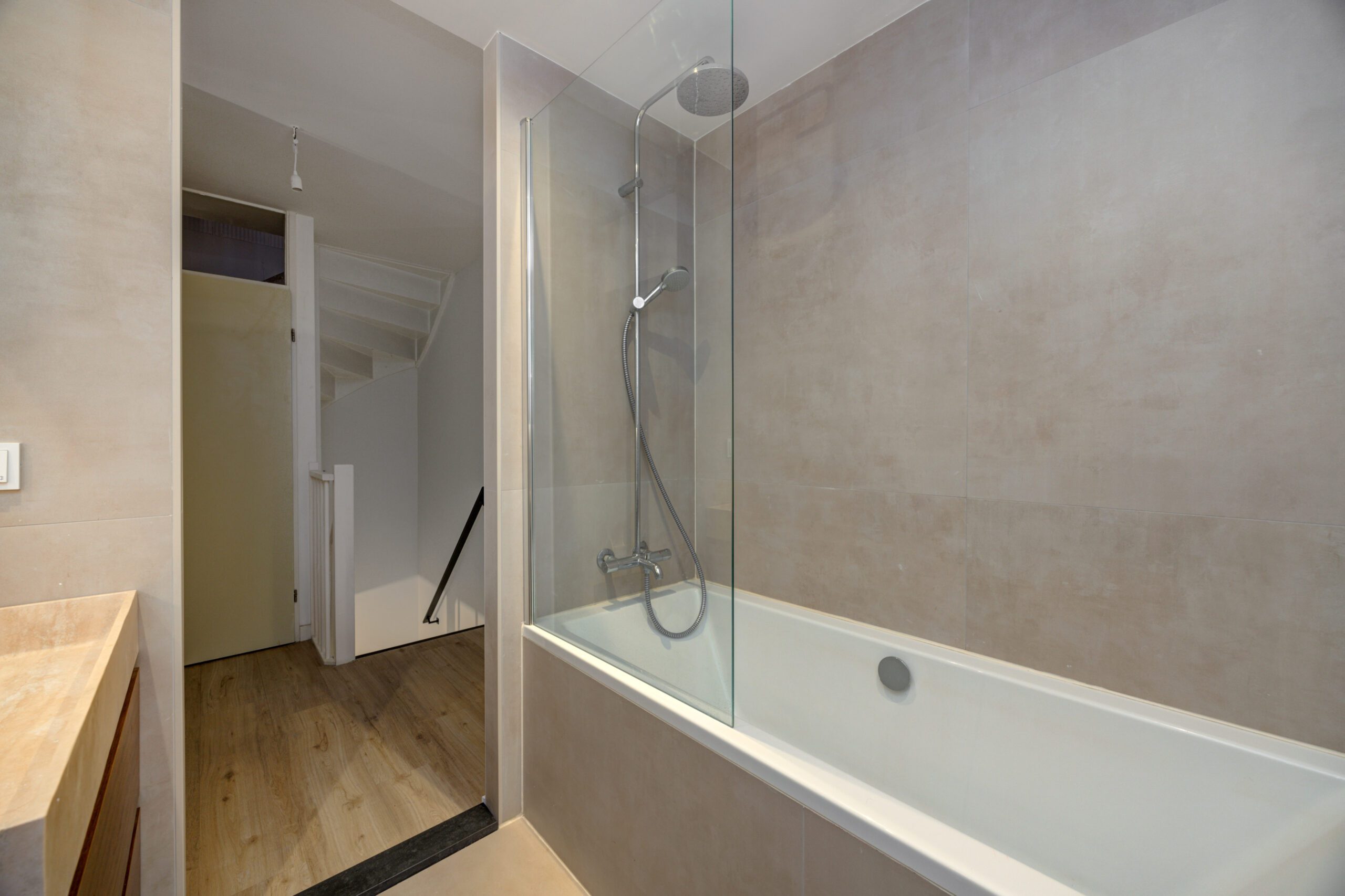 – Nieuwe badkamer (2025) met toilet, ligbad met douche, wastafelmeubel en vloerverwarming.
