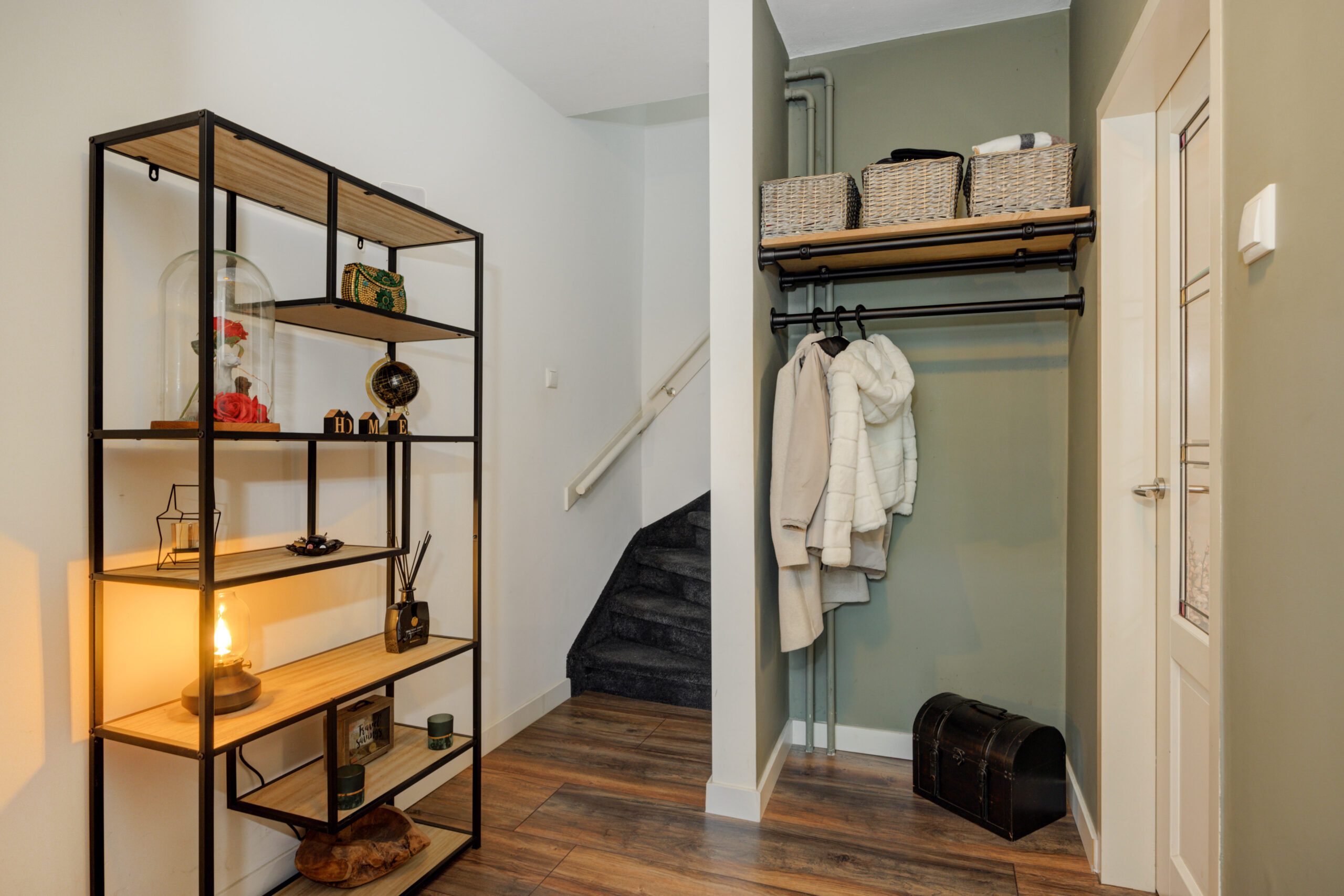 – Royale hal met meterkast, garderoberuimte en modern toilet.