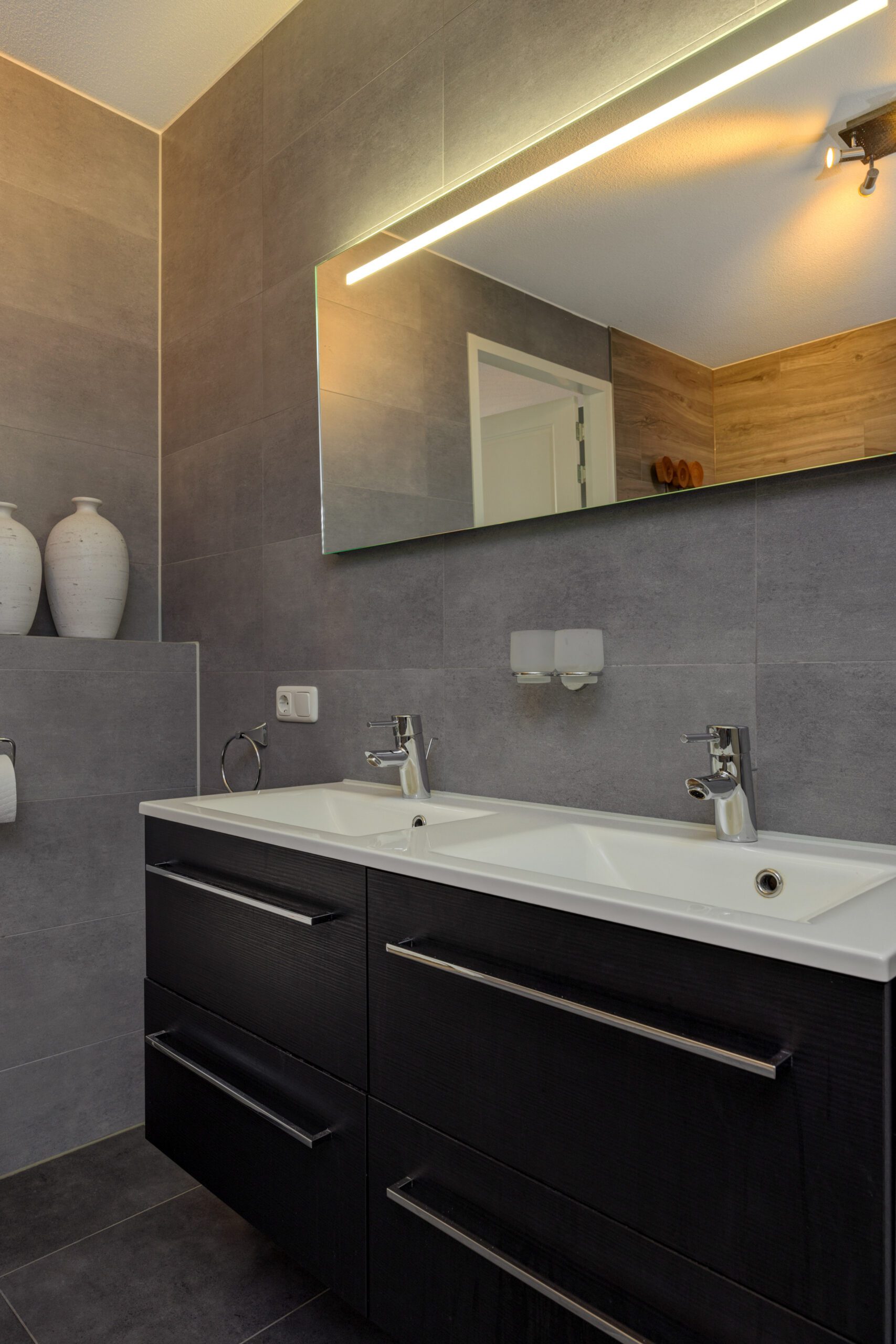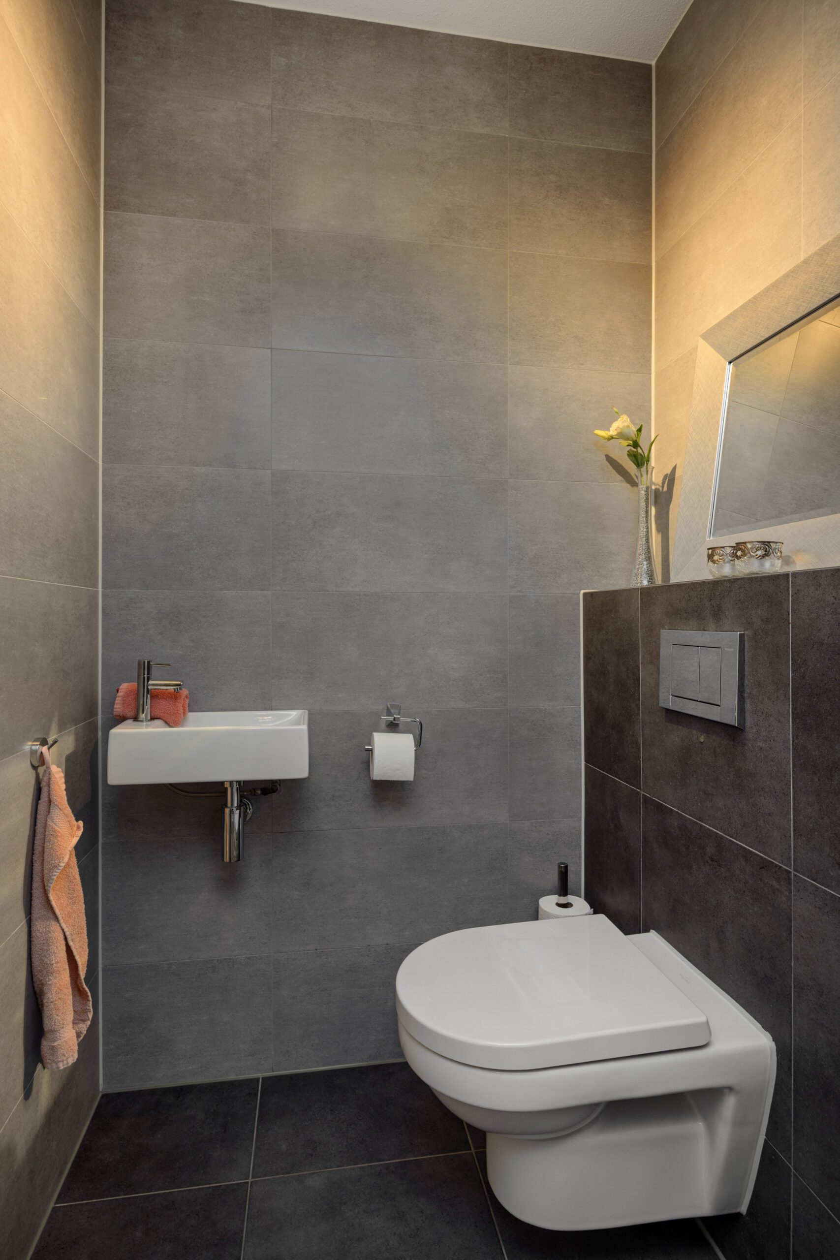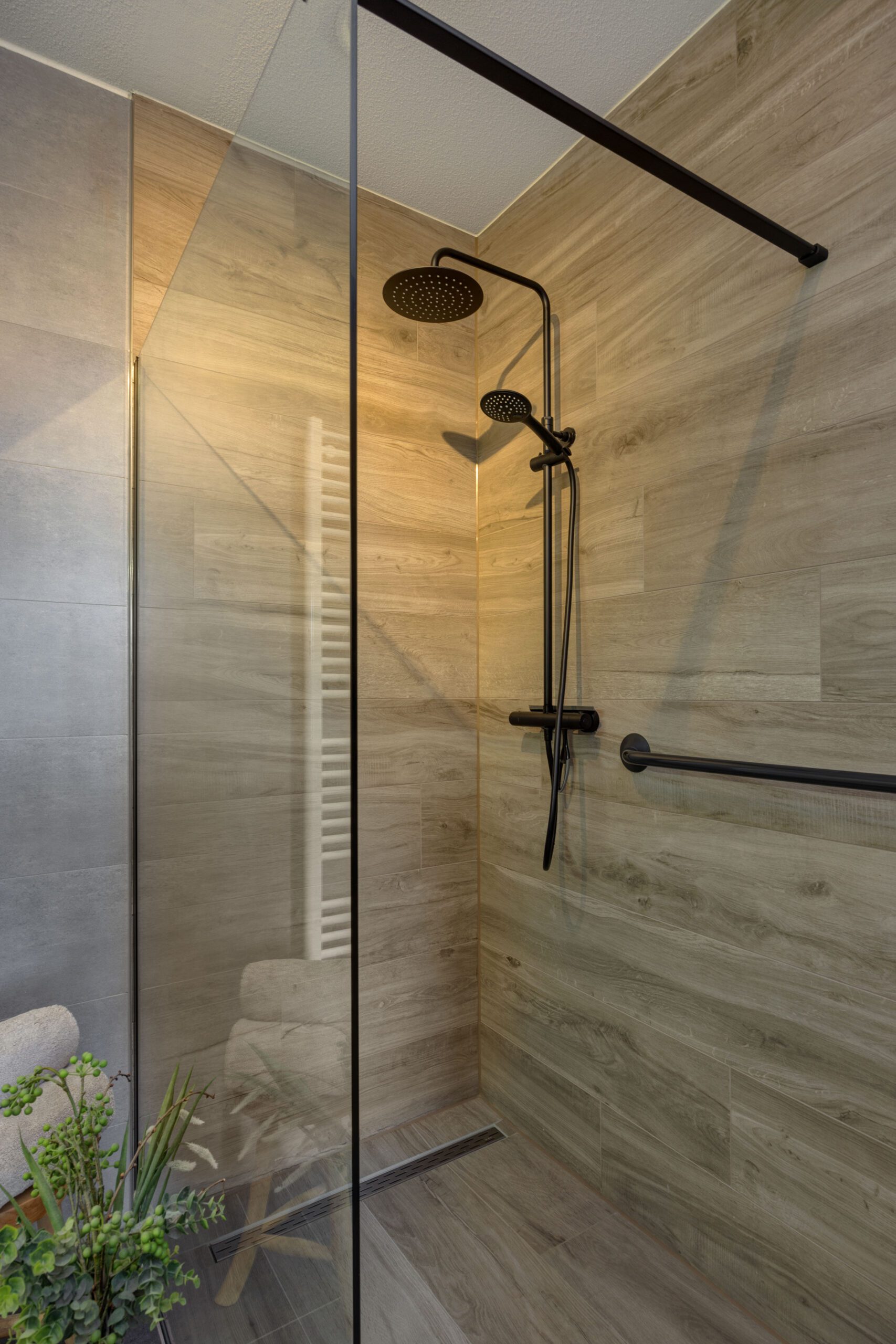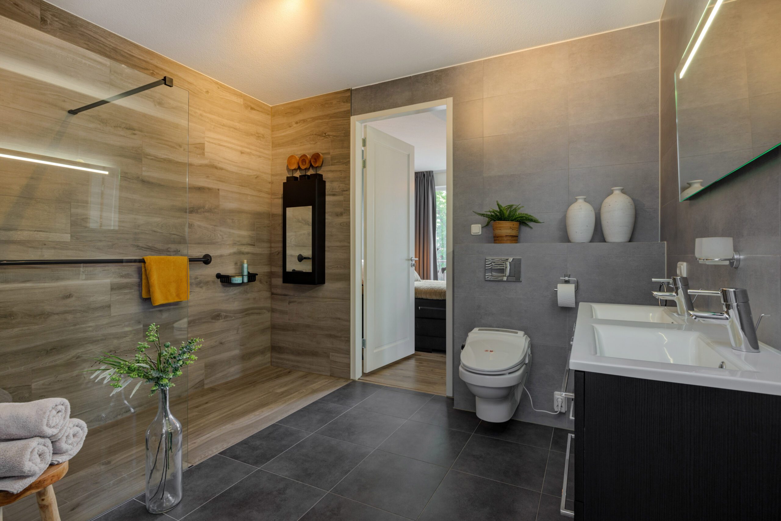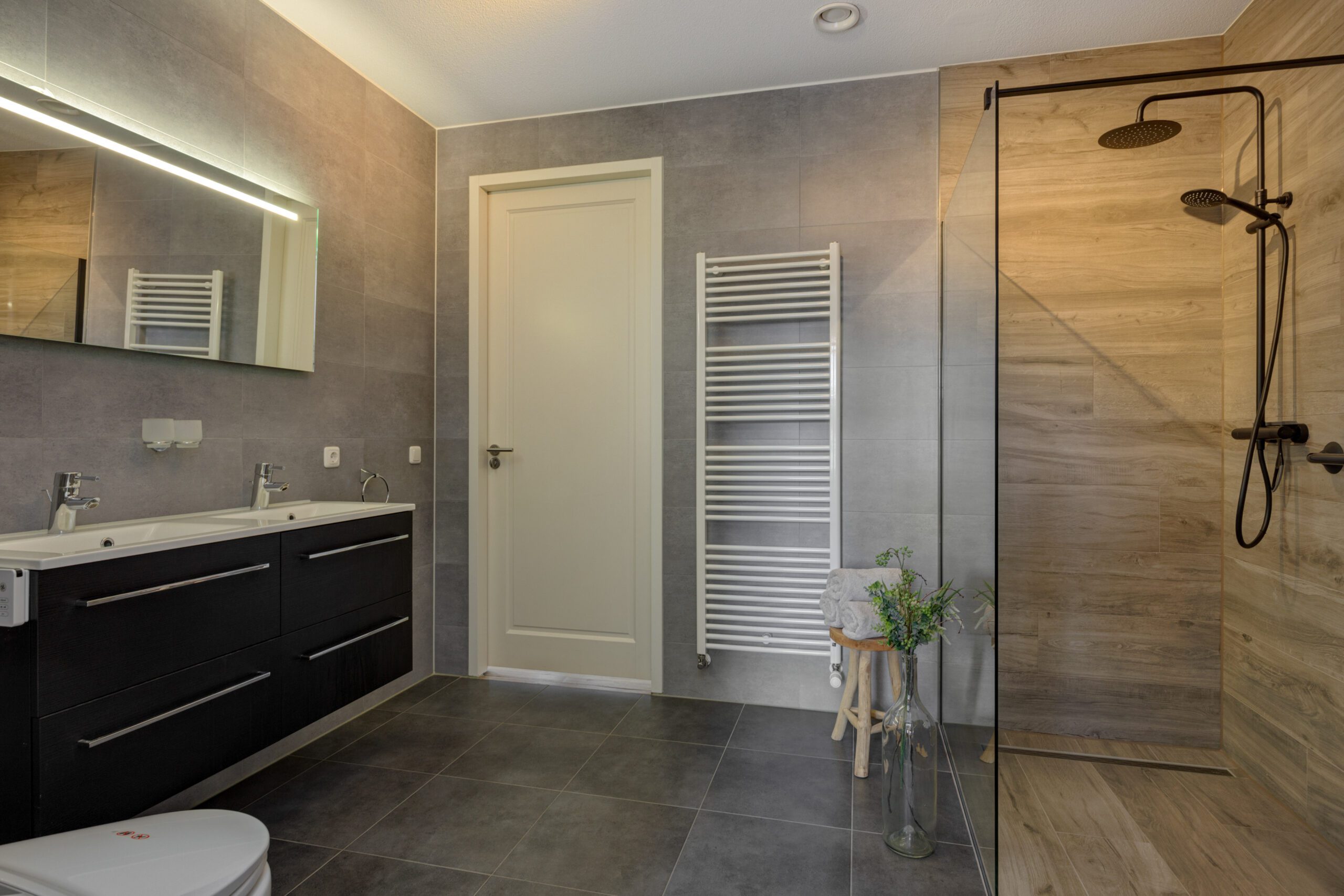 – Luxe badkamer met 2e toilet, inloopdouche, wastafel en vloerverwarming.