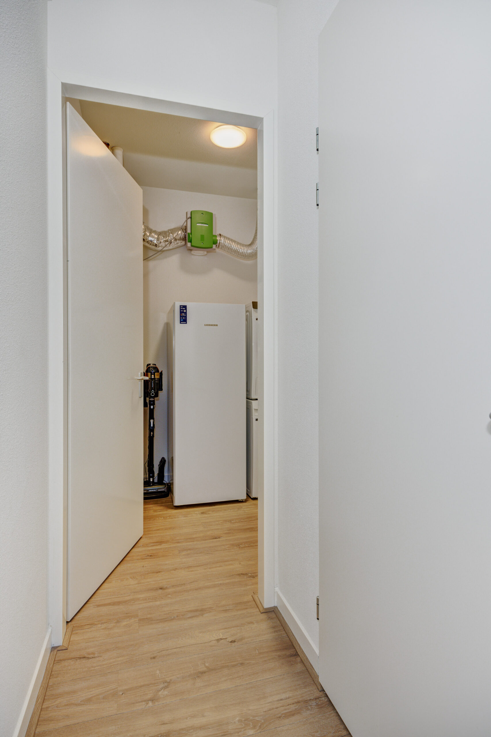 – Bergruimte met aansluitingen voor de wasmachine en de droger.