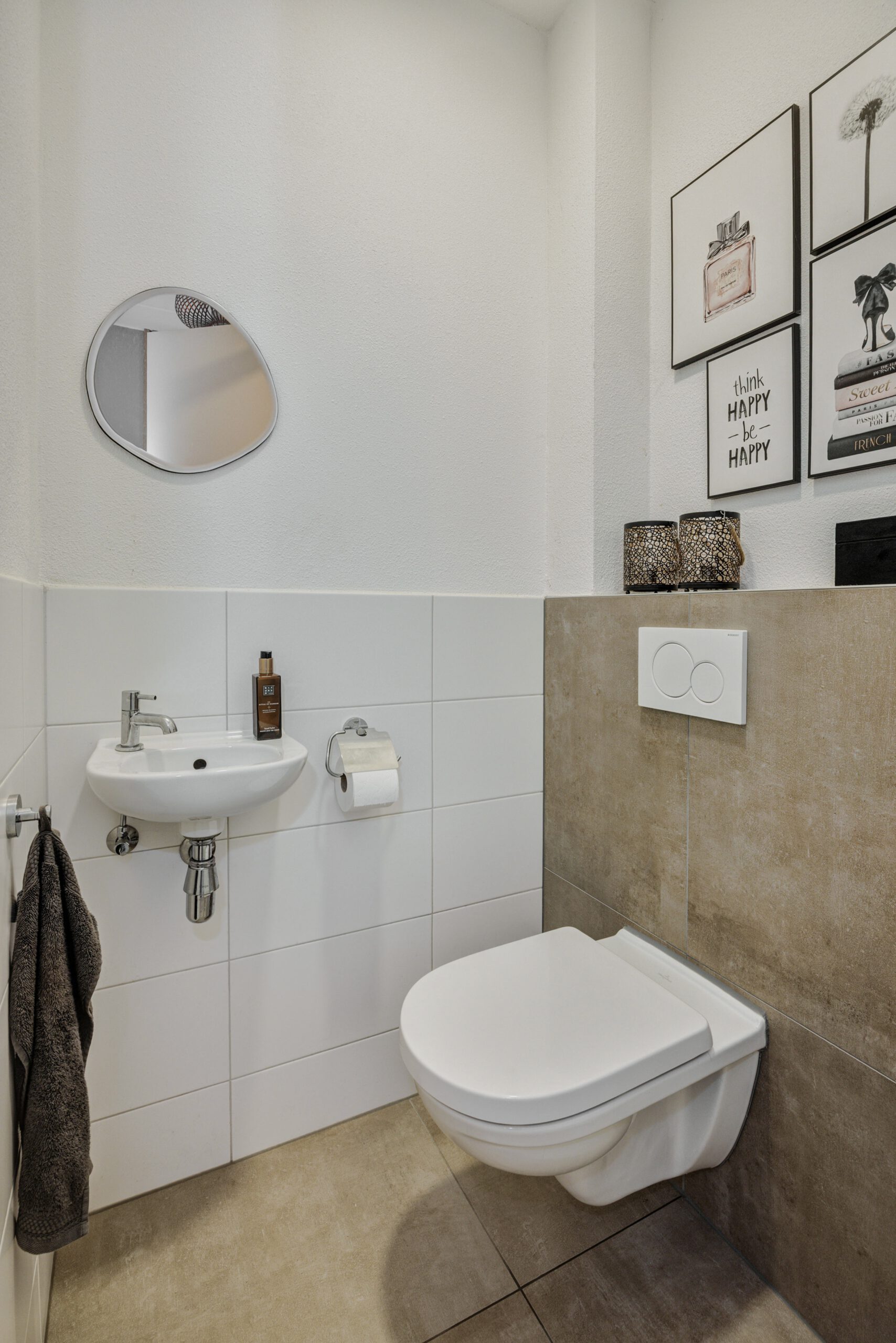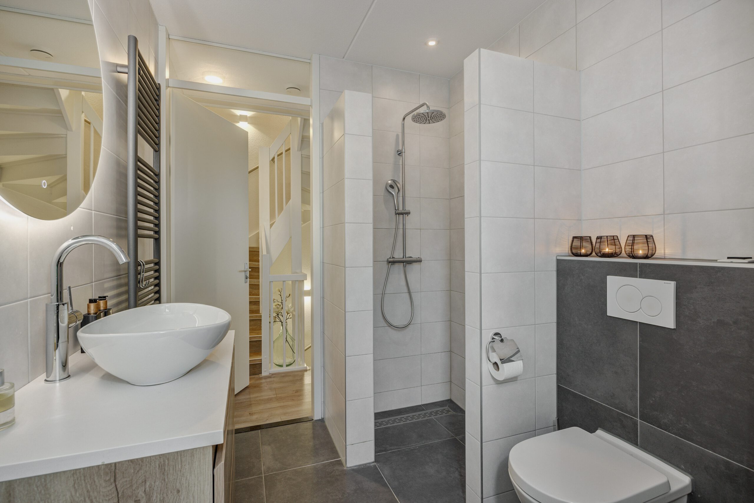– Tweede badkamer met toilet, douche en wastafelmeubel.