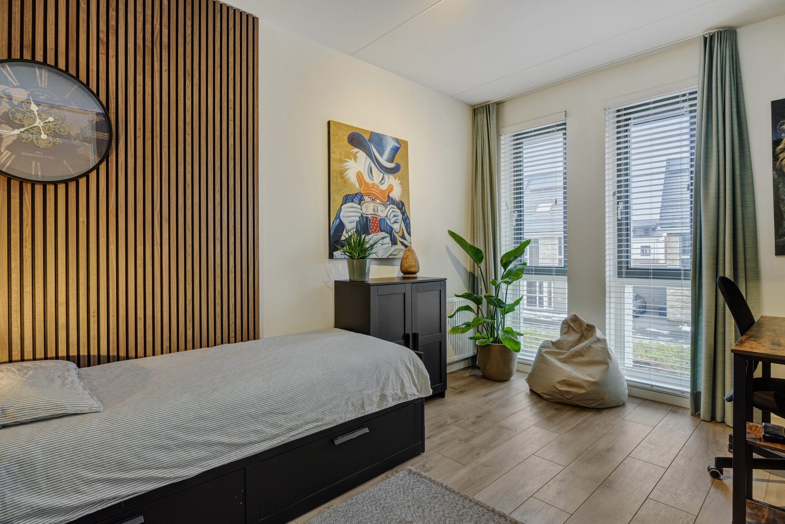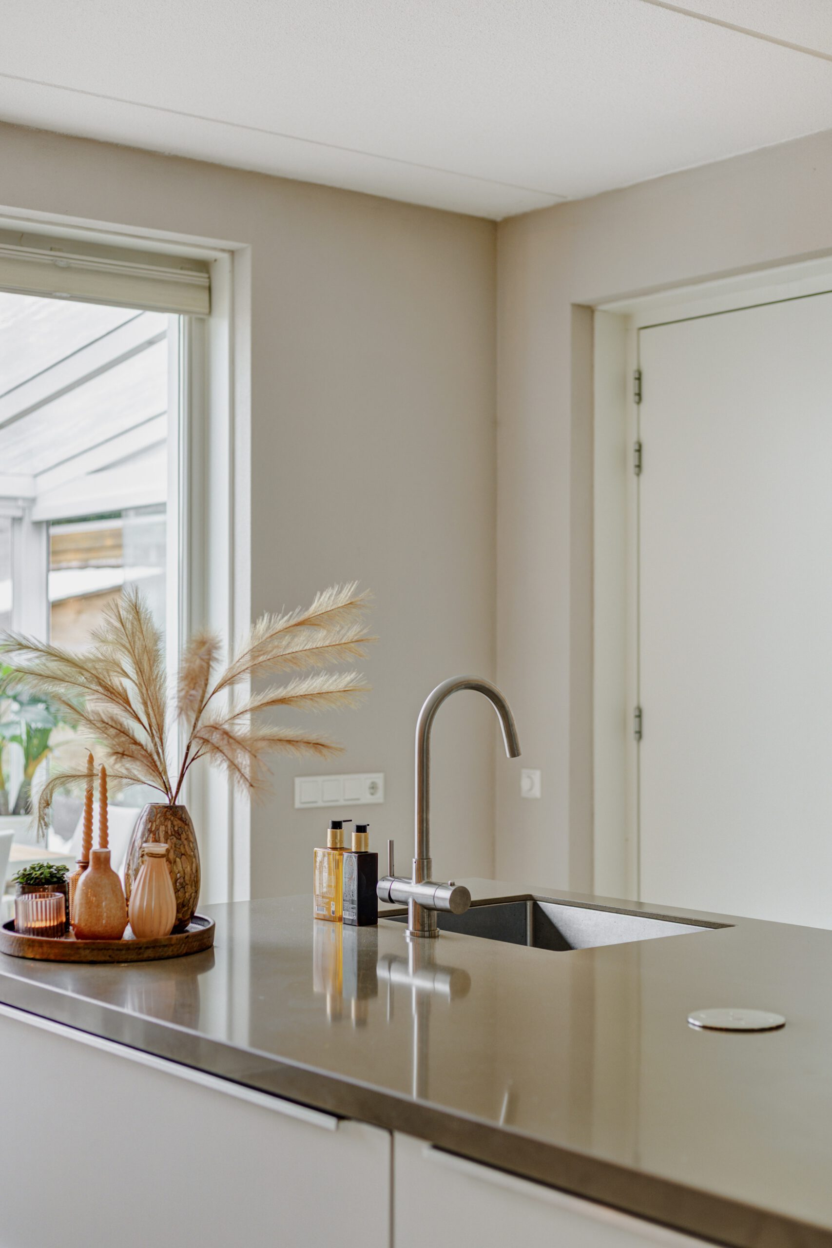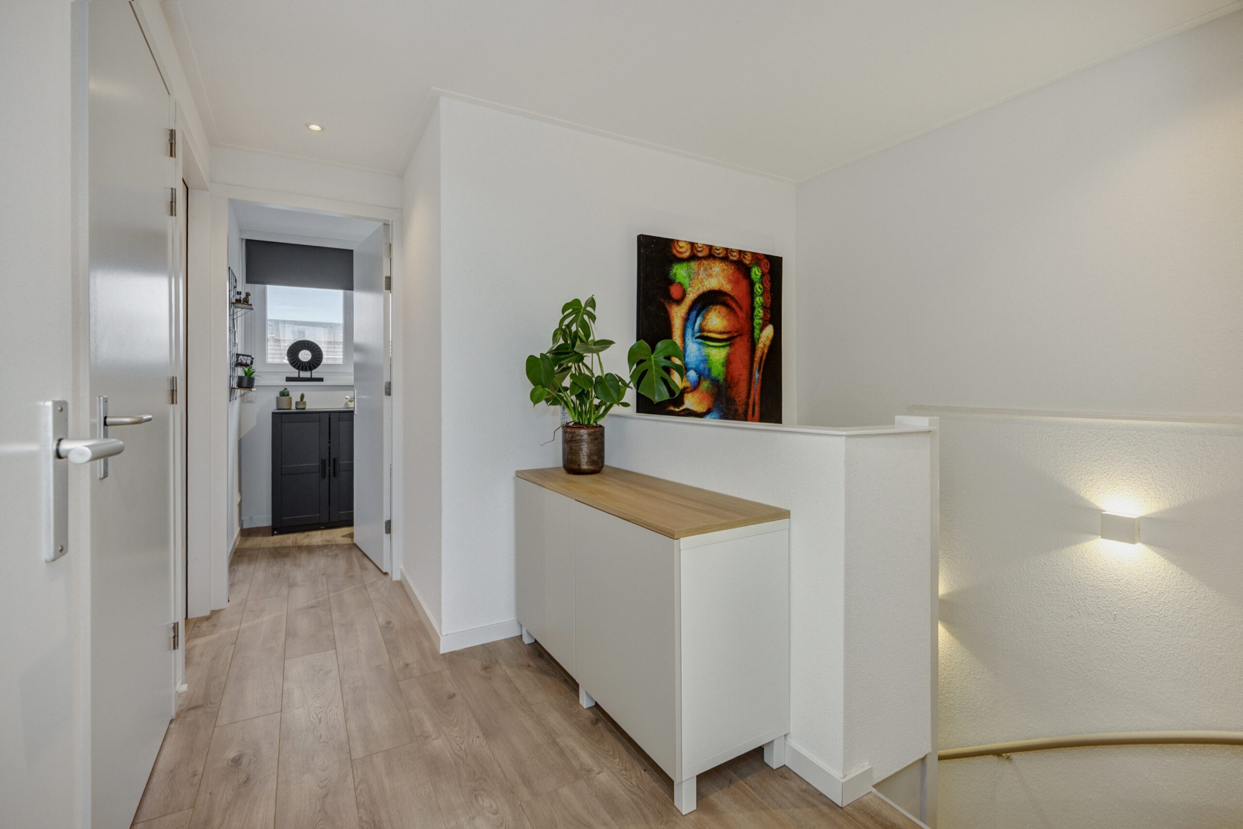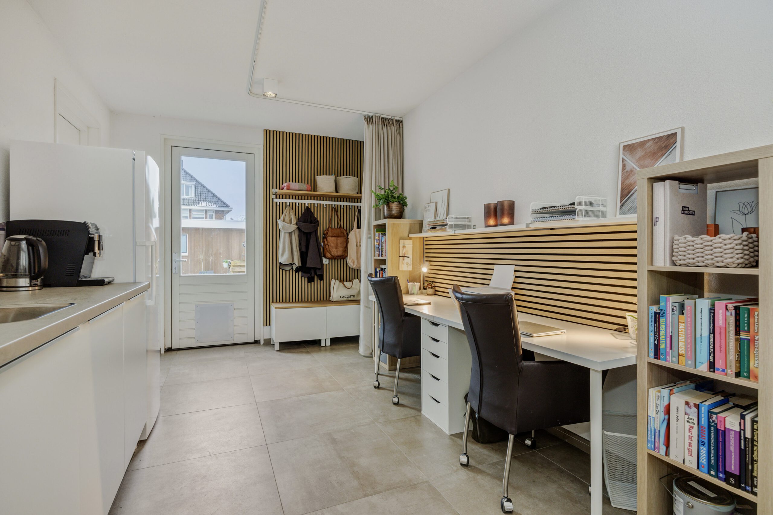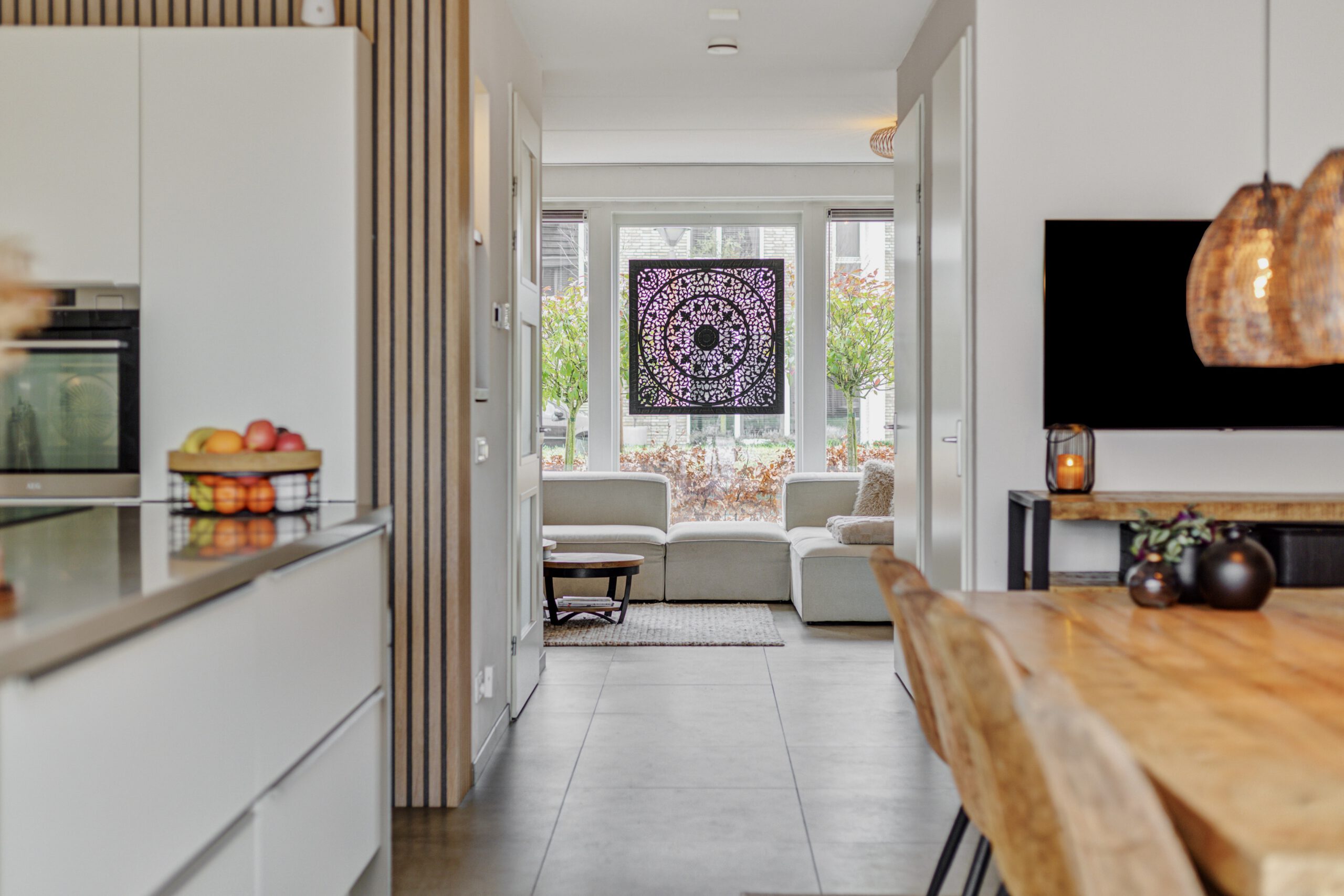 Bij binnenkomst zijn het de ruimtes en het hoge afwerkingsniveau die direct de aandacht trekken. De woonkamer is heerlijk ruim en biedt plaats aan een comfortabele zithoek. Aansluitend bevindt zich de woonkeuken, die dankzij de tuinkamer aan de achterzijde een prachtige lichtinval heeft. Dit is echt een fijne plek voor lange diners en gezellig samenzijn. De keuken is luxe uitgevoerd en beschikt over een kookeiland, een kastenwand en een praktische provisiekast. De gehele begane grond is voorzien van vloerverwarming, wat zorgt voor extra comfort. De voormalige garage is inpandig bereikbaar en momenteel in gebruik als multifunctionele ruimte. Deze ruimte leent zich uitstekend als kantoor, speelkamer of hobbyruimte, maar kan desgewenst ook weer eenvoudig als garage worden gebruikt.
