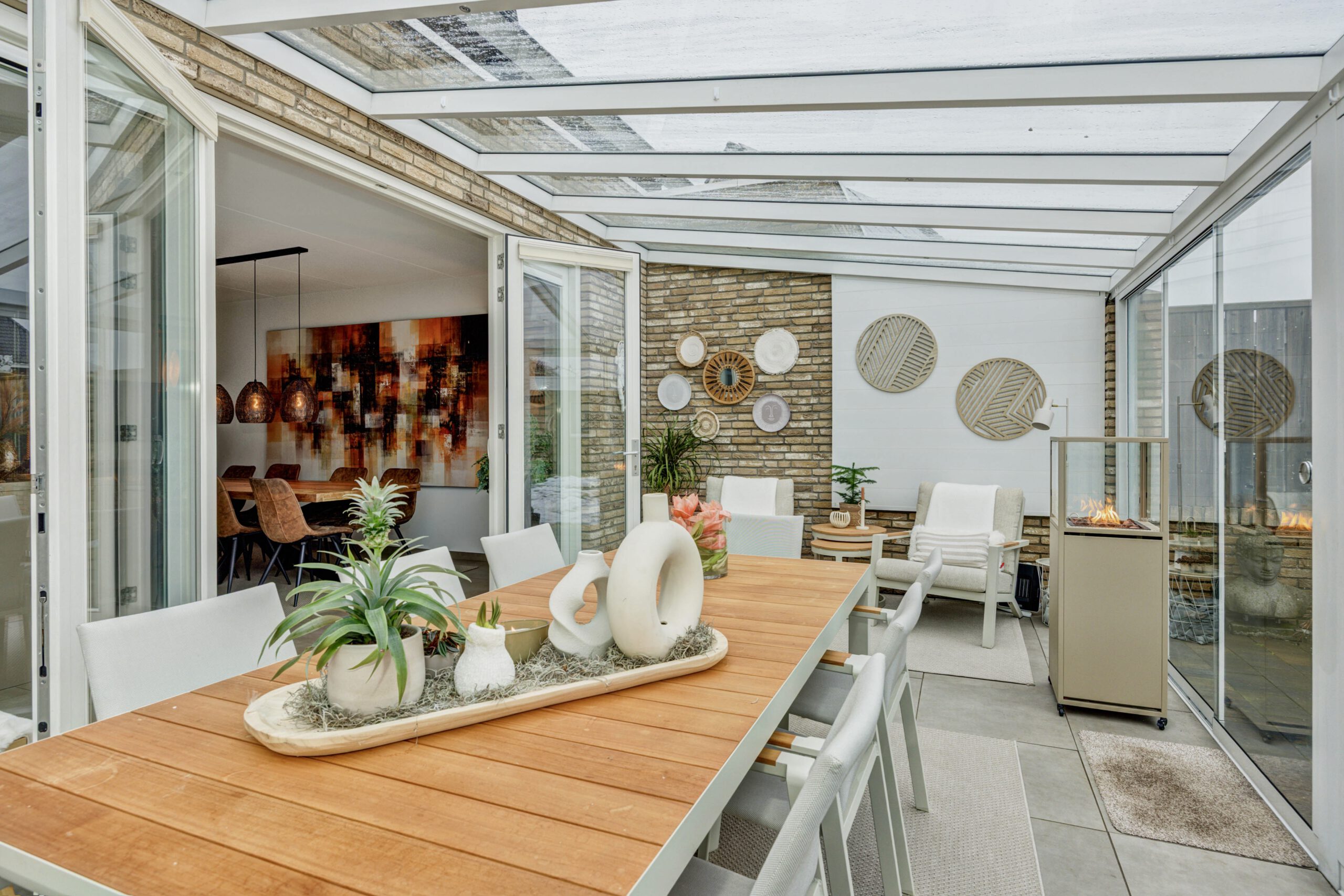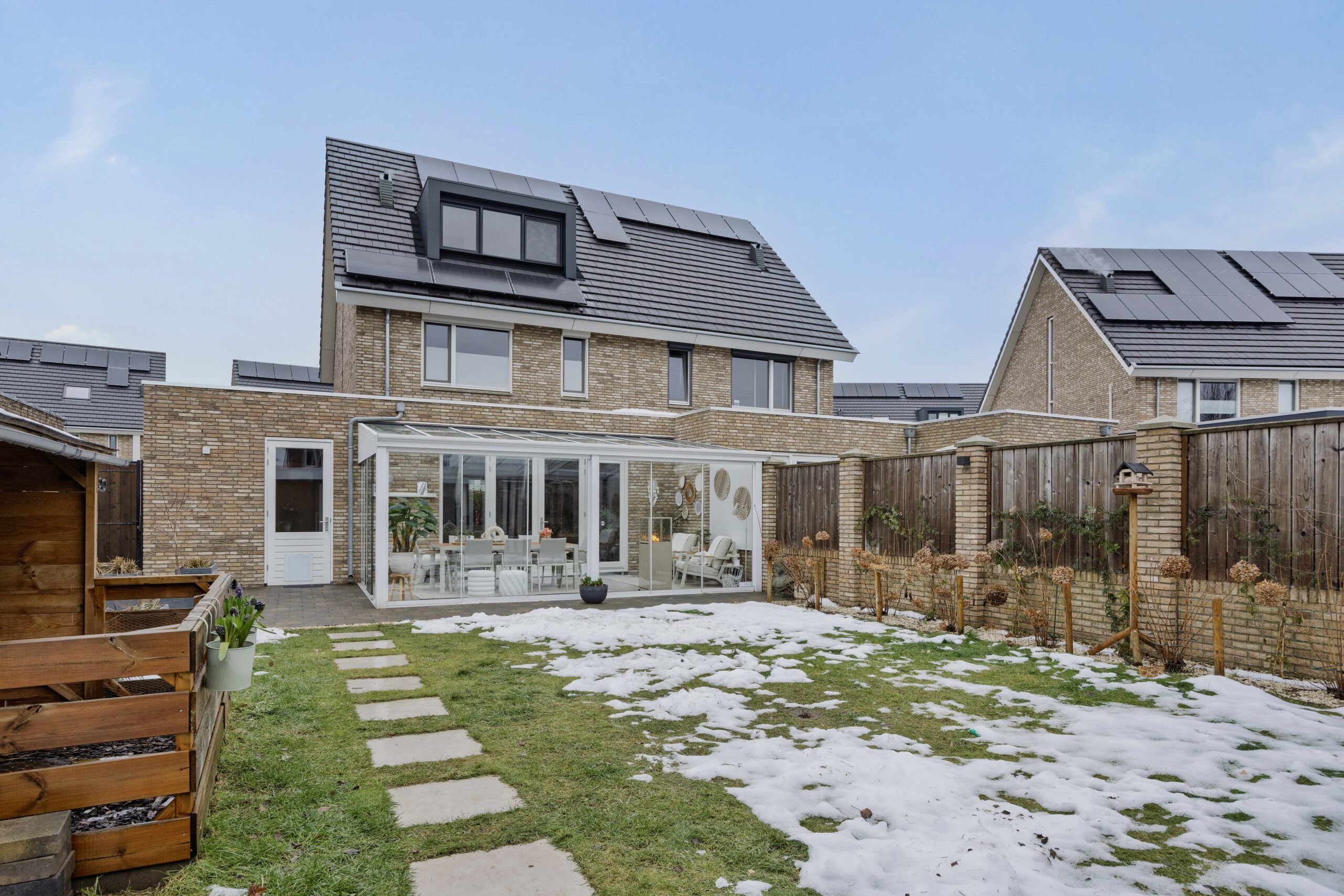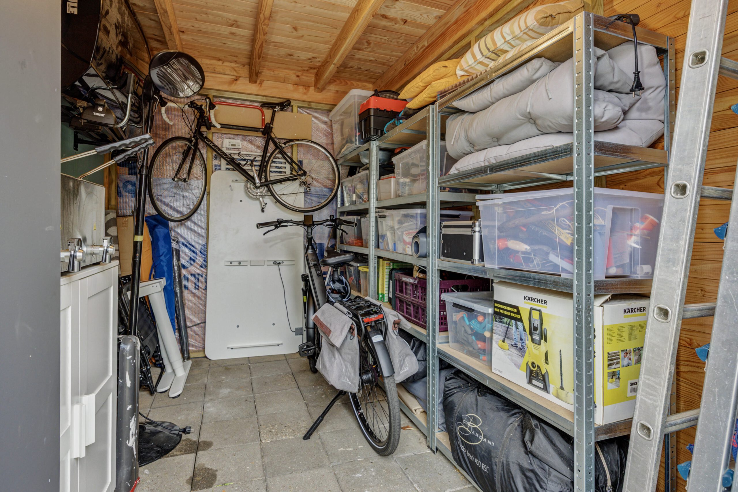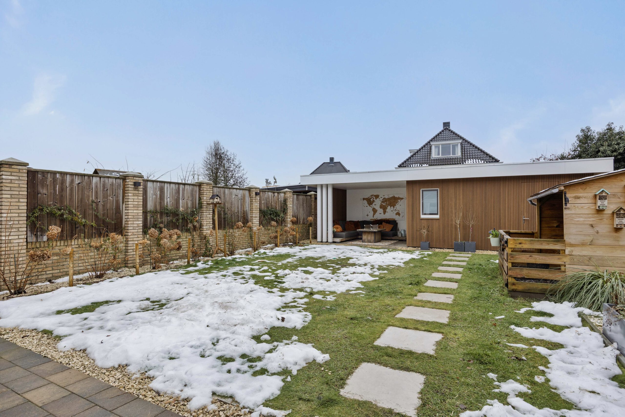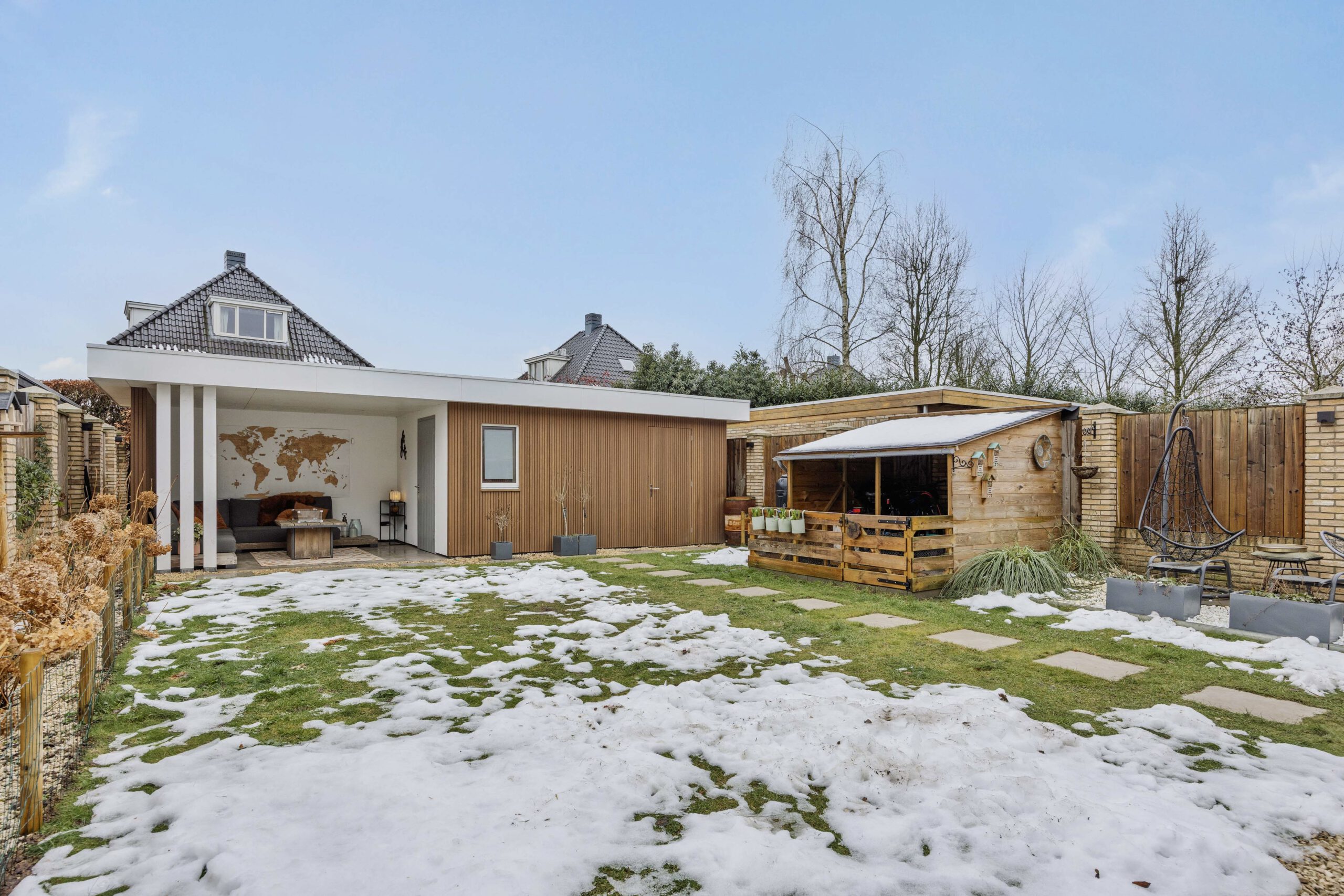 Het buitenleven is hier minstens zo aantrekkelijk. De royale achtertuin is gunstig gelegen op het zuiden en biedt de hele dag door zon. Door de forse afmetingen is er meer dan genoeg ruimte voor een zwembad, trampoline, speeltoestel of zelfs alle drie. Achter in de tuin is een fijne terrasoverkapping geplaatst. Aangrenzend ligt een extra ruimte die momenteel is ingericht als slaapkamer, maar ook uitstekend geschikt is als kantoor of praktijkruimte aan huis. Verder is er nog een separate berging voor fietsen en tuingereedschap.