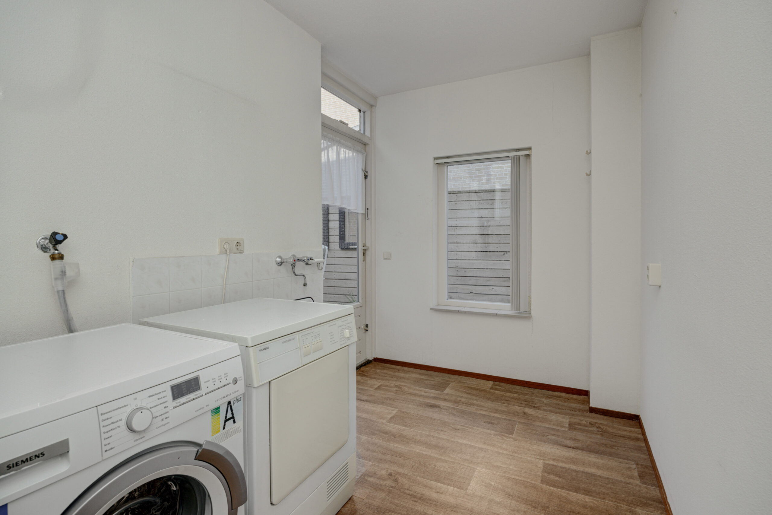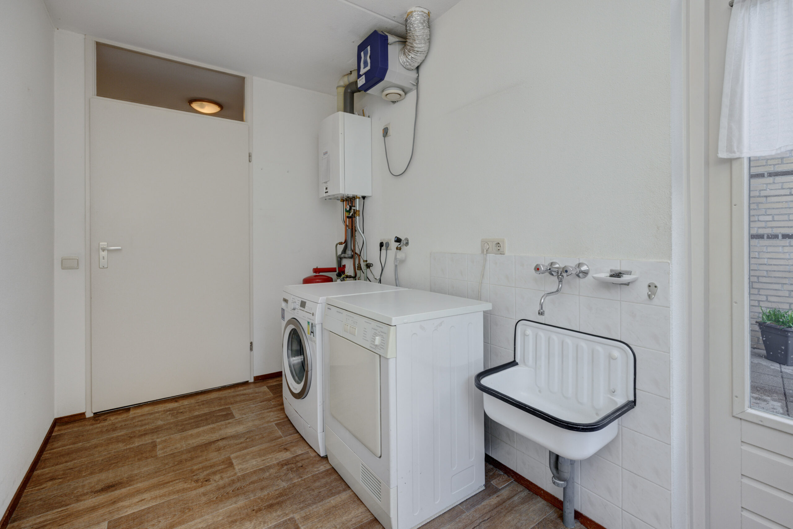 – Praktische bijkeuken met aansluitingen voor de wasmachine.
