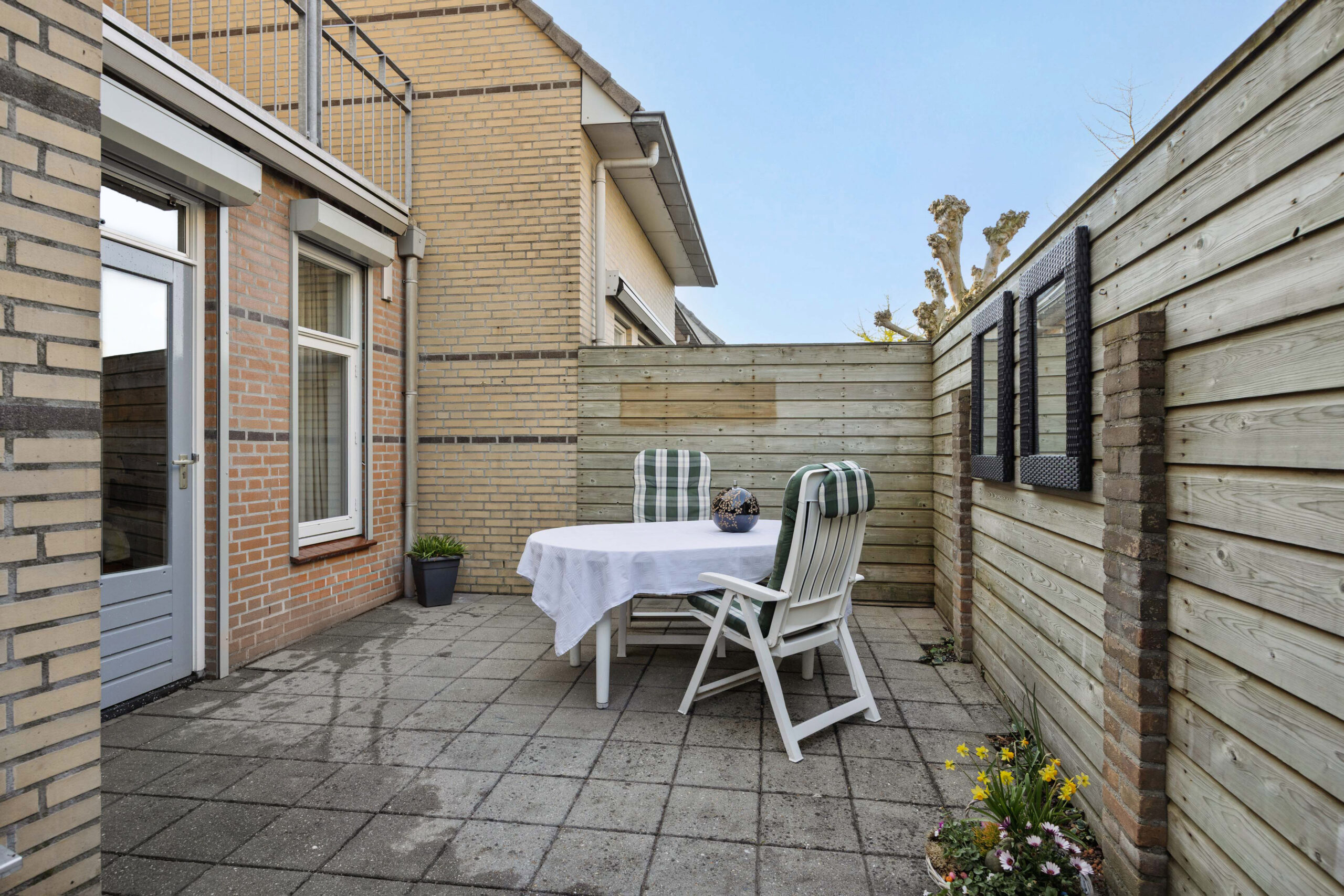 – Onderhoudsvriendelijk tuintje op het zuiden met veel privacy.