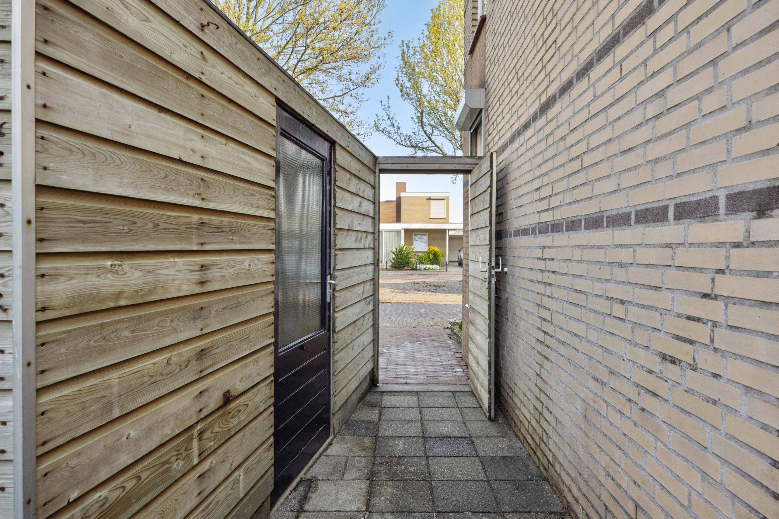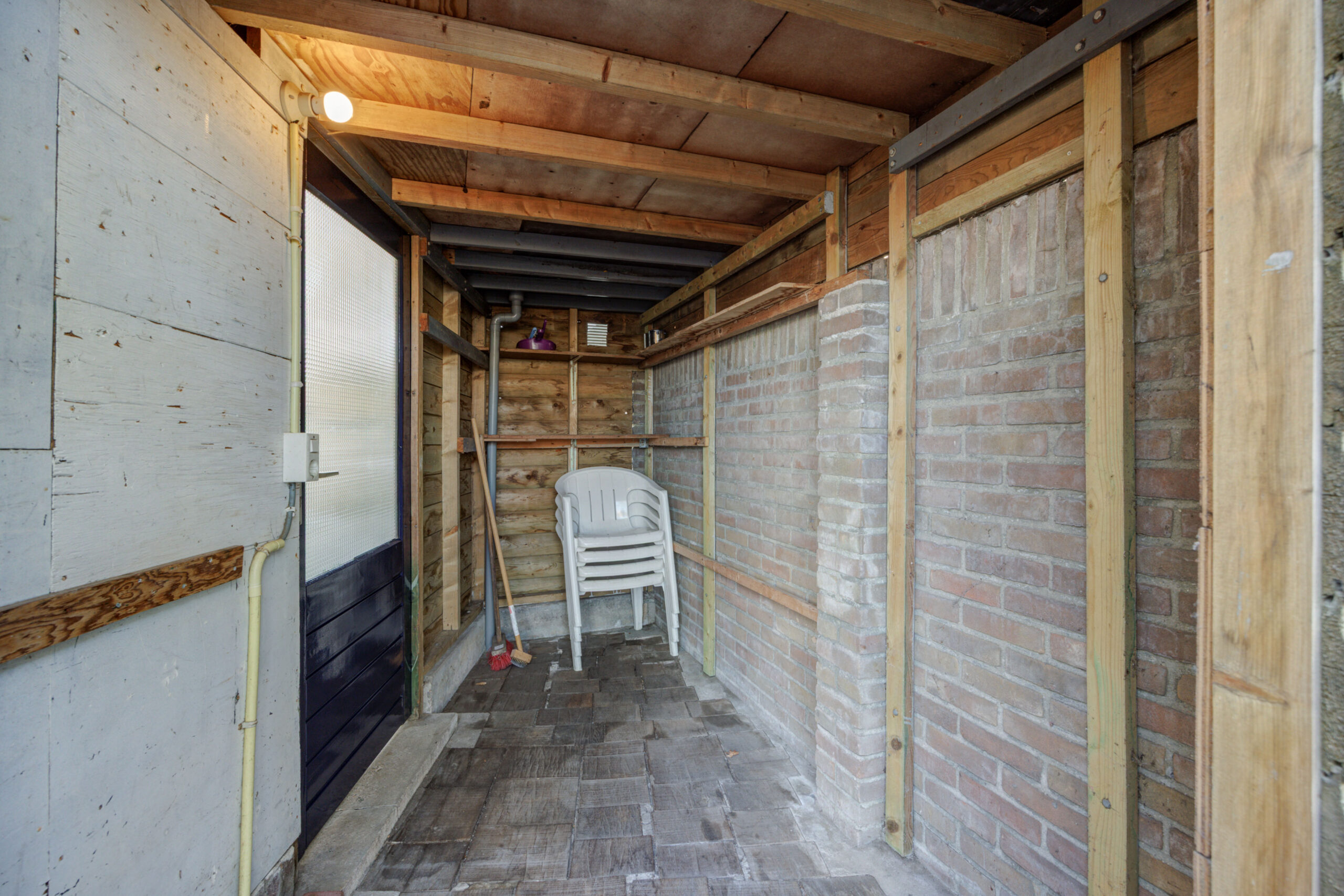 – Houten berging voor de fietsen.