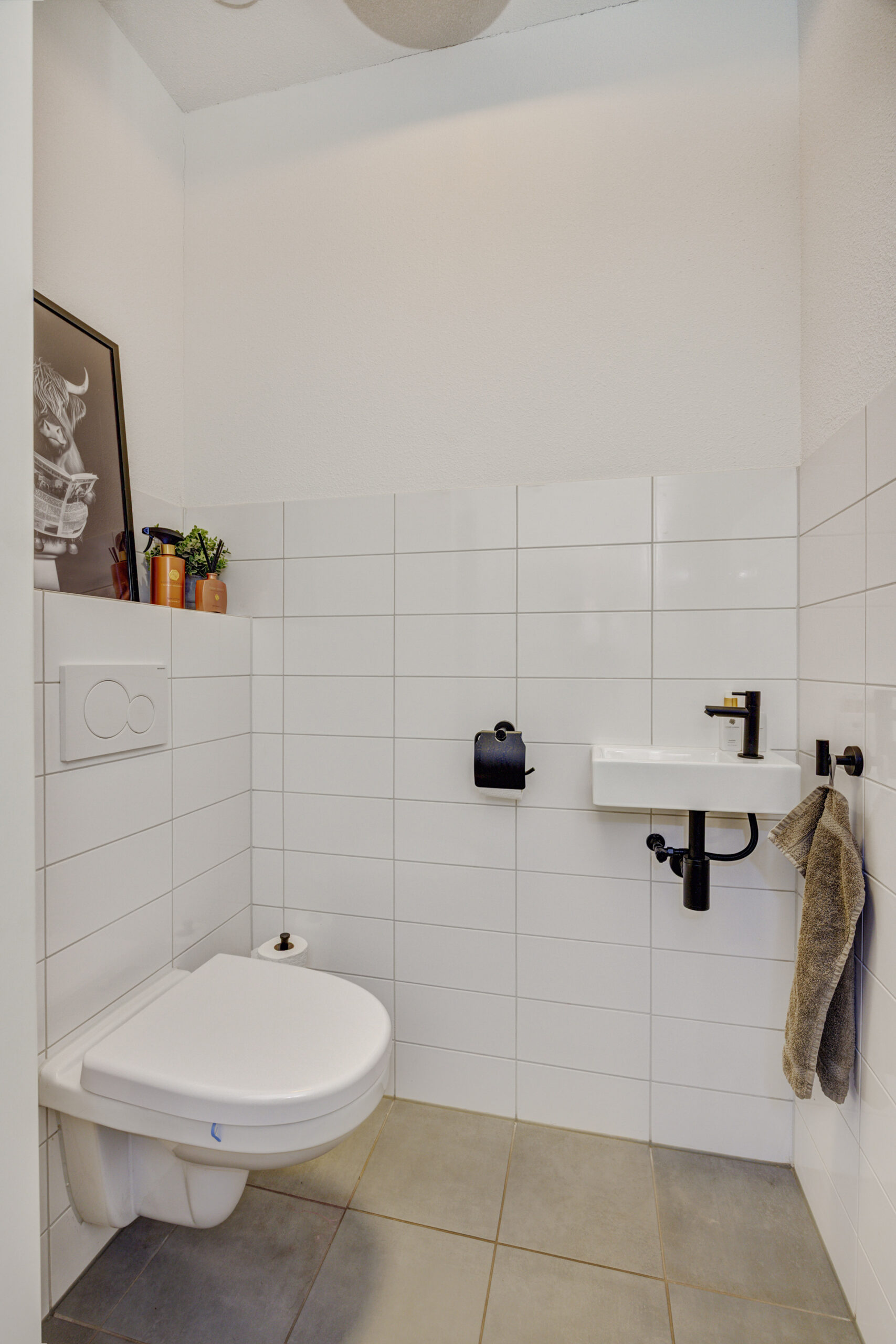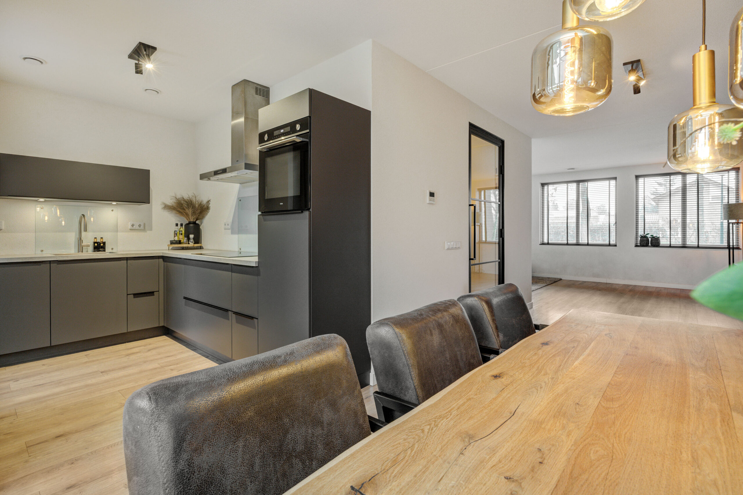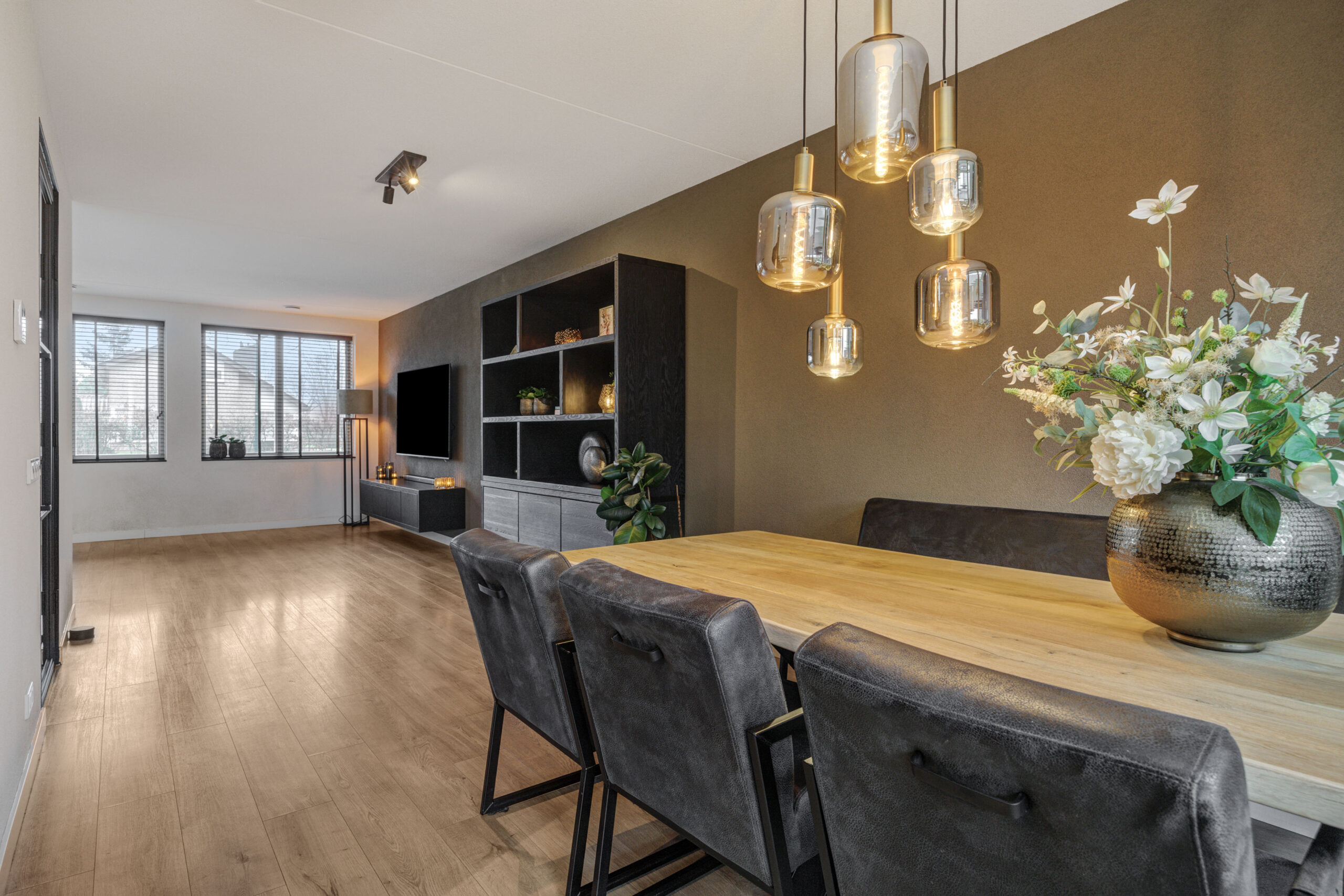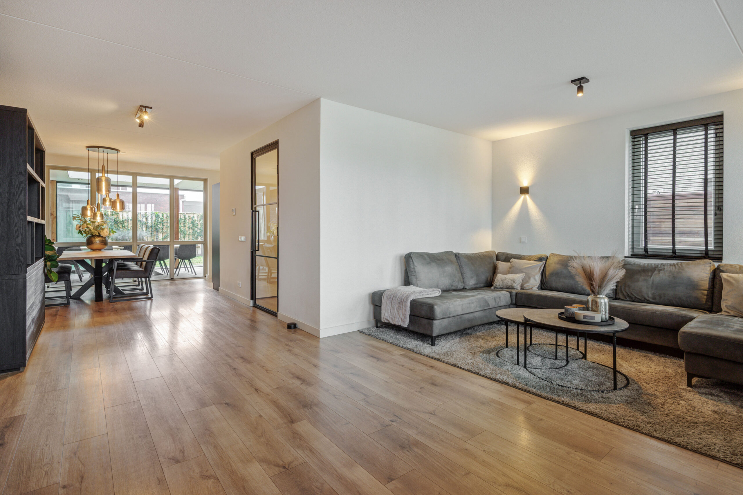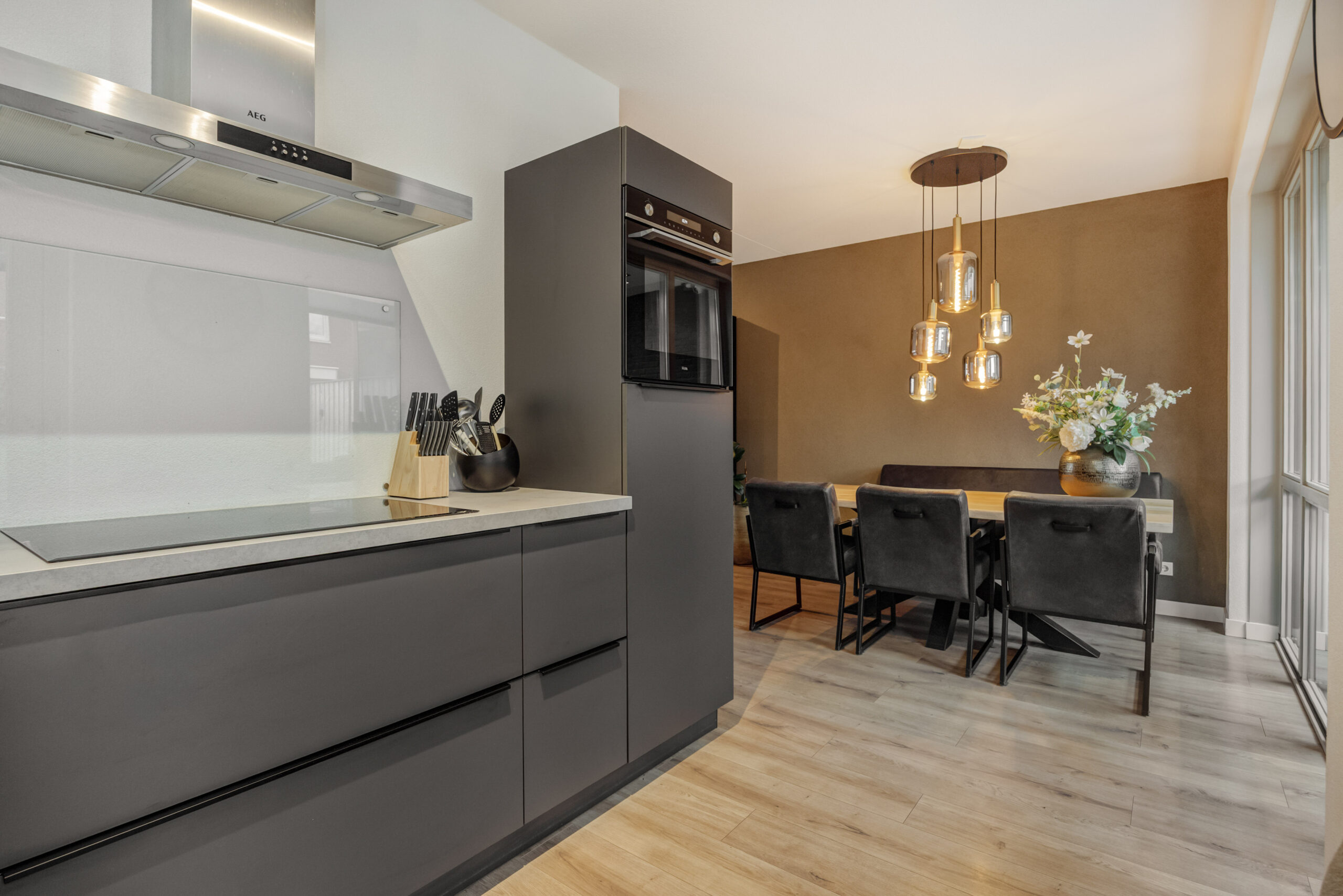 Binnen ervaar je direct hoe prettig het huis is opgezet. De begane grond beschikt over een flinke entree met toilet, berging en garderoberuimte. Vanuit hier loop je door naar de royale woonkamer: een fijne leefruimte met volop plek voor een comfortabele zithoek en een grote eettafel. De keuken ligt aan de achterzijde en sluit mooi aan op de woonkamer. Dankzij de directe verbinding met de tuin en de overkapping lopen binnen en buiten hier moeiteloos in elkaar over. De gehele begane grond is bovendien voorzien van vloerverwarming, wat het wooncomfort compleet maakt.