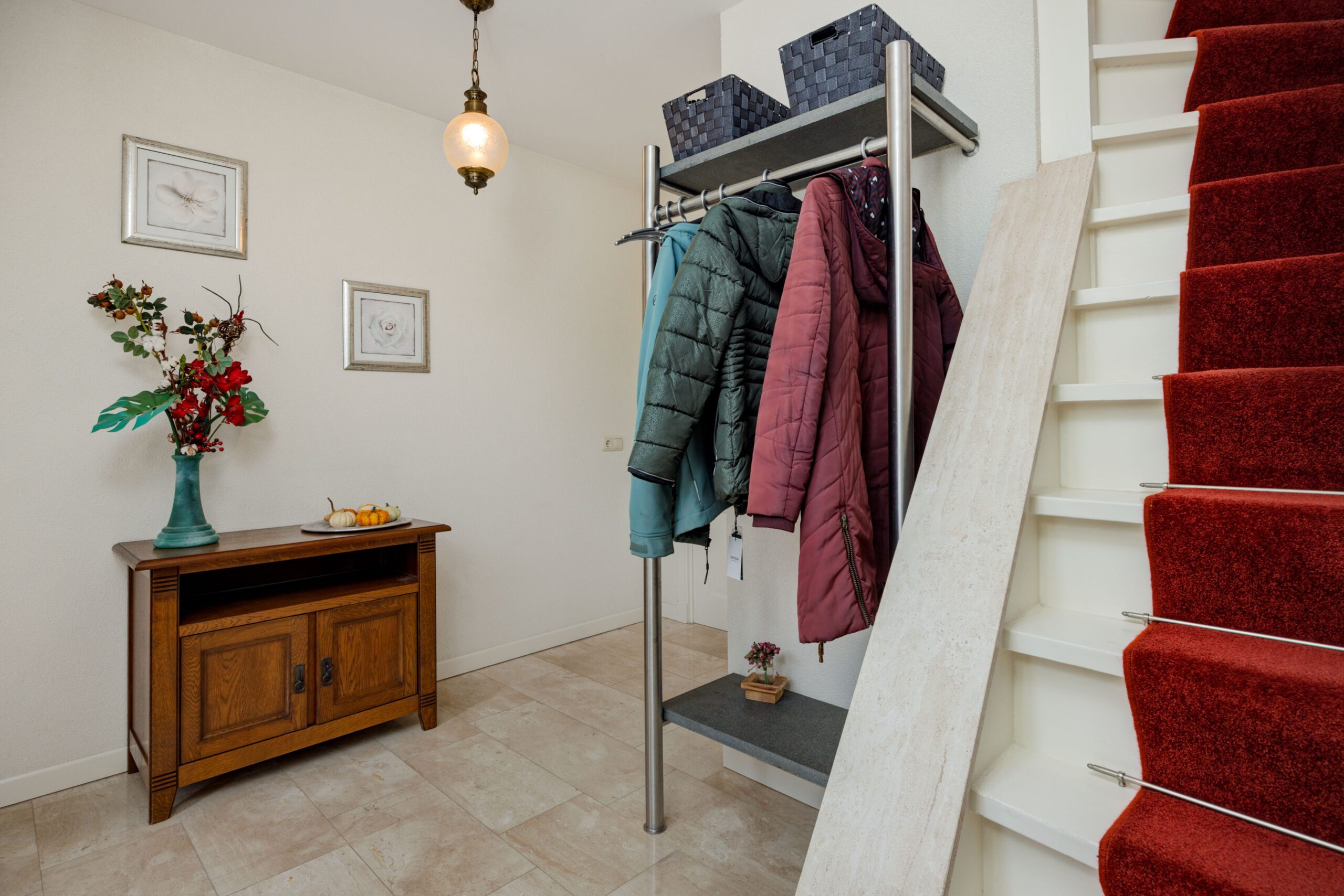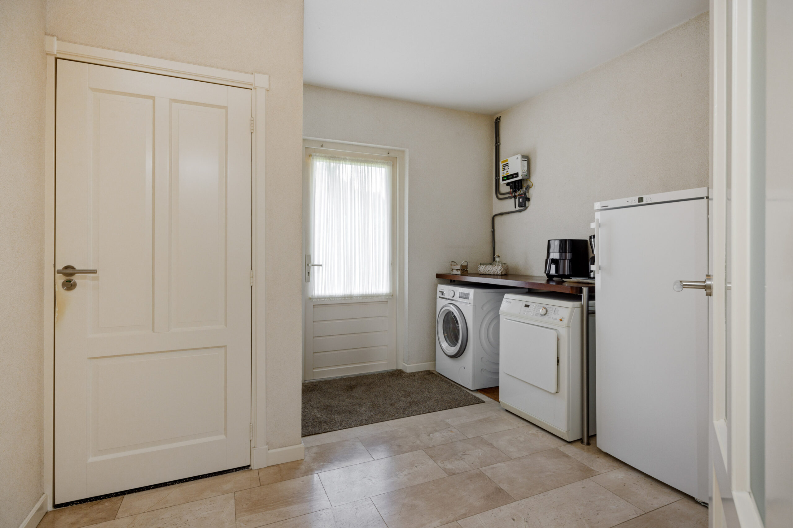 – Praktische bijkeuken met aansluitingen voor wasmachine en droger.